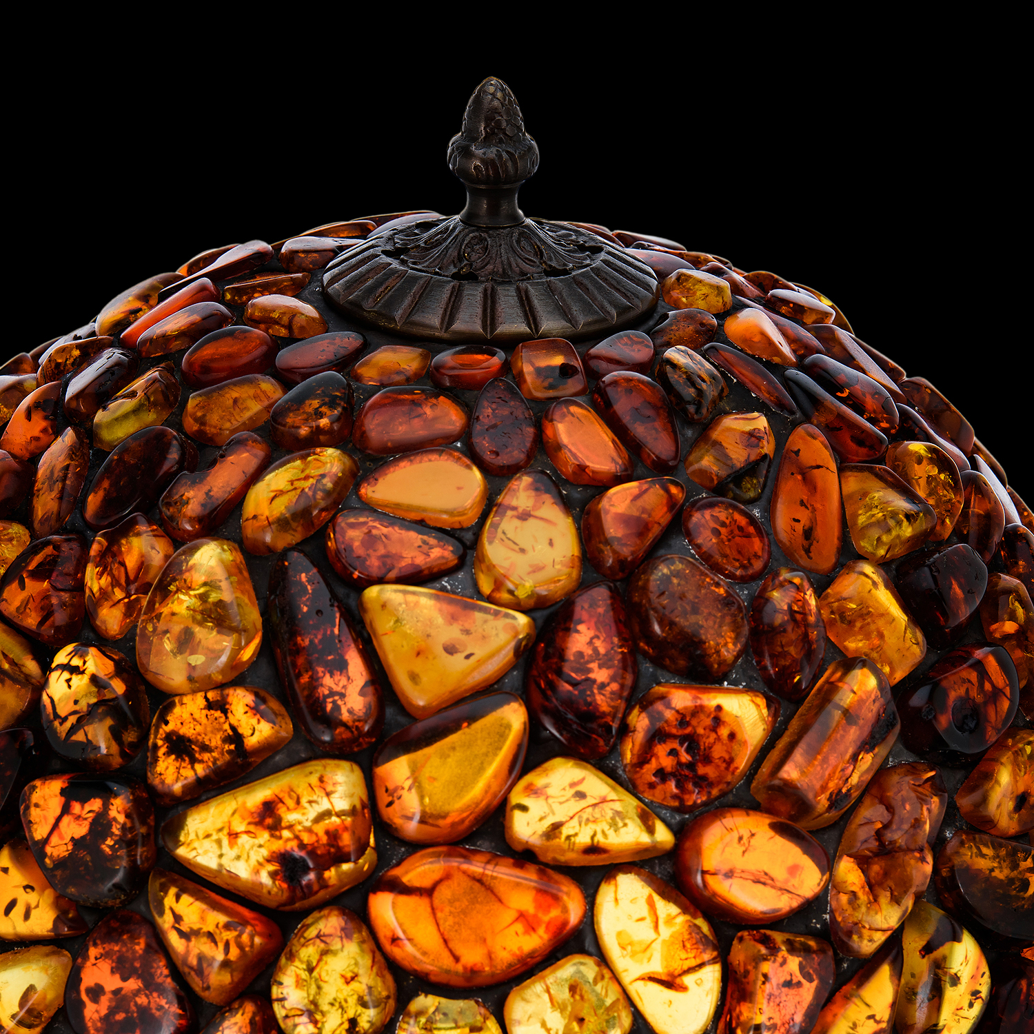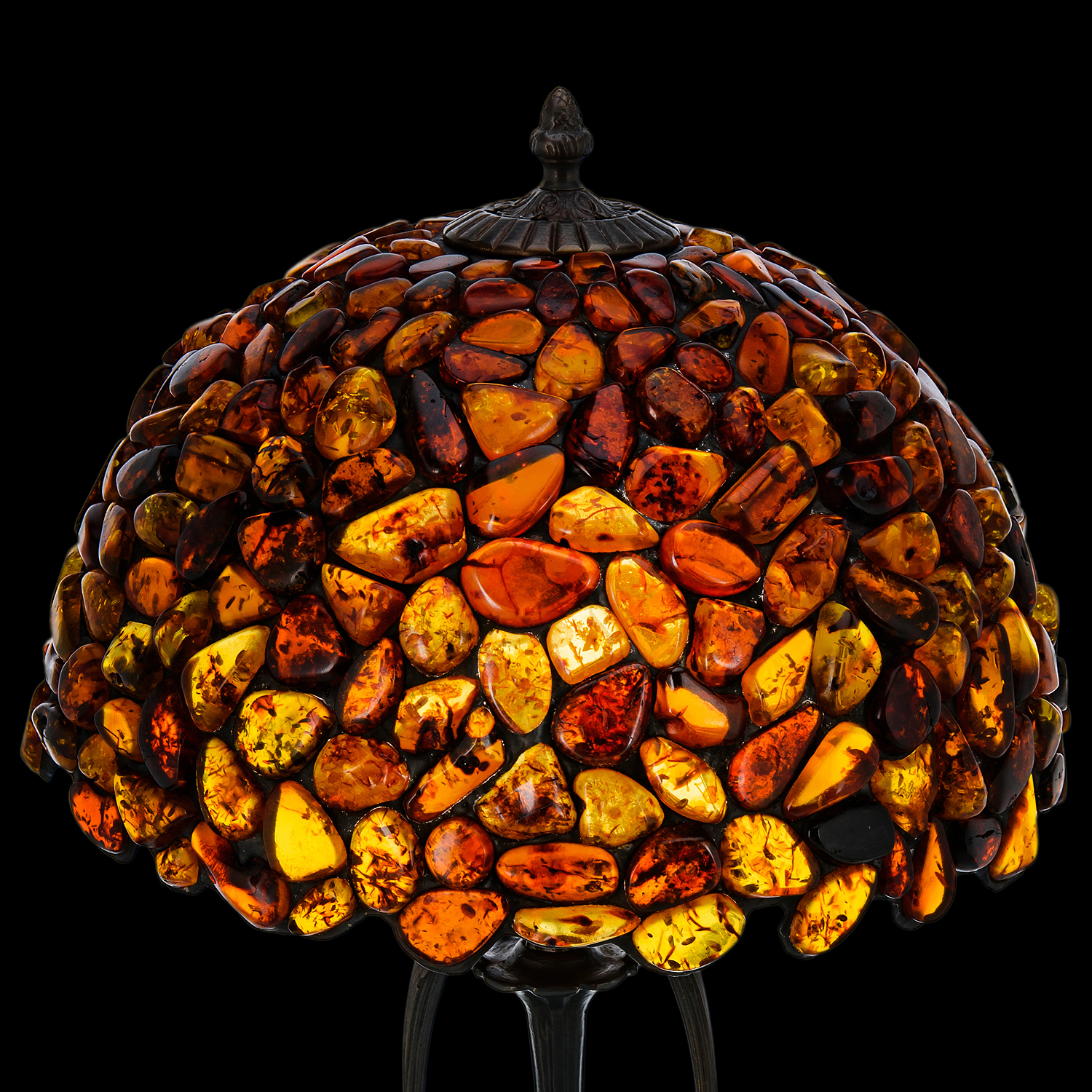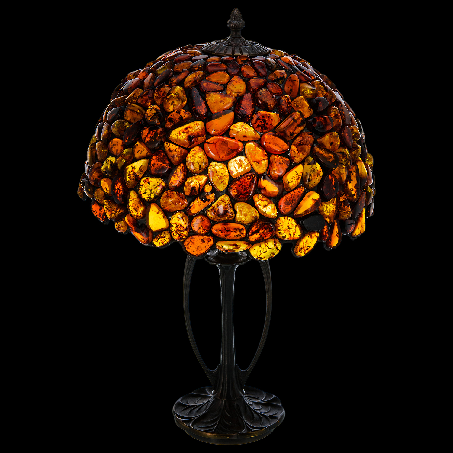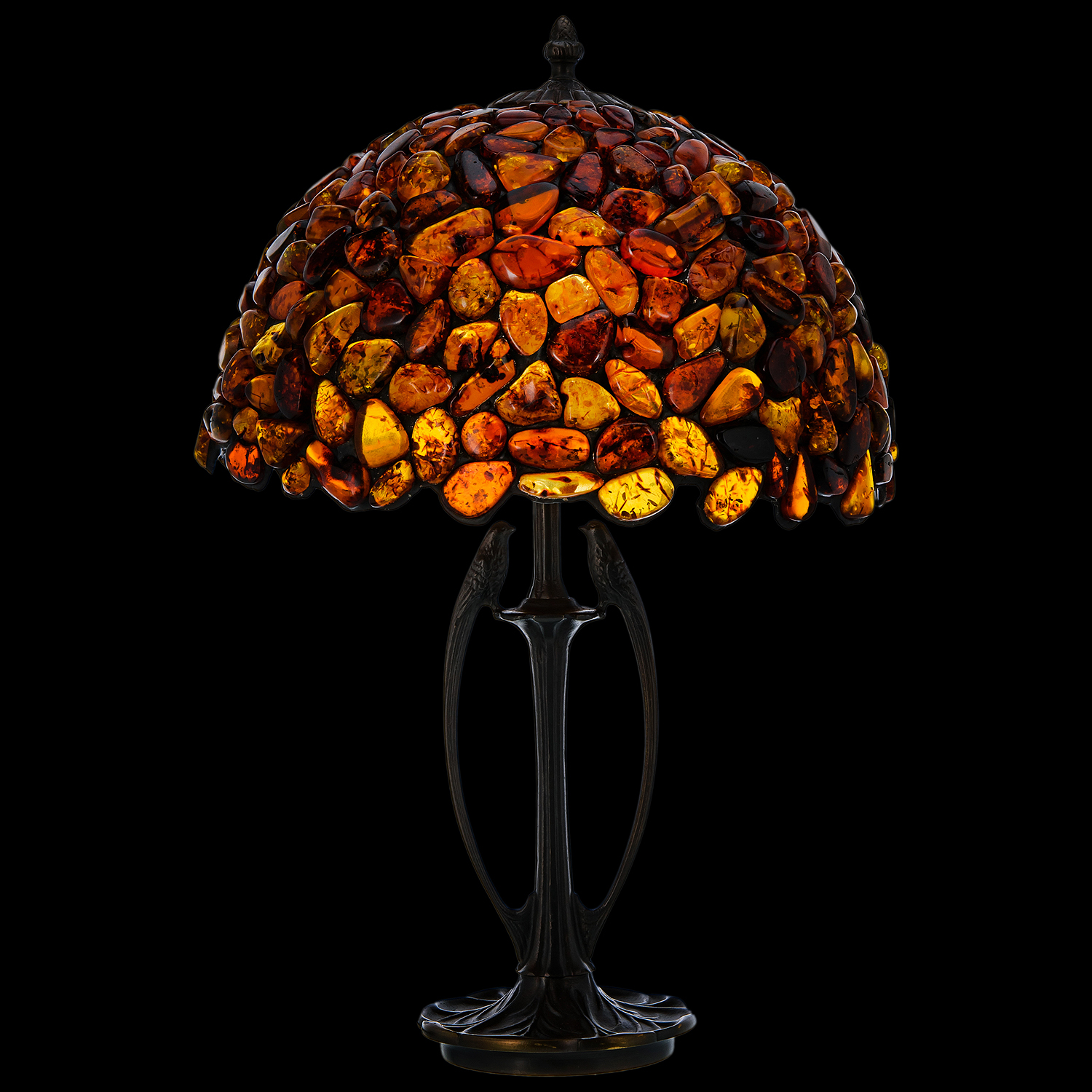 Настольная лампа из янтаря и бронзы. Высота 53 см