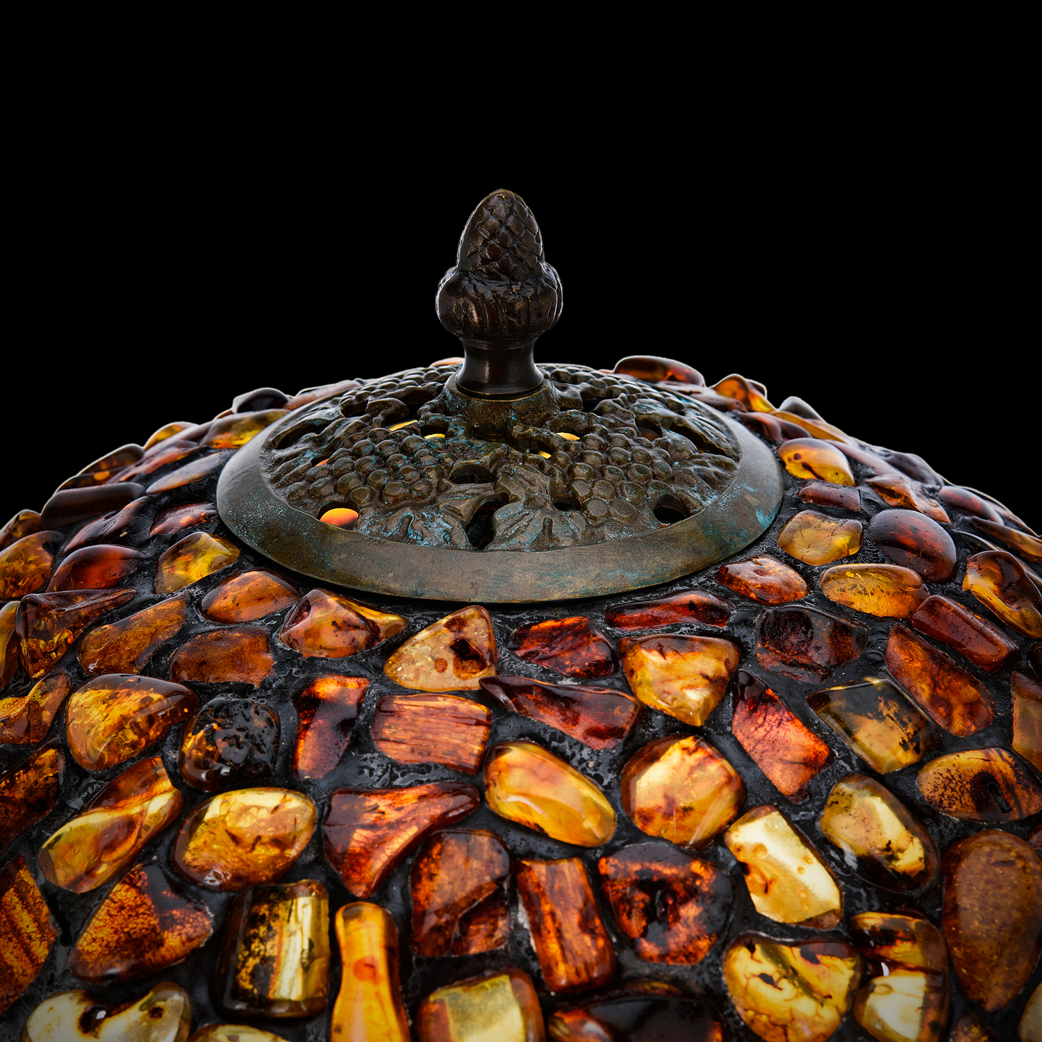Настольная лампа из янтаря и бронзы "Дерево". Высота 48 см