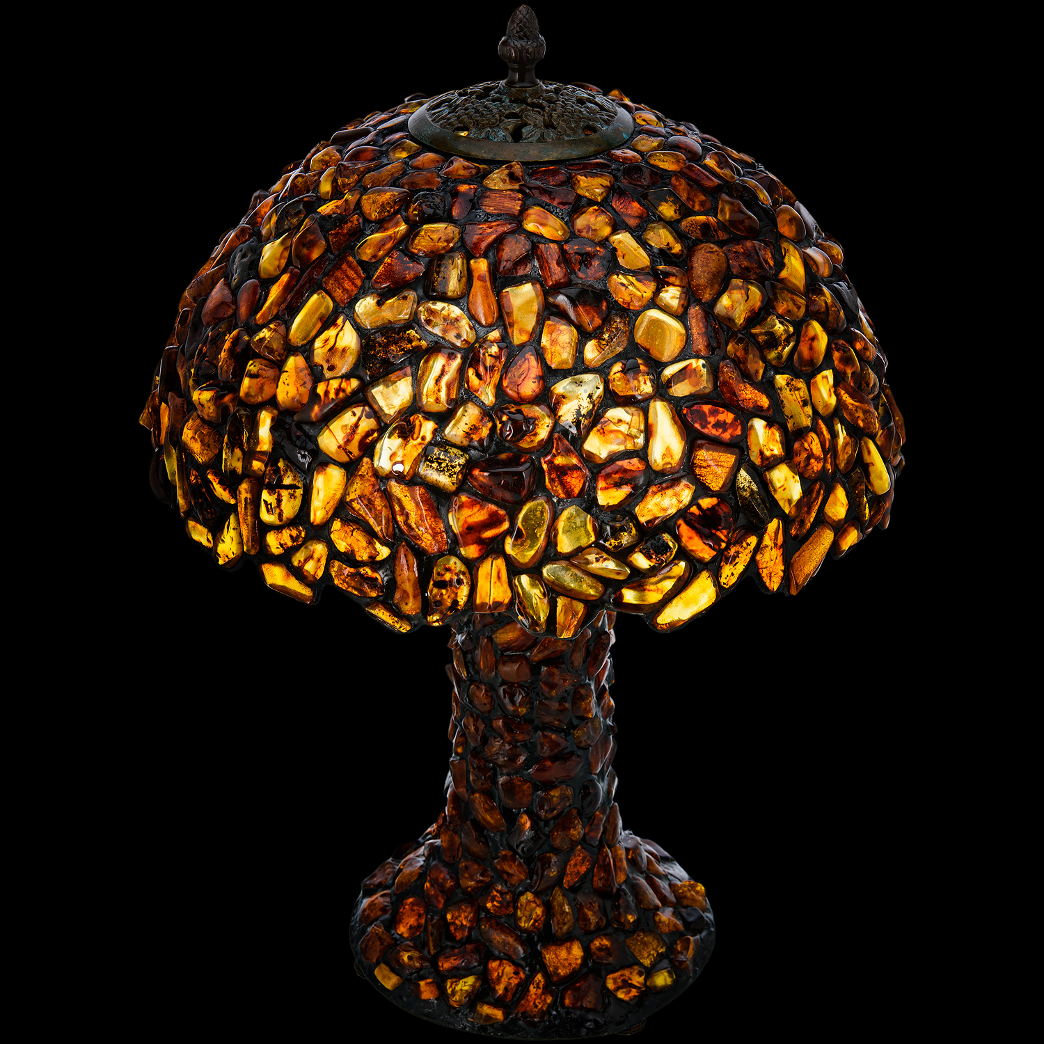 Русские подарки и сувениры → Интерьерные изделия → Лампы → Настольная лампа из янтаря и бронзы "Дерево". Высота 48 см