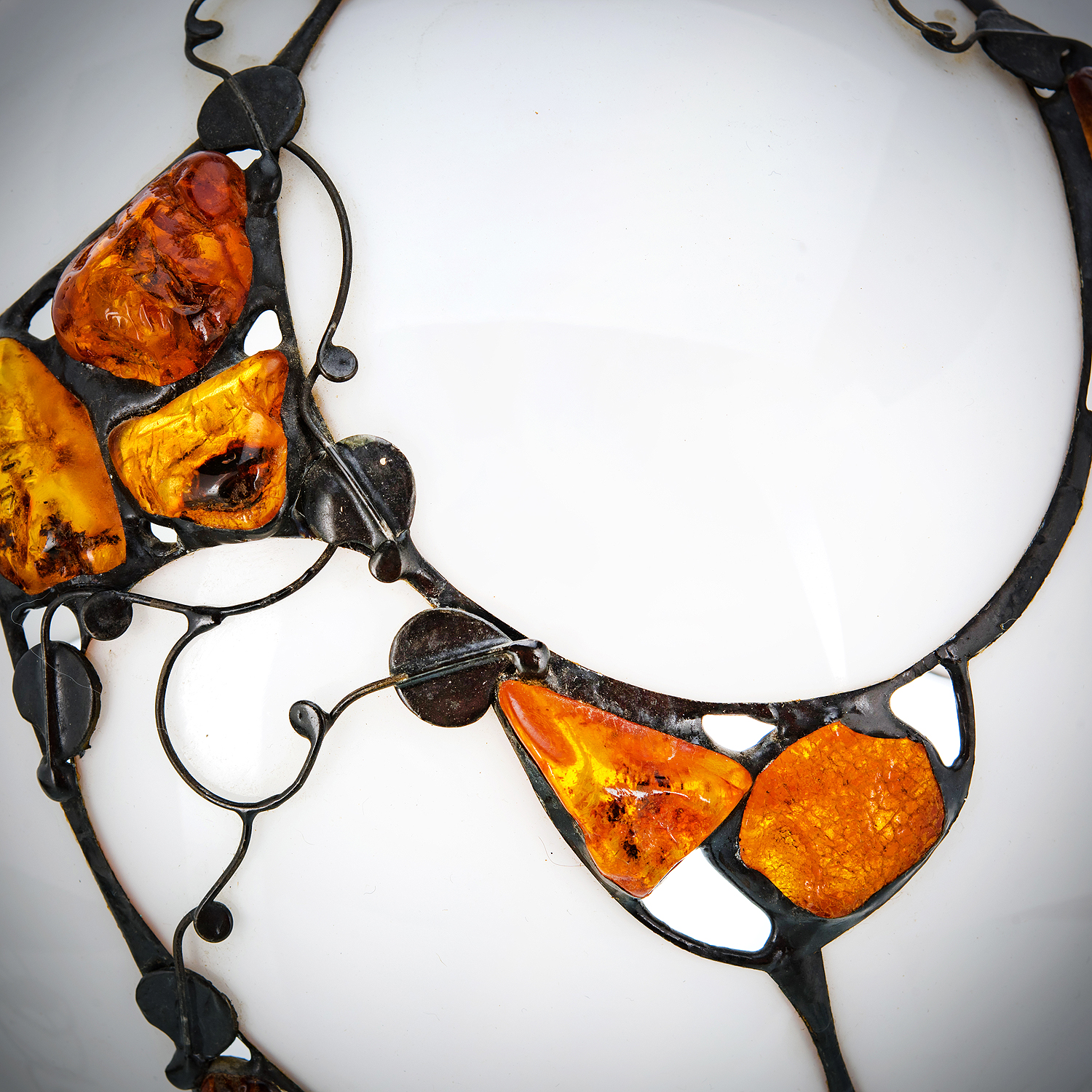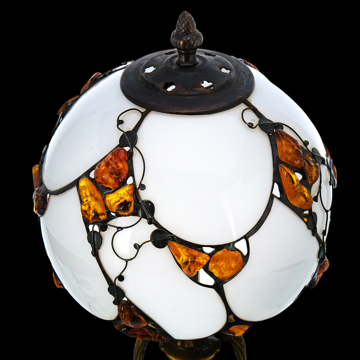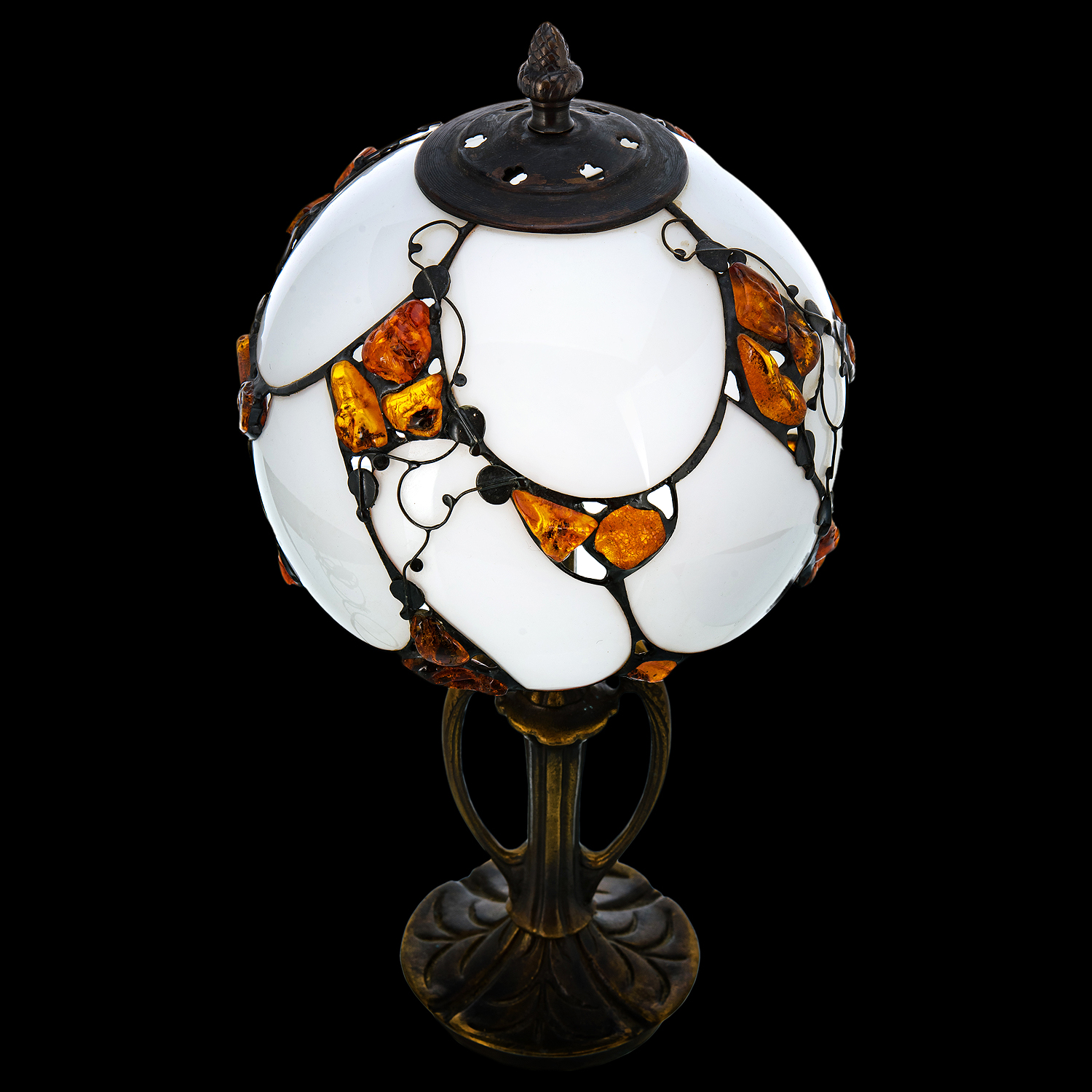 Настольная лампа из янтаря и бронзы. Высота 39 см