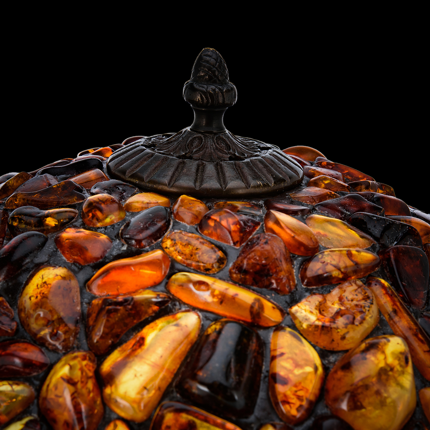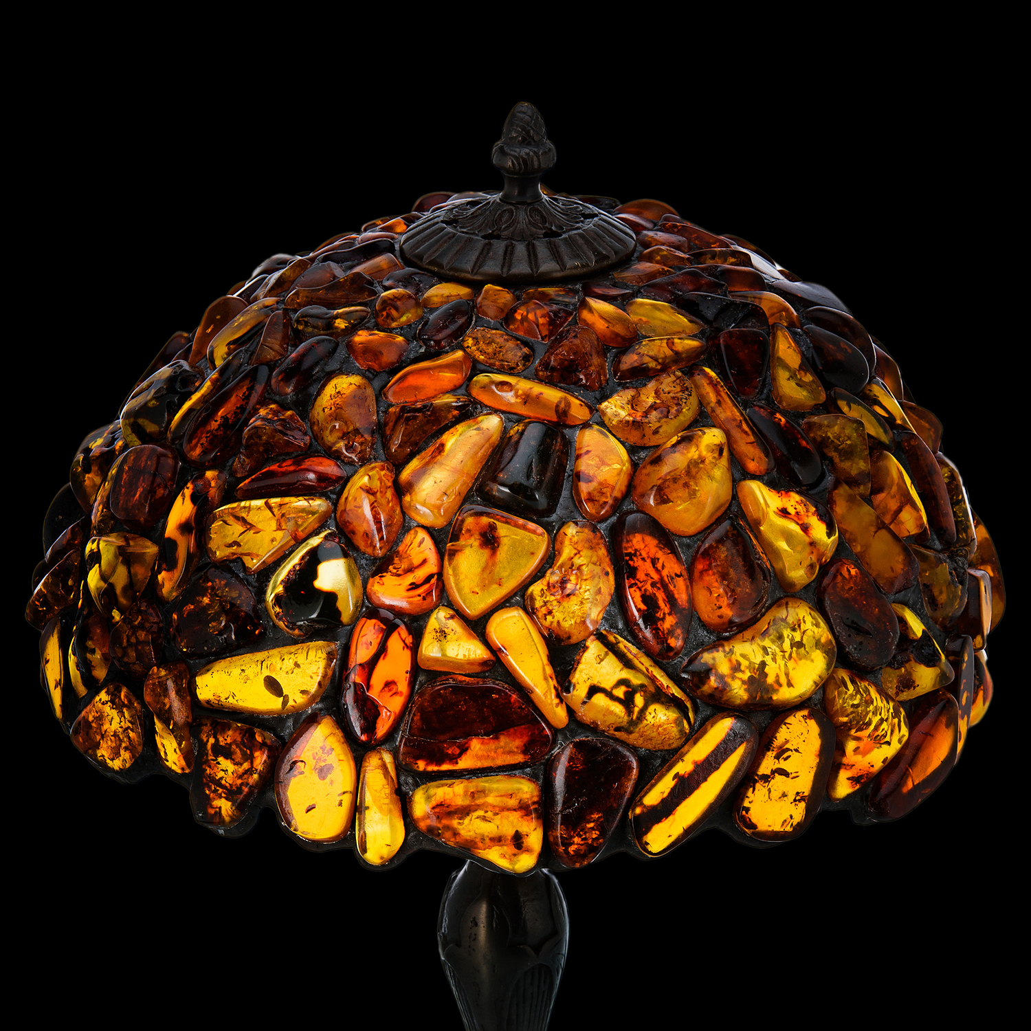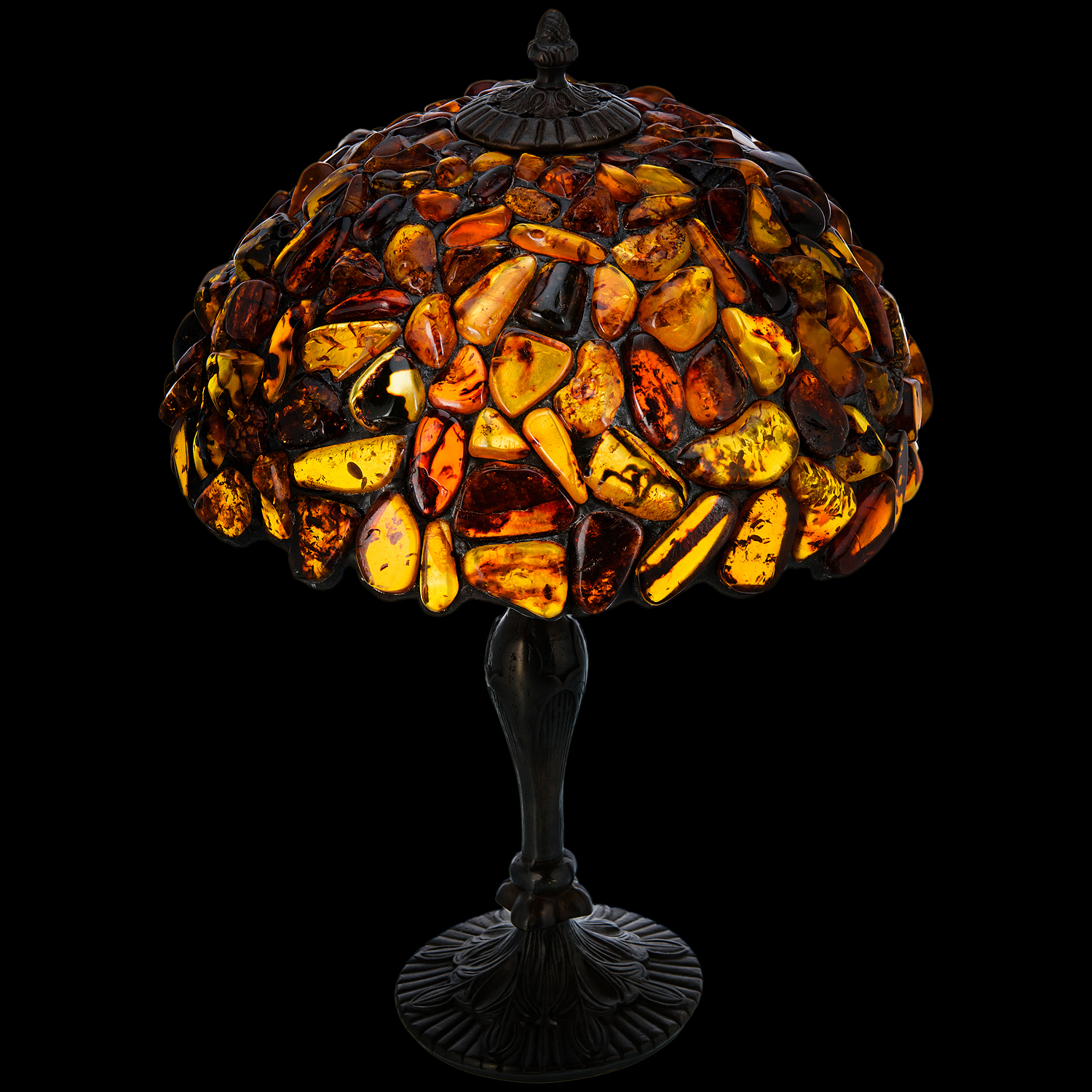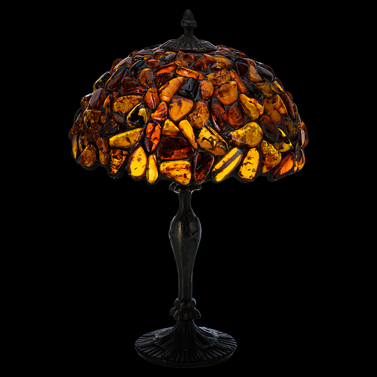 Настольная лампа из янтаря и бронзы. Высота 50 см