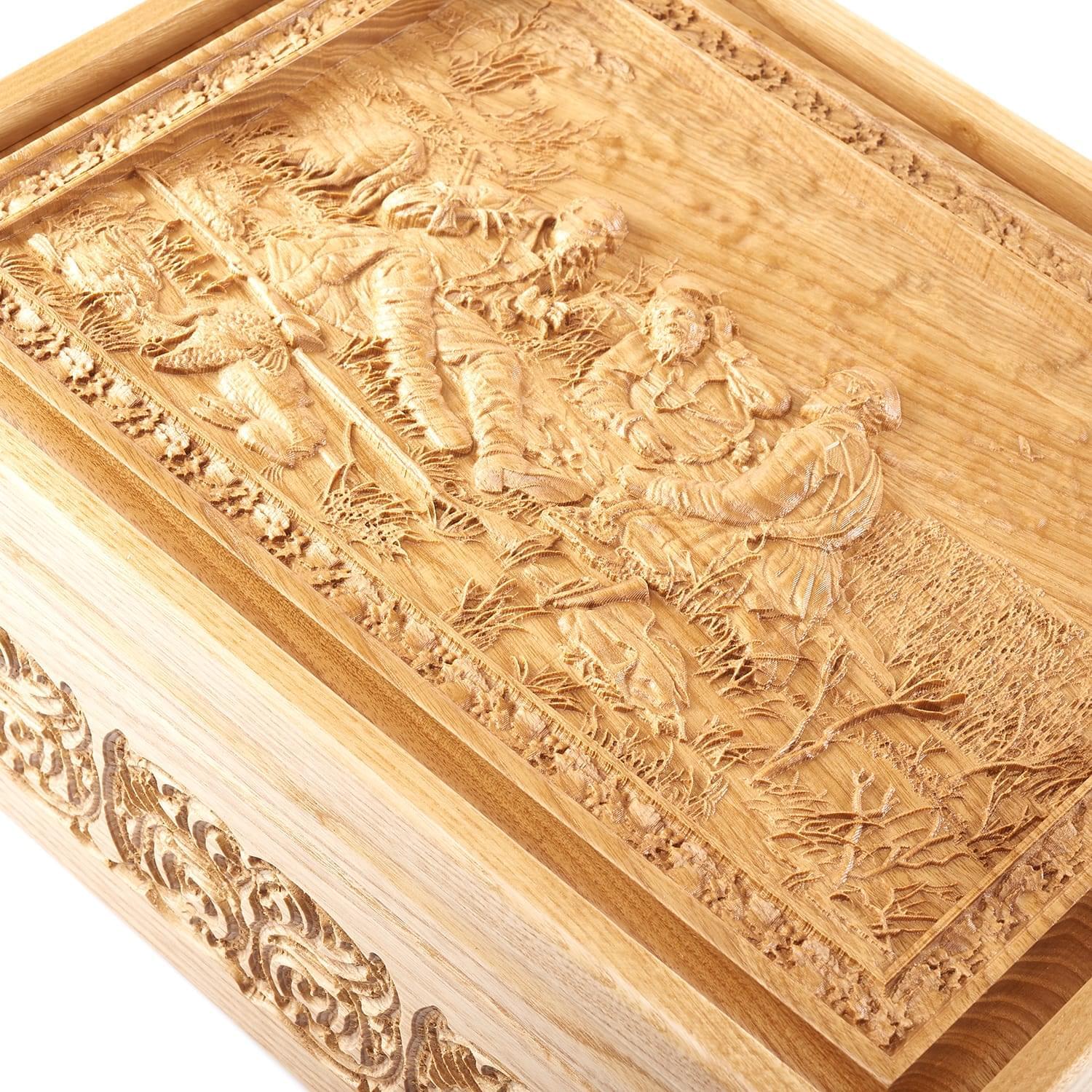 Русское лото в резной шкатулке «Охотники на привале»