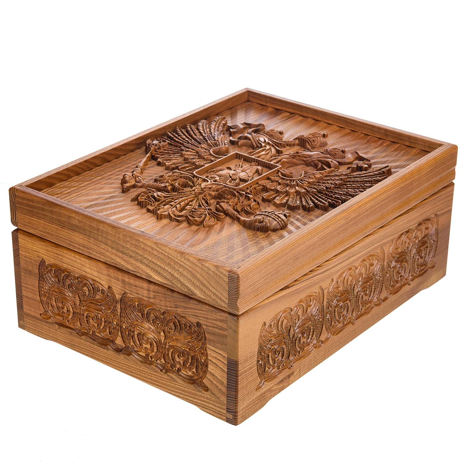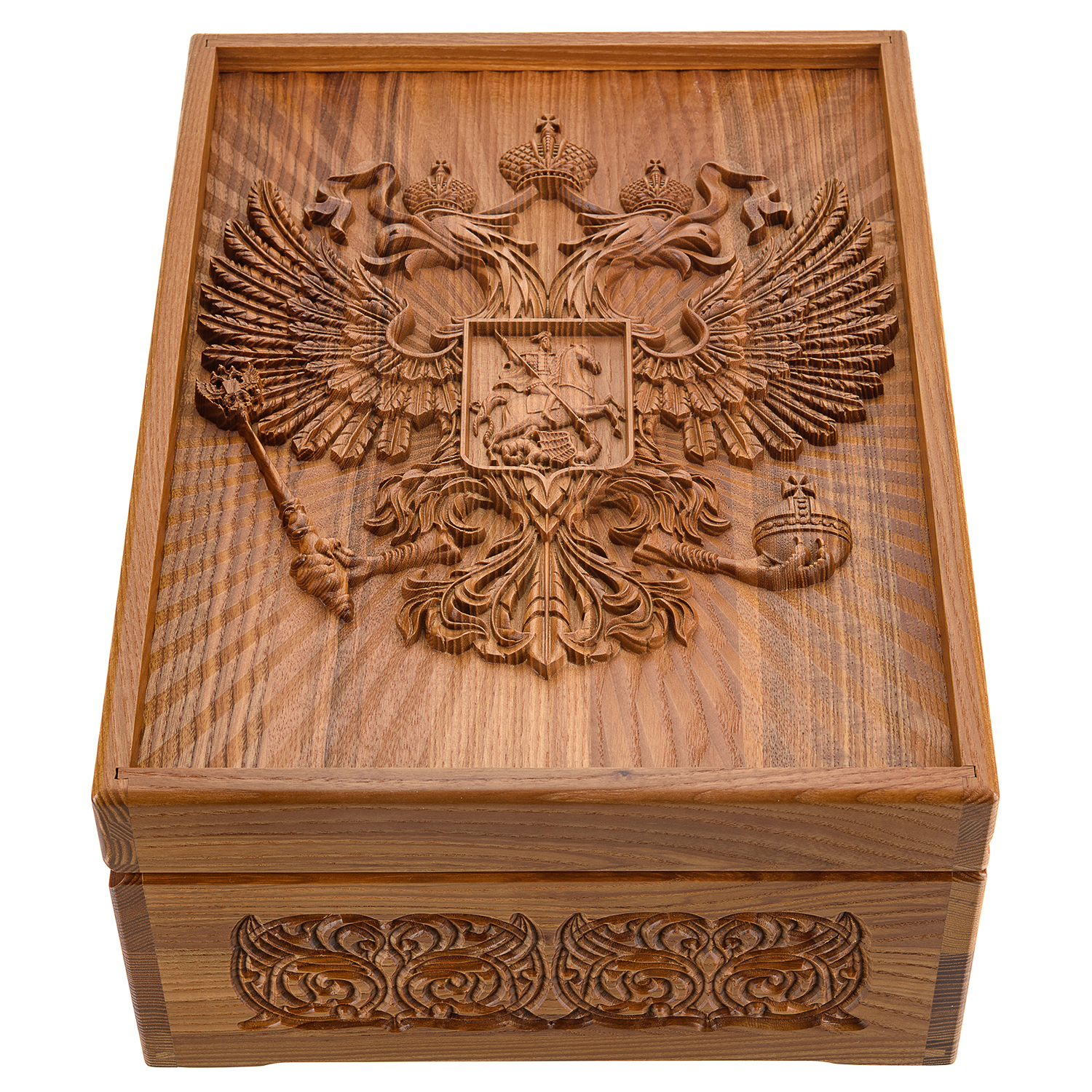 Русское лото в резной шкатулке из ясеня "Герб РФ"