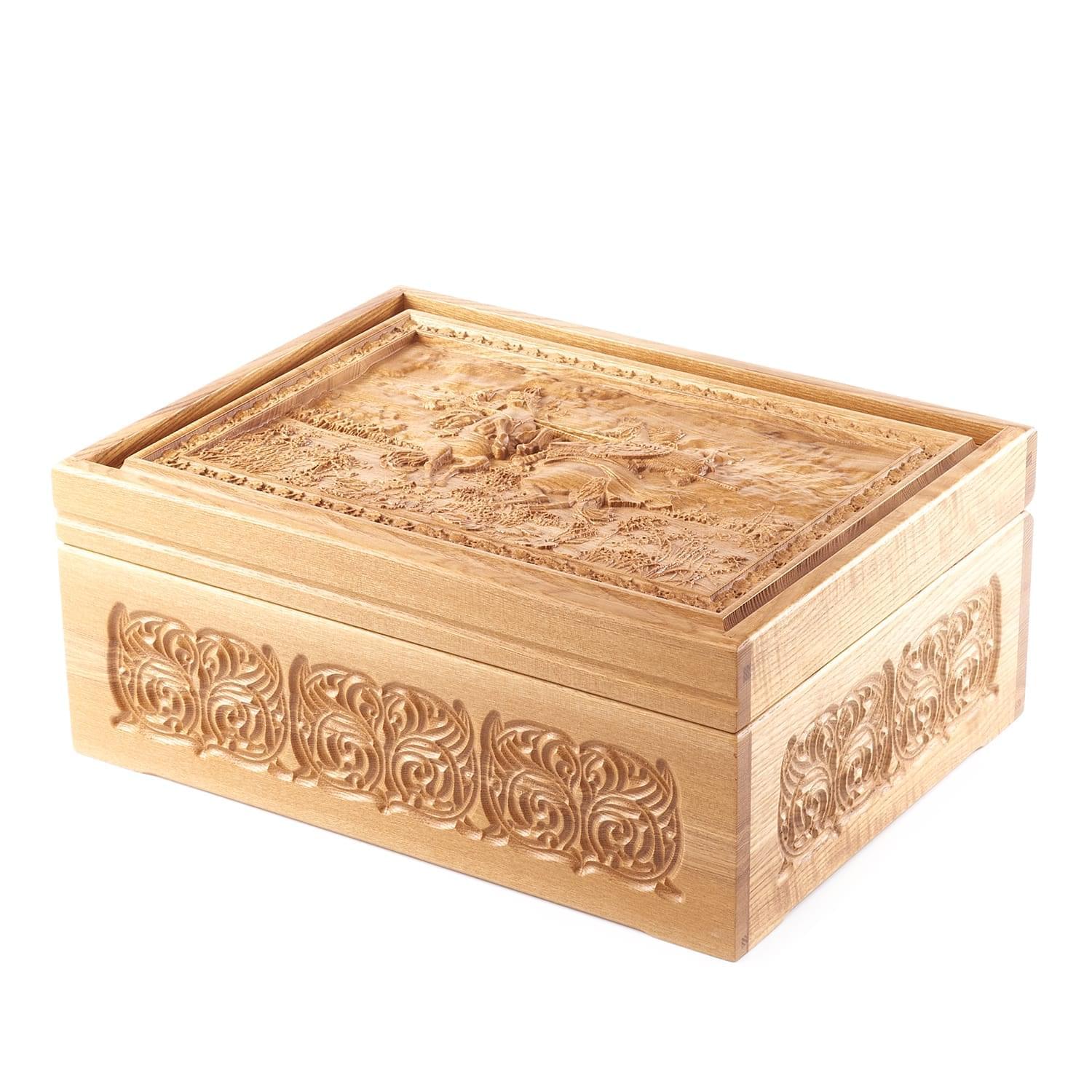 Русское лото в резной шкатулке «Поединок Пересвета с Челубеем»
