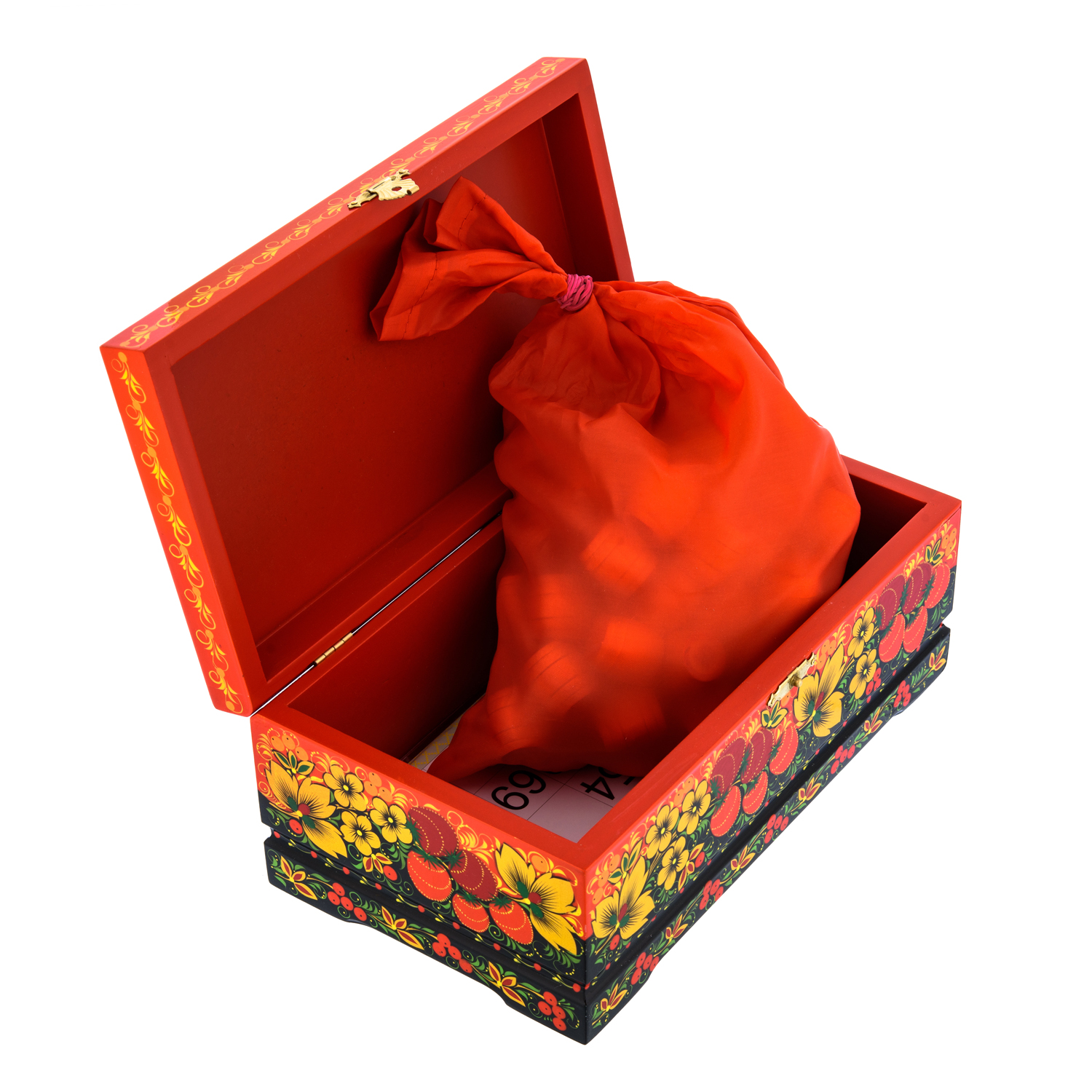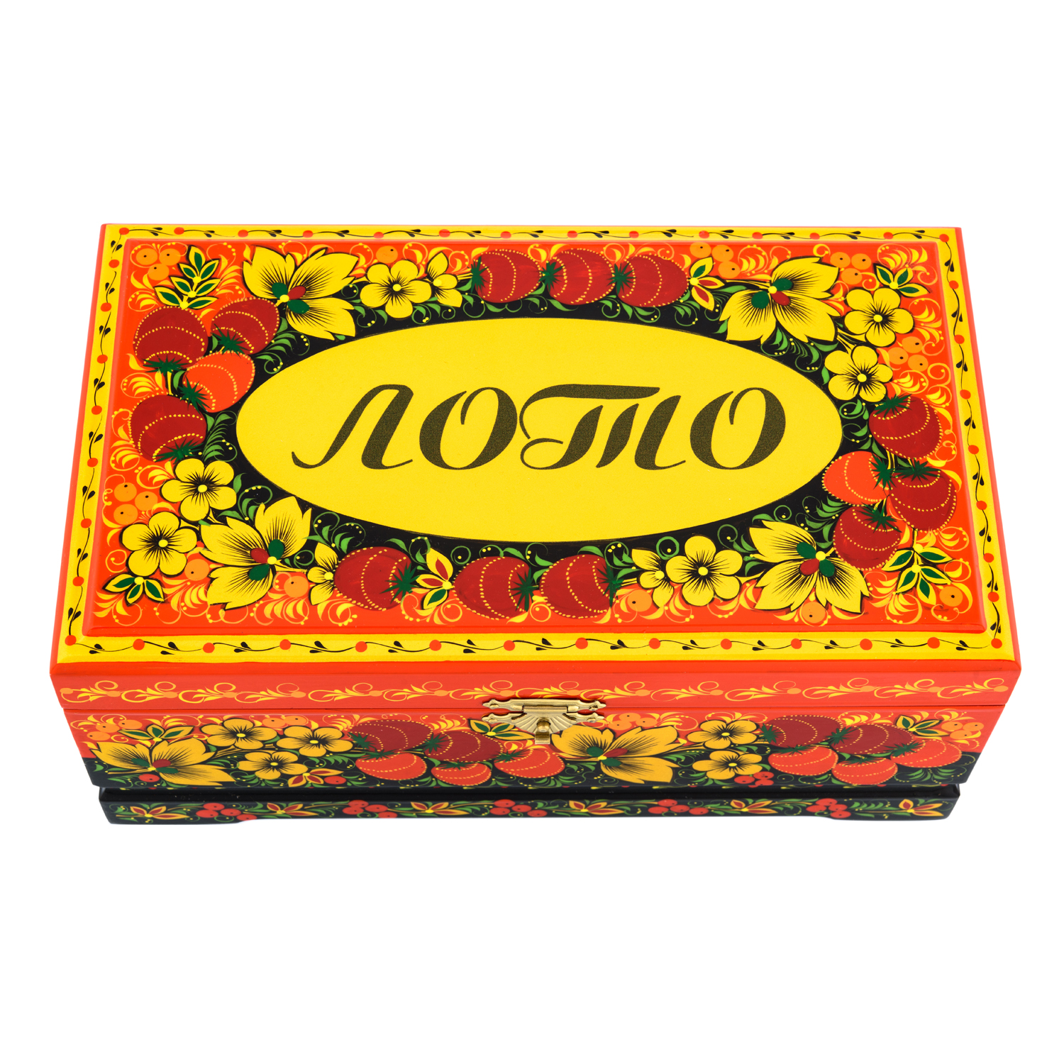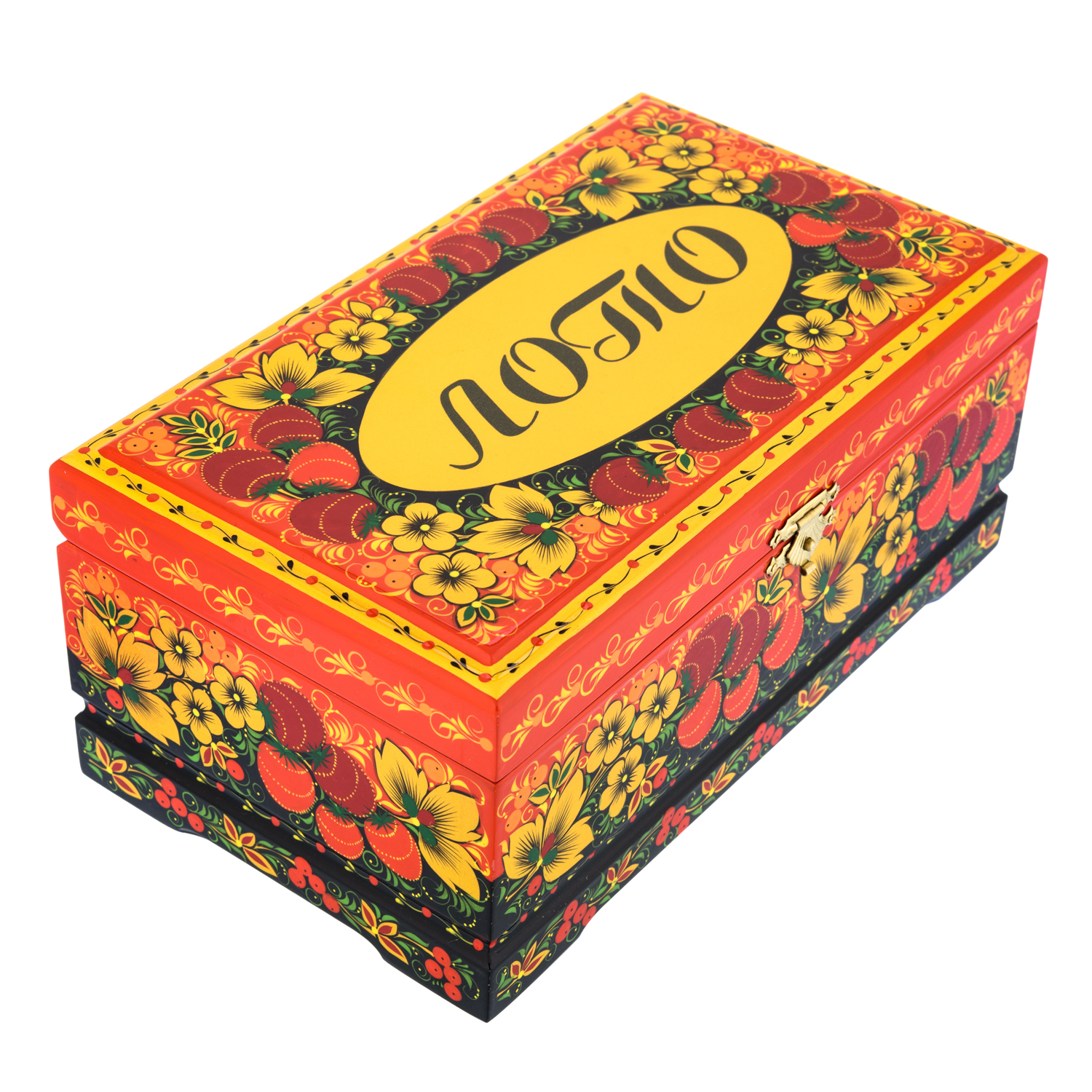 0071699 Хохлома РУССКОЕ ЛОТО "Золотые цветы" красный фон 250*140*105 Арт.Р85