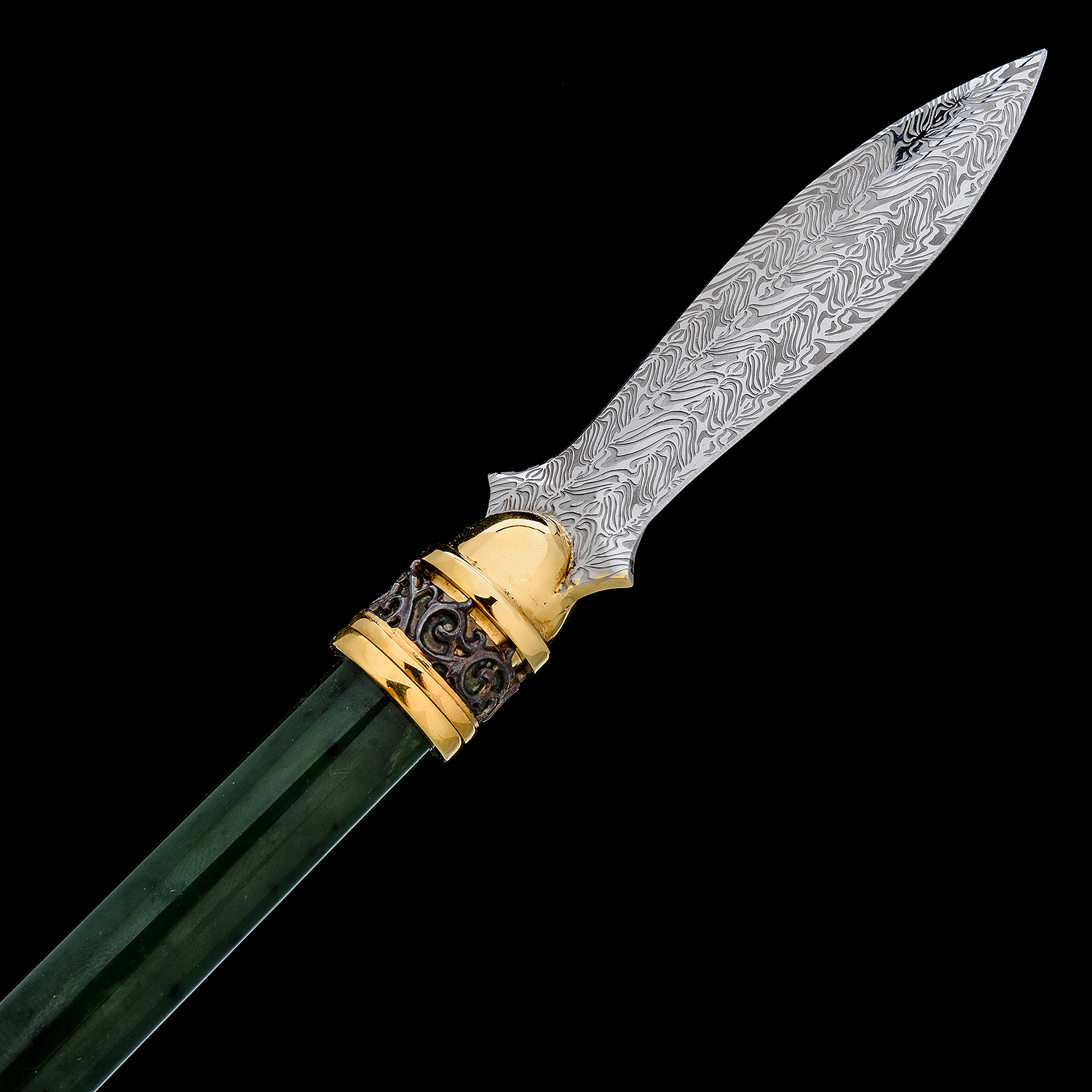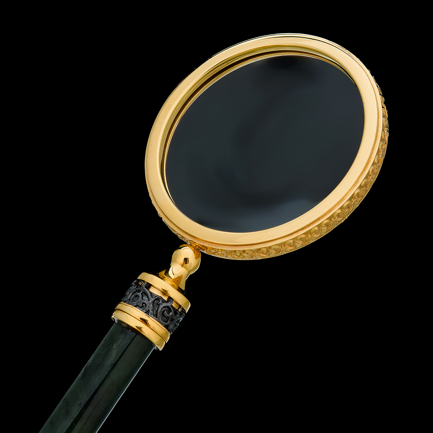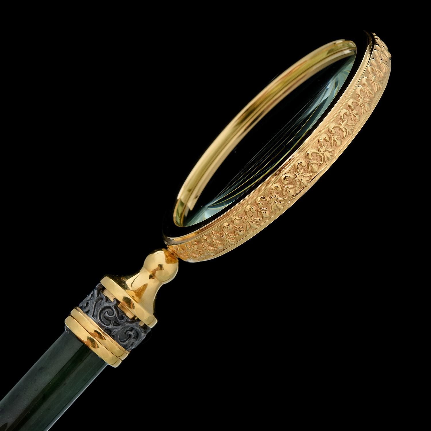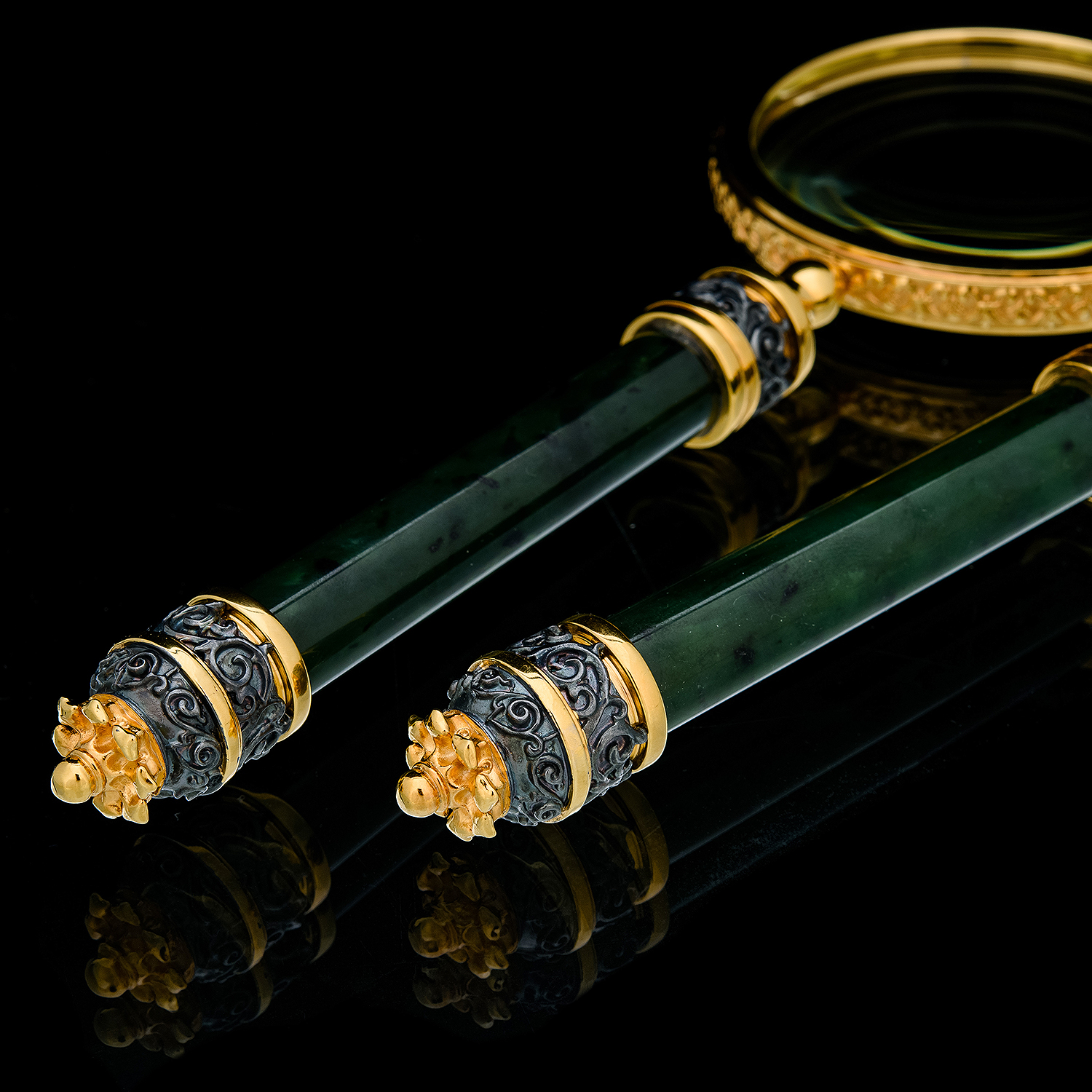Материалы: сталь, латунь, золото 999,9*, чернение, стекло, нефрит.
