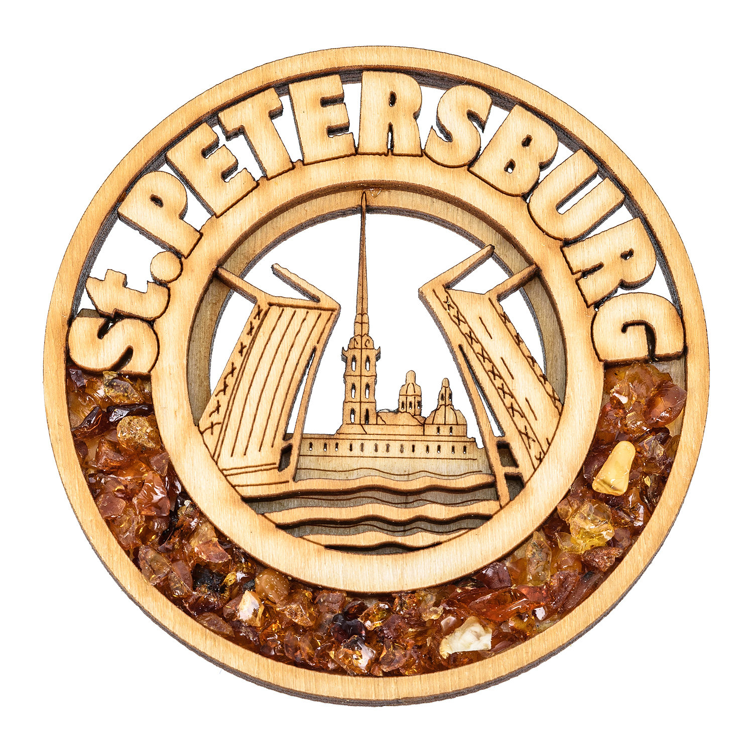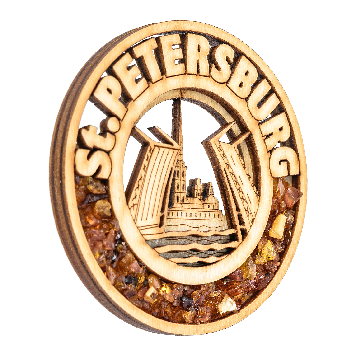0036535-МОСТ Сувенир МАГНИТ с янтарной крошкой "СПБ ВИДЫ"
