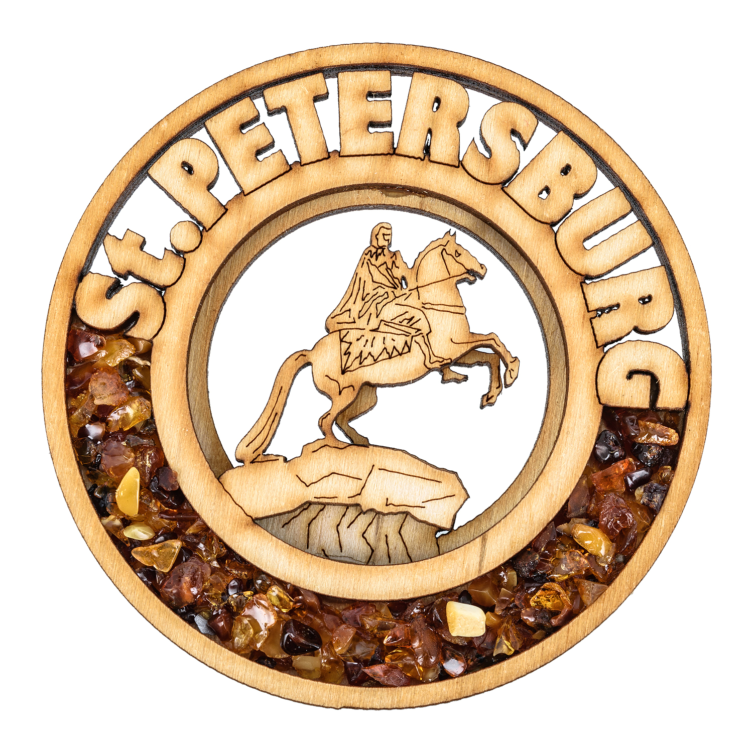 Русские подарки и сувениры → Сувениры → Магниты → 0036535-ПЕТР I памятник Сувенир МАГНИТ с янтарной крошкой "СПБ ВИДЫ"