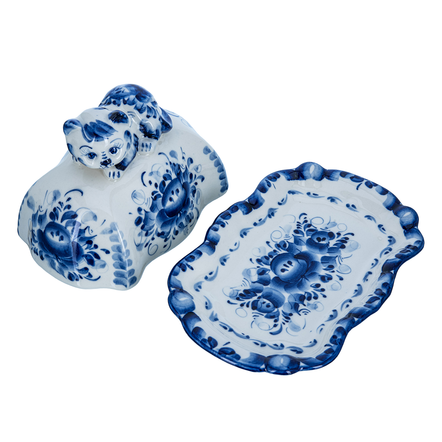 Масленка "Кот". Гжель.Материал: фарфор.