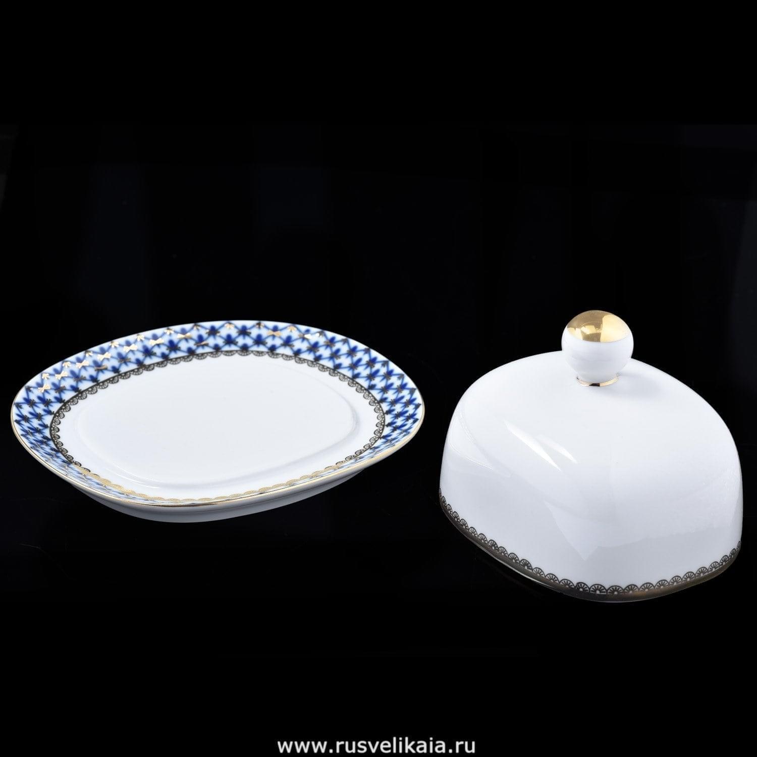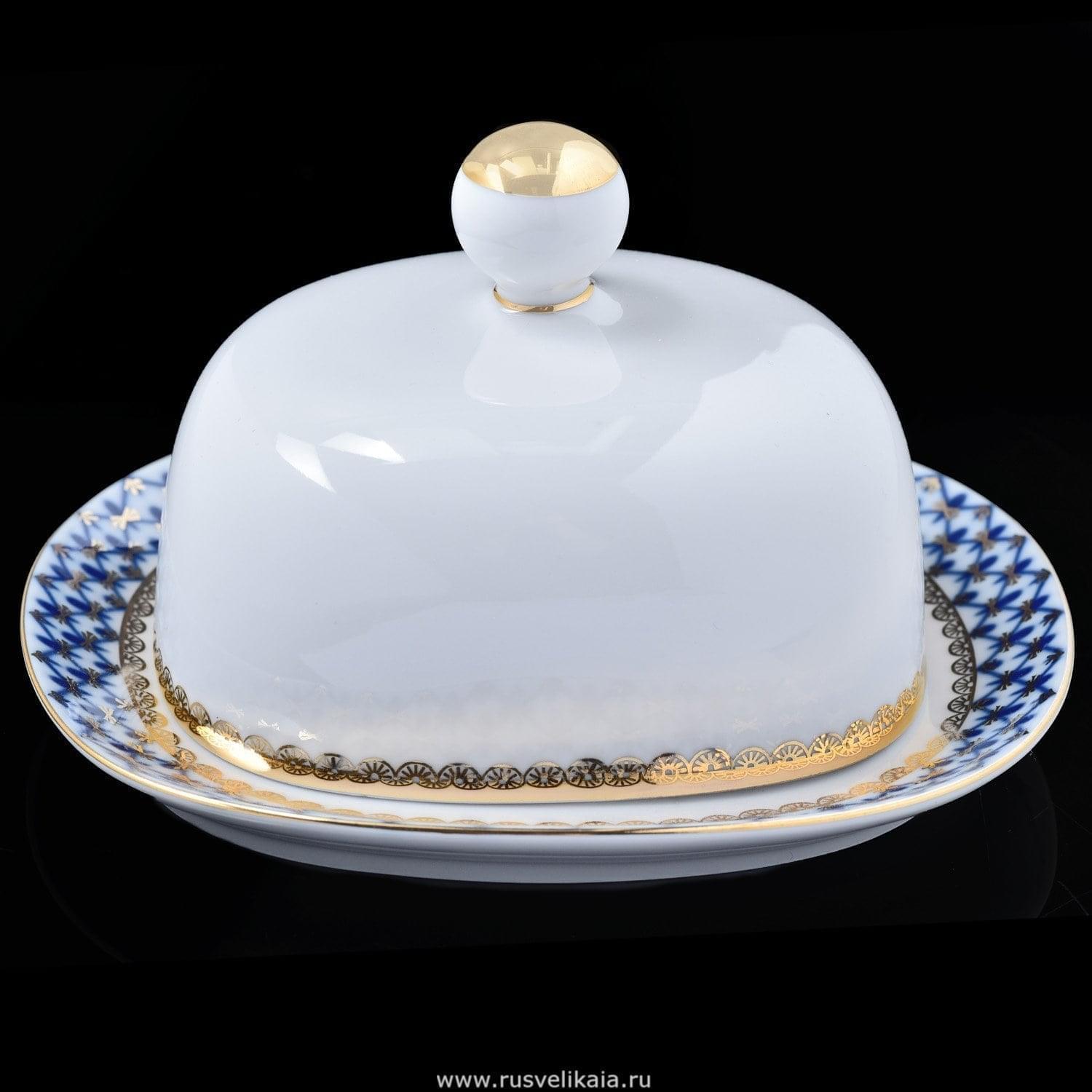 Фарфоровая масленка прямоугольная "Кобальтовая сетка". ИФЗ