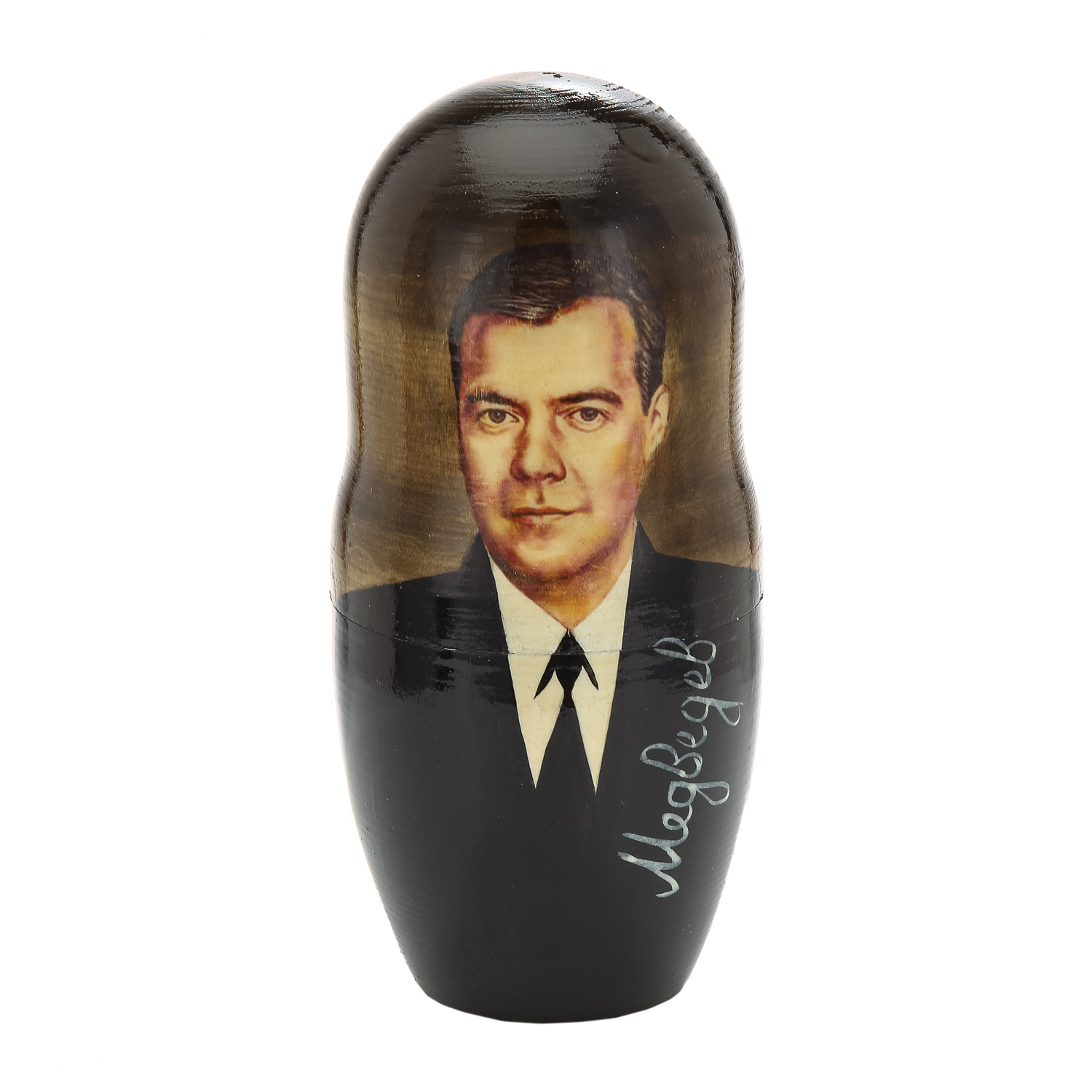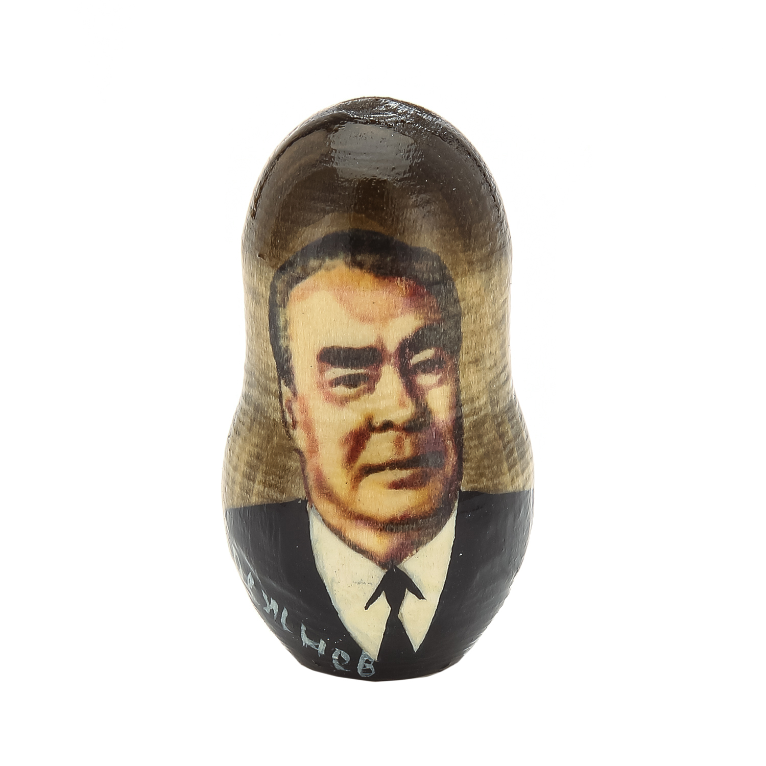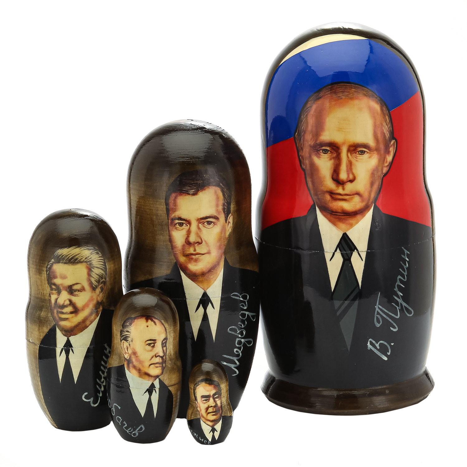 Матрешка "Вожди и политики": Путин, Медведев, Ельцин, Горбачев, Брежнев.