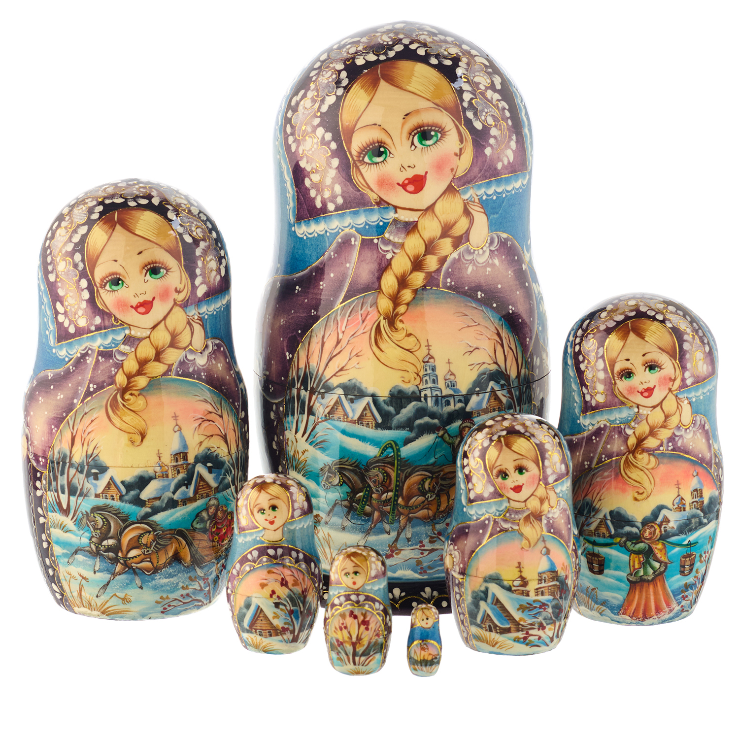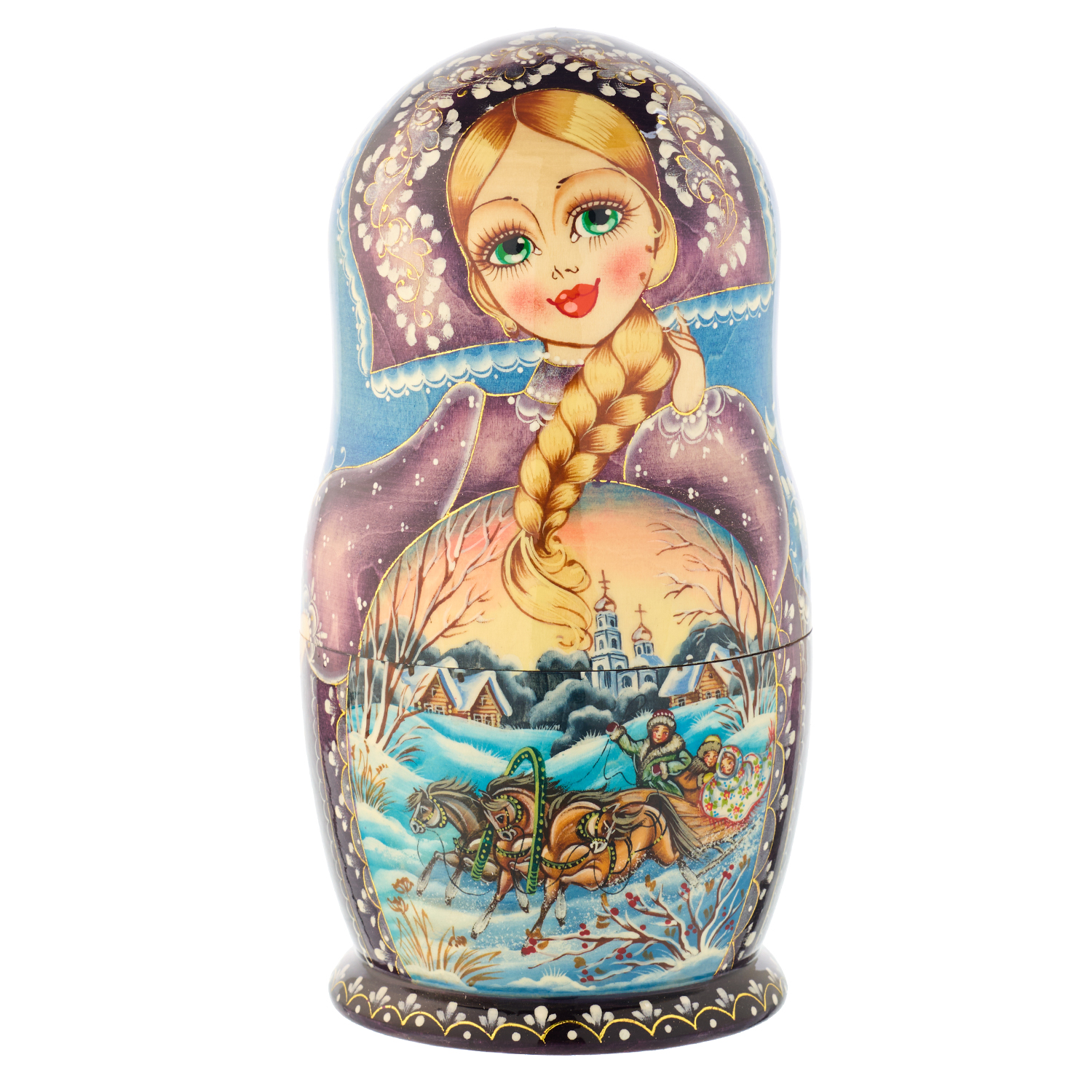 Матрешка "Зимняя тройка" 7 мест.Материалы: дерево, краски, лак.