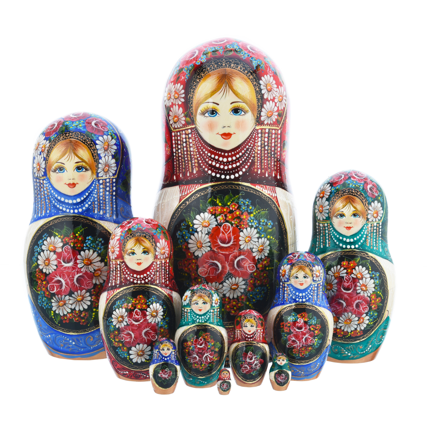 Матрешка "Цветы" 10 местМатериалы: дерево, краски, лак.