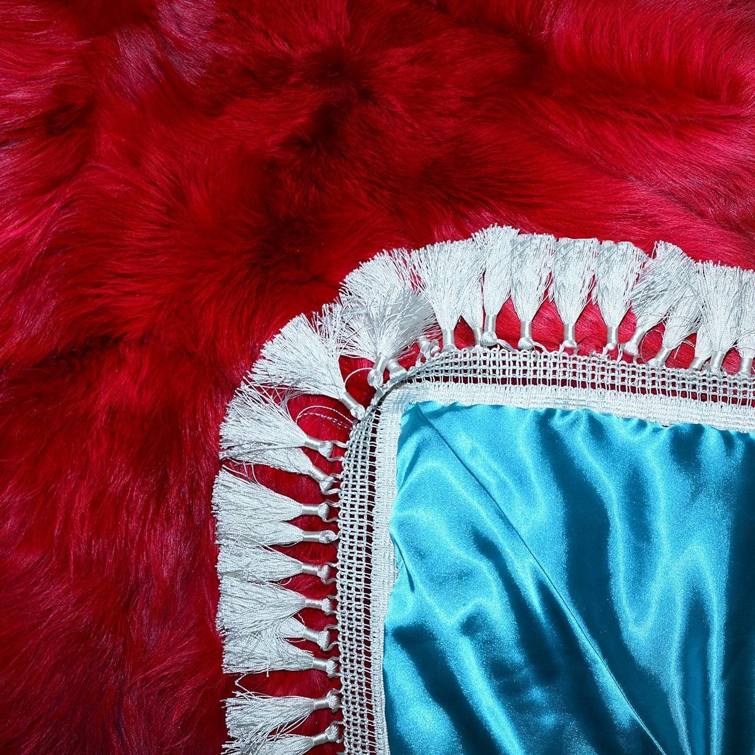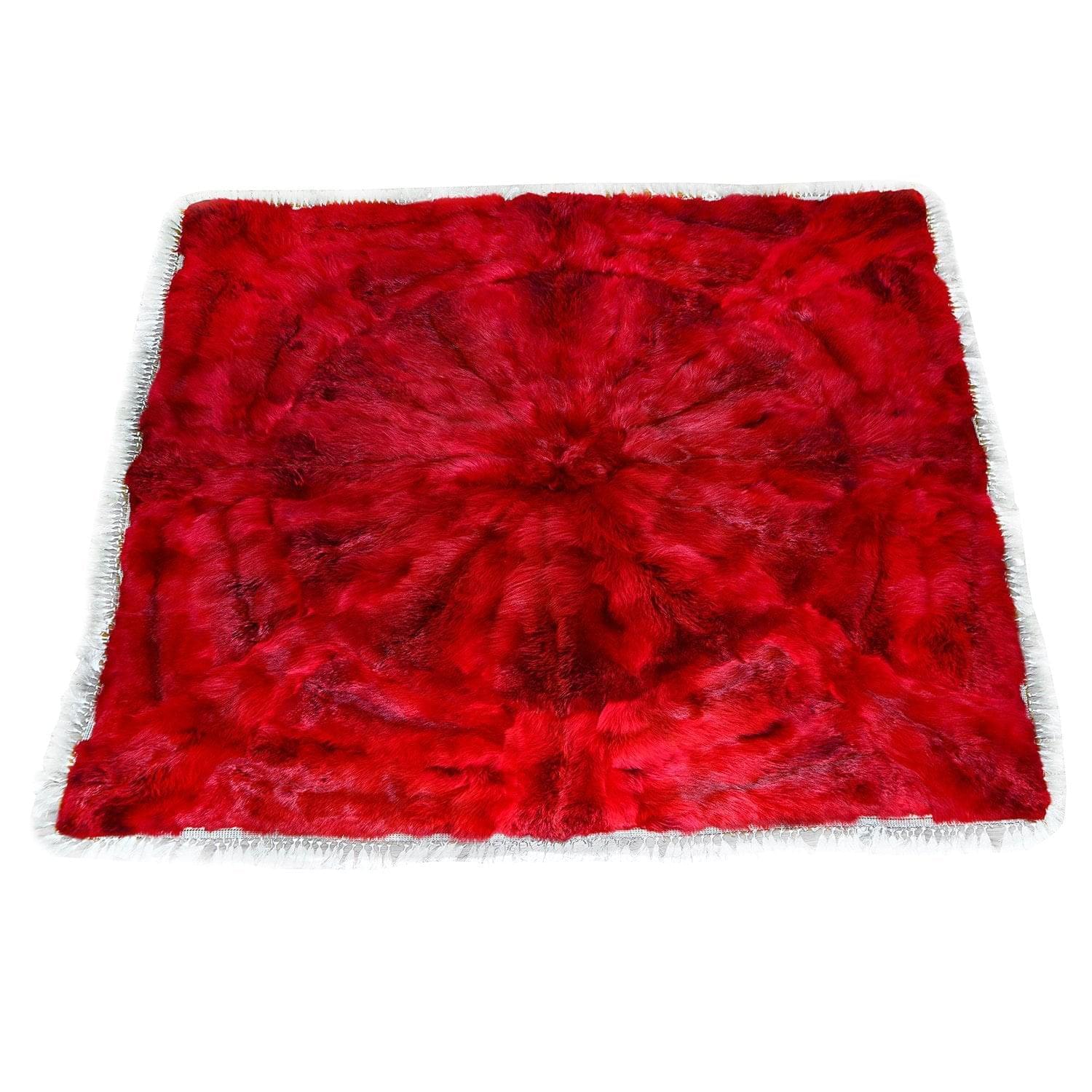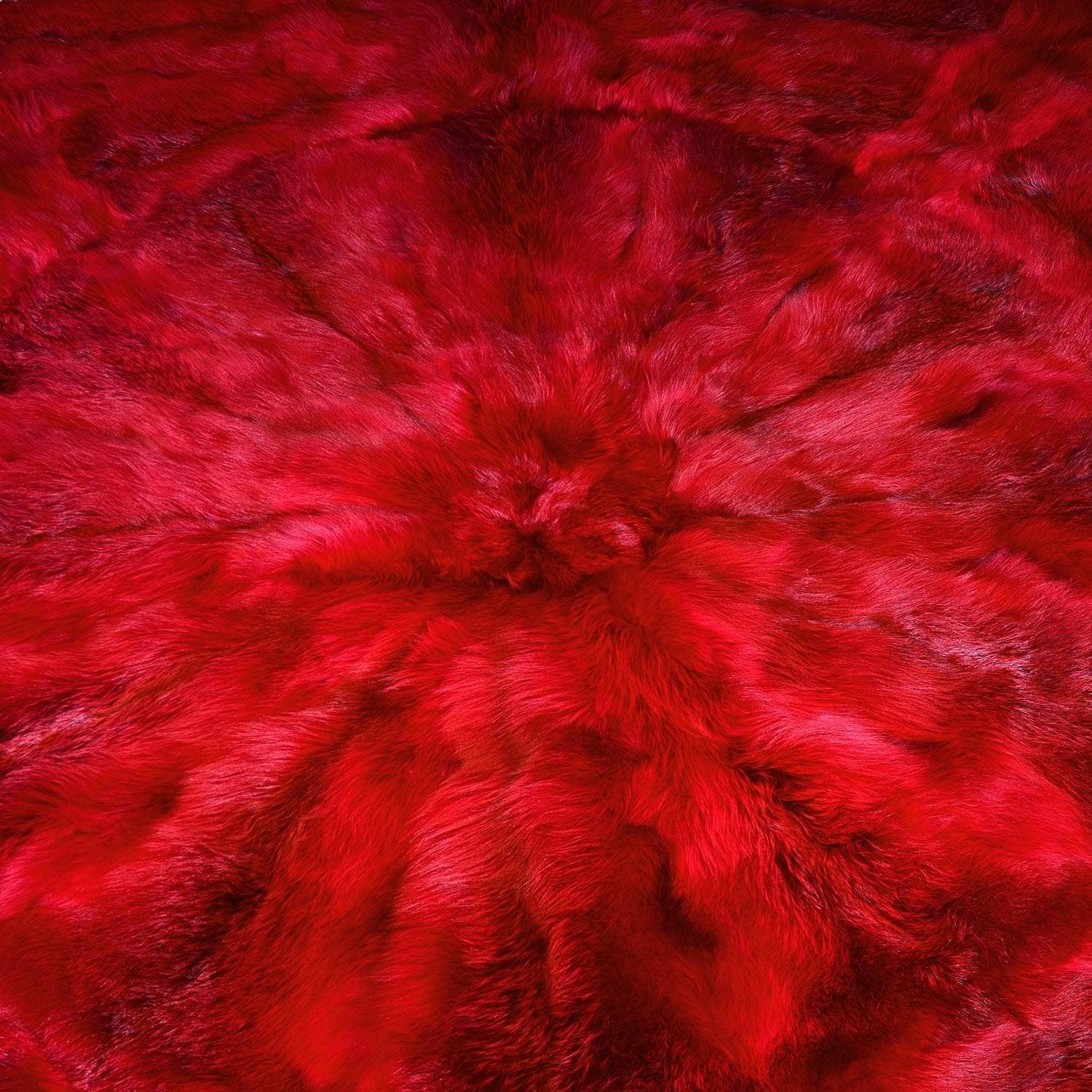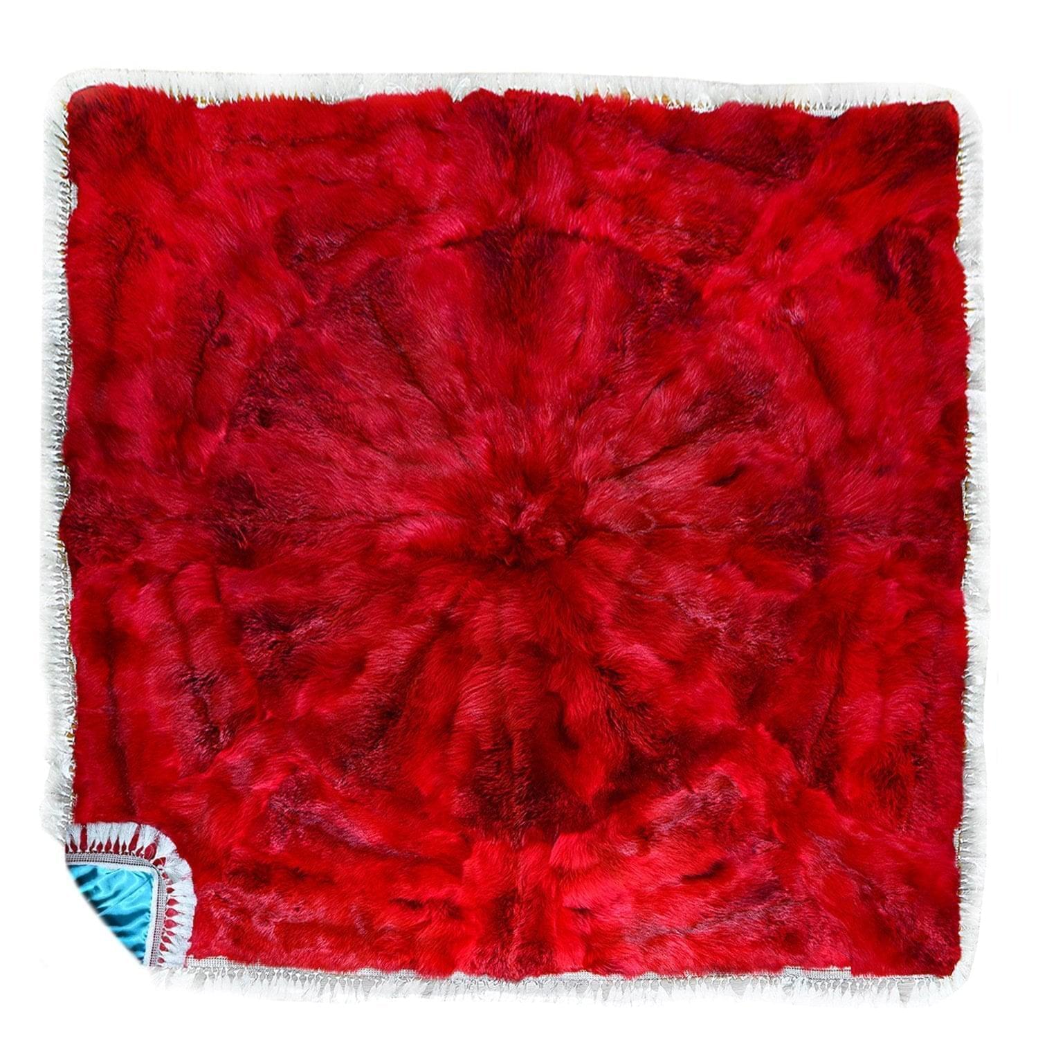 Интерьерная новинка, ярко-красный аксессуар из натурального меха для обустройства спального места и зоны у камина. Это воплощенная женская фантазия! Дизайнерское покрывало сшито из охотничьих трофеев - шкур лисиц, декорировано по периметру белыми кисточками, имеет голубую атласную подложку. Разделение шкуры лисицы на фрагменты позволило создать в рамках четырехугольника оригинальную композицию по мотивам зенарта.Красное мягкое покрывало как символ страсти создает яркий акцент в интерьере и провоцирует на самые приятные эмоции.