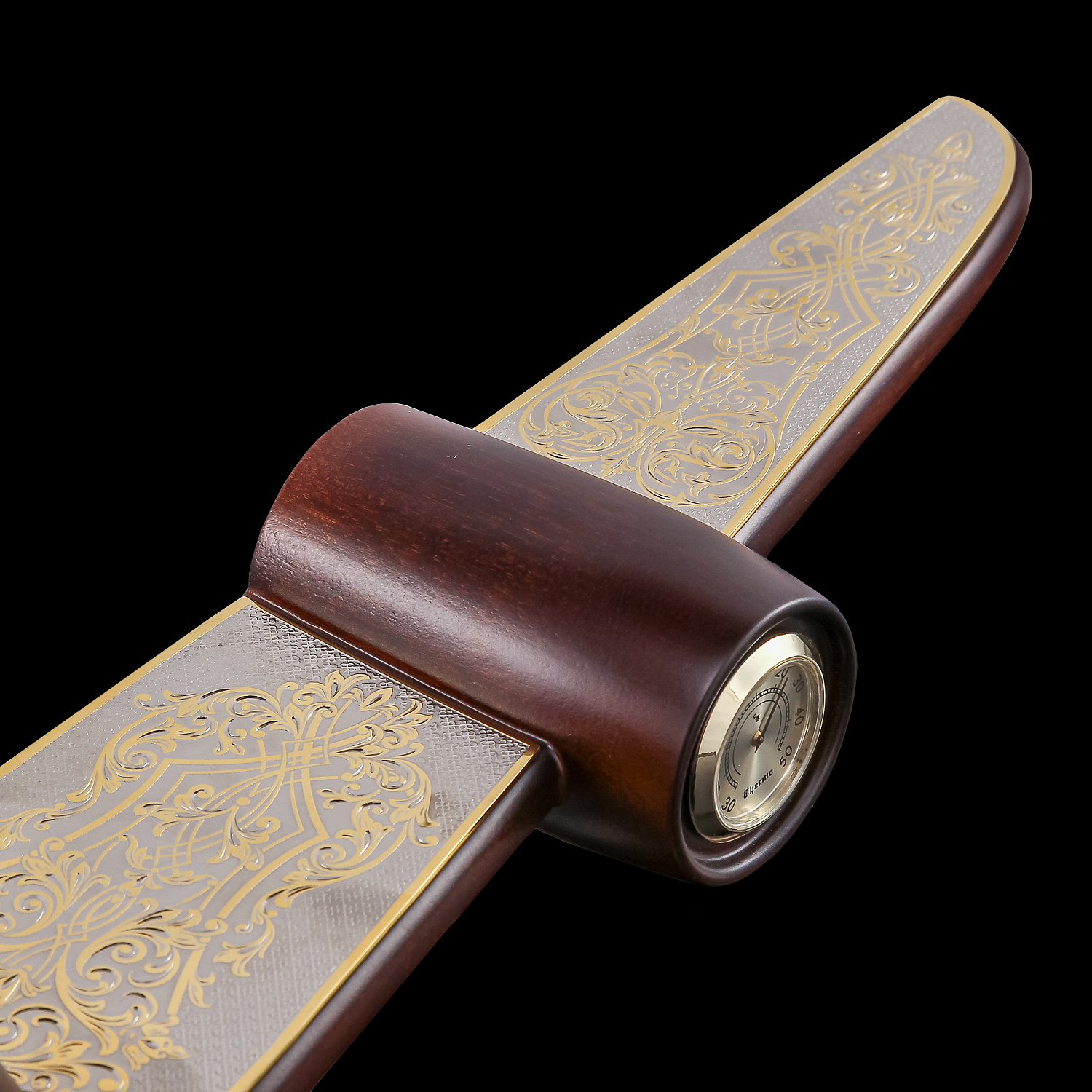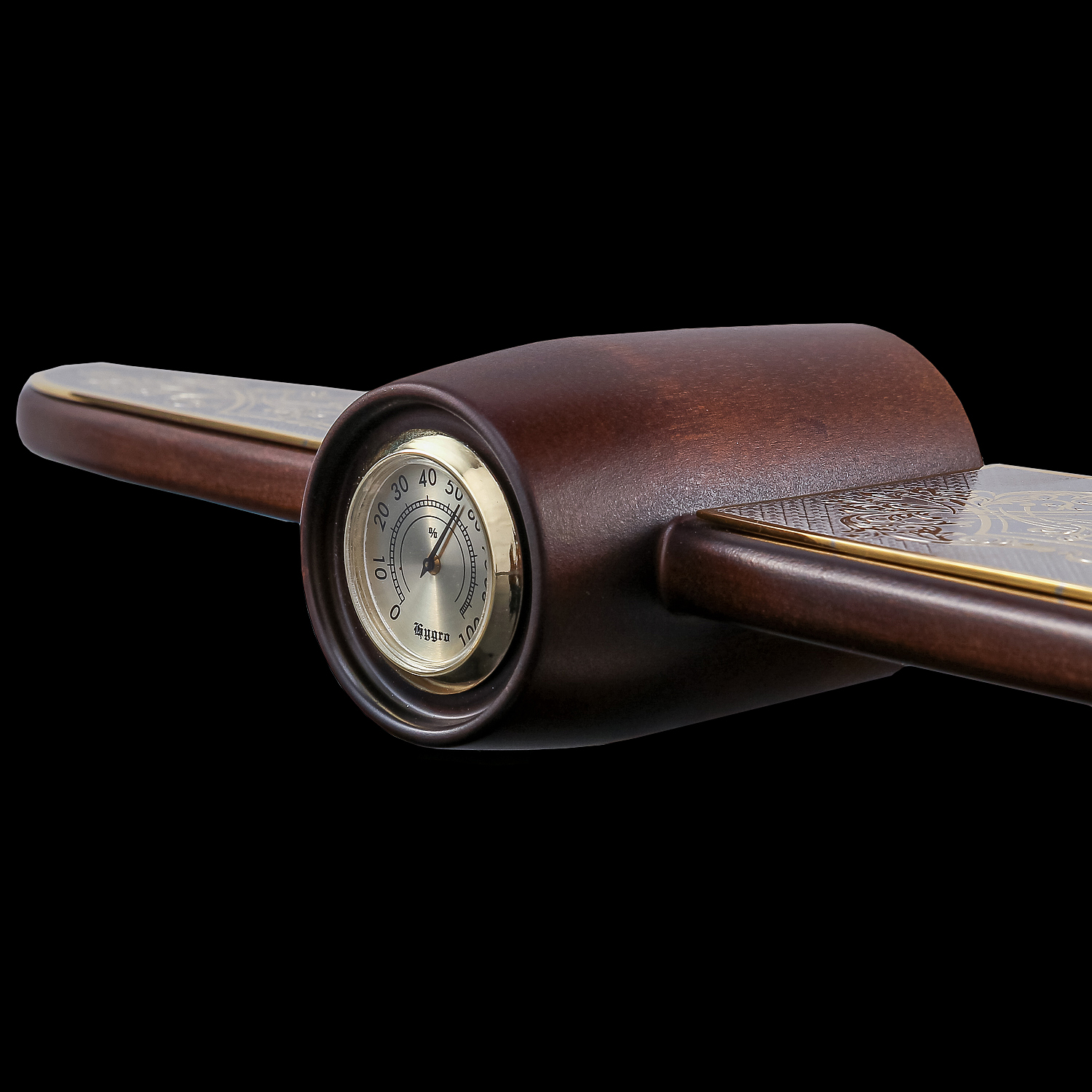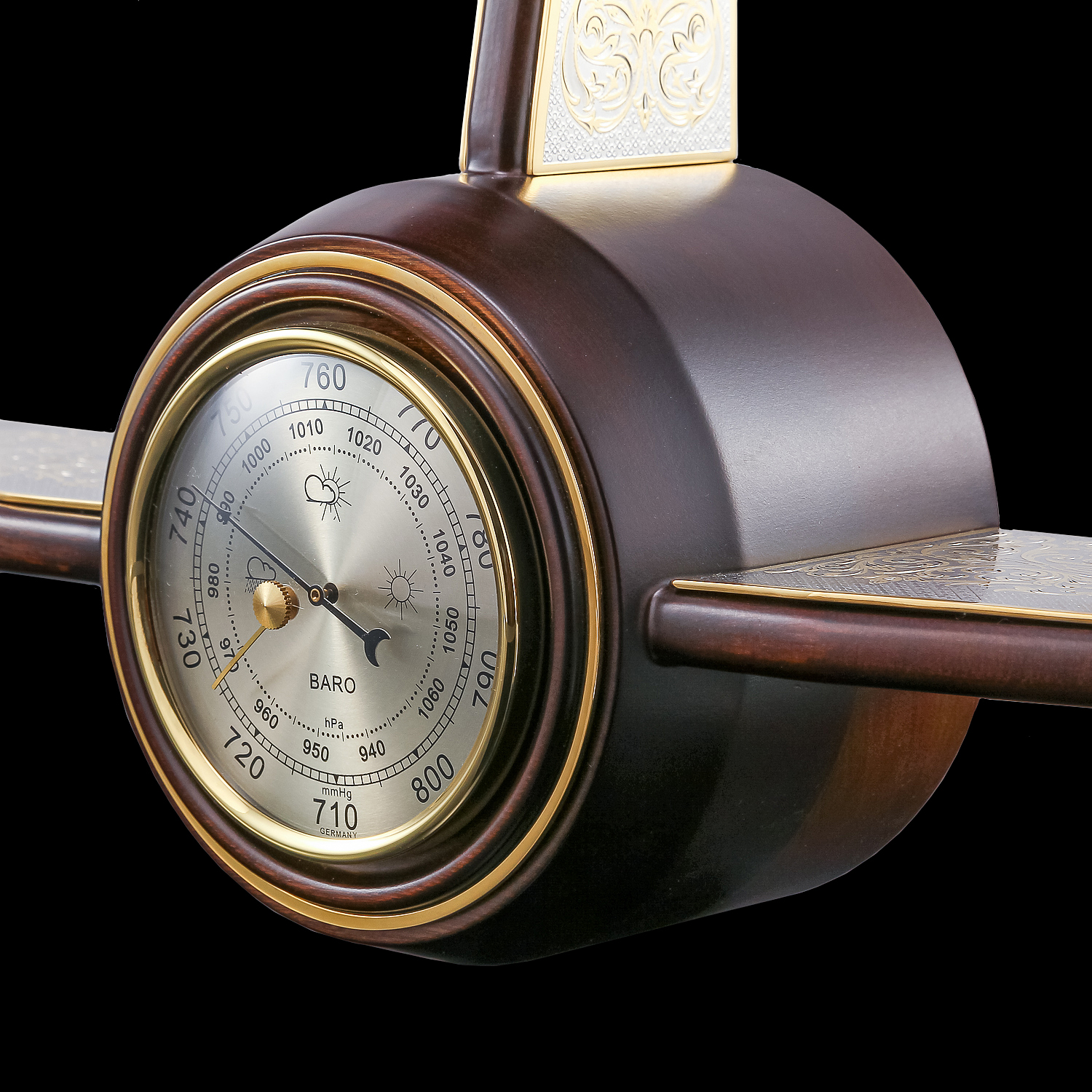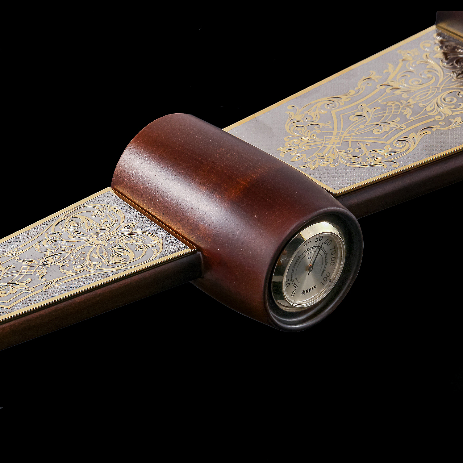 Метеостанция с гигрометром, барометром и термометром декорирована Златоустовской гравюрой по металлу. Уже более двух веков Златоустовская гравюра является самостоятельным и самобытным русским промыслом, который зародился в начале 19 века как способ украшения холодного оружия на Оружейном заводе в уральском городе Златоуст. Метеостанция уложена в стильную подарочную упаковку из дерева. Техника исполнения: токарные работы, рисовка кистью, гравировка иглой по лаку, травление, гравировка резцом, полировка, никелирование, золочение. В изделии использовались традиционные методы обработки и украшения Златоустовской гравюры на металле. ....