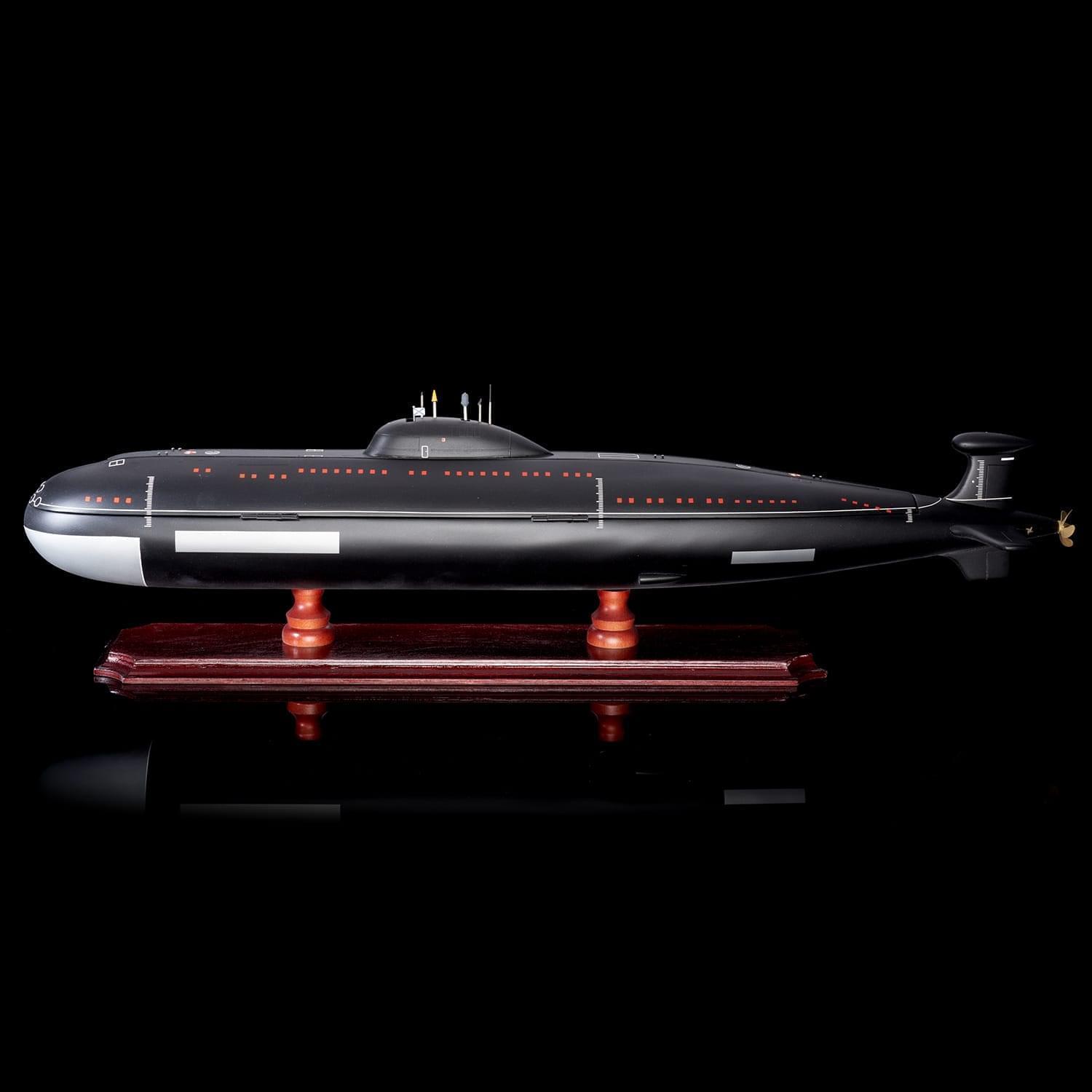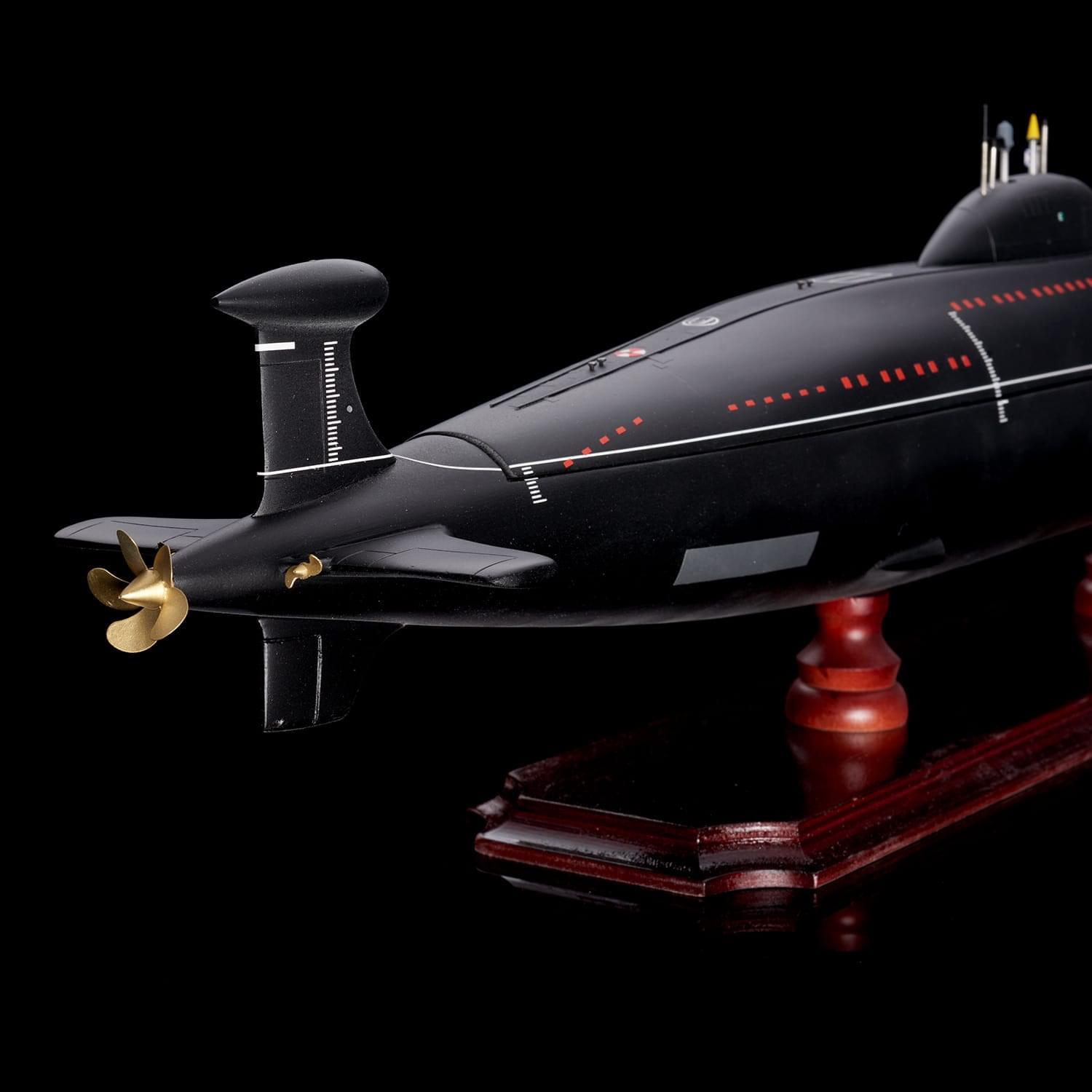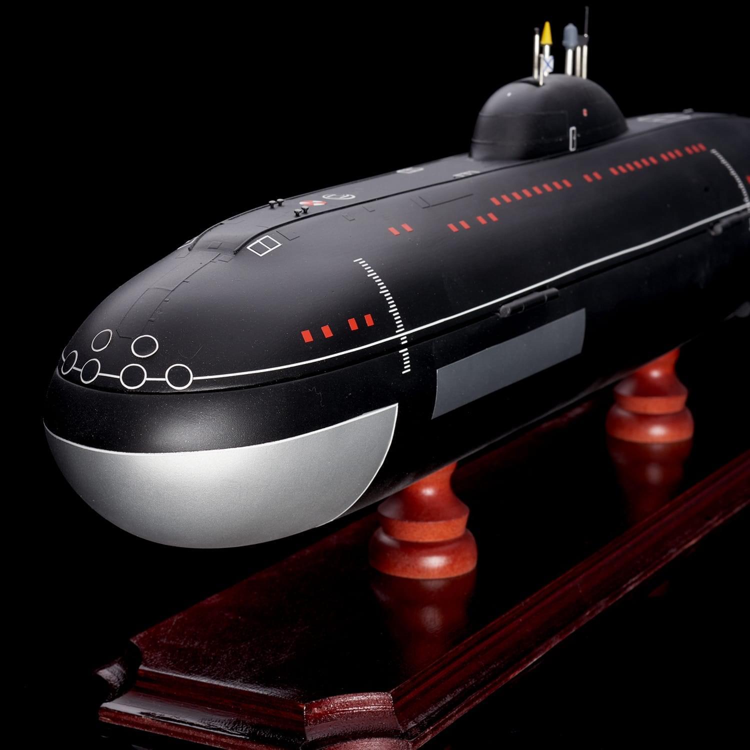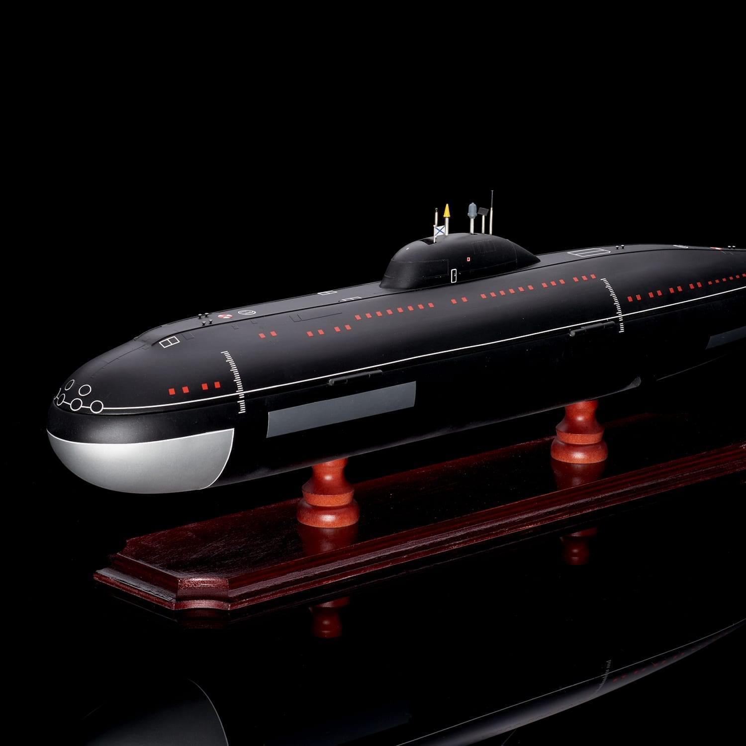 Дополнит интерьер рабочего кабинета или квартиры макет-бар, выполненный в виде модели подводной лодки. Модель отличается высокой детализацией и качественной сборкой. Макет рассчитан на хранение одной бутылки. Также бар укомплектован тремя металлическими стопками. Подводная лодка установлена на постамент из натурального дерева, гармонично сочетающийся с цветом модели. Подлодка Щука 671РТМК разработана советским конструктором Г. Н. Чернышевым. В свое время эти подлодки представляли собой основу атомного флота СССР. Щука 671РТМК принимали участие во многих важных операциях, главные из которых: Атрина и Апорт. .