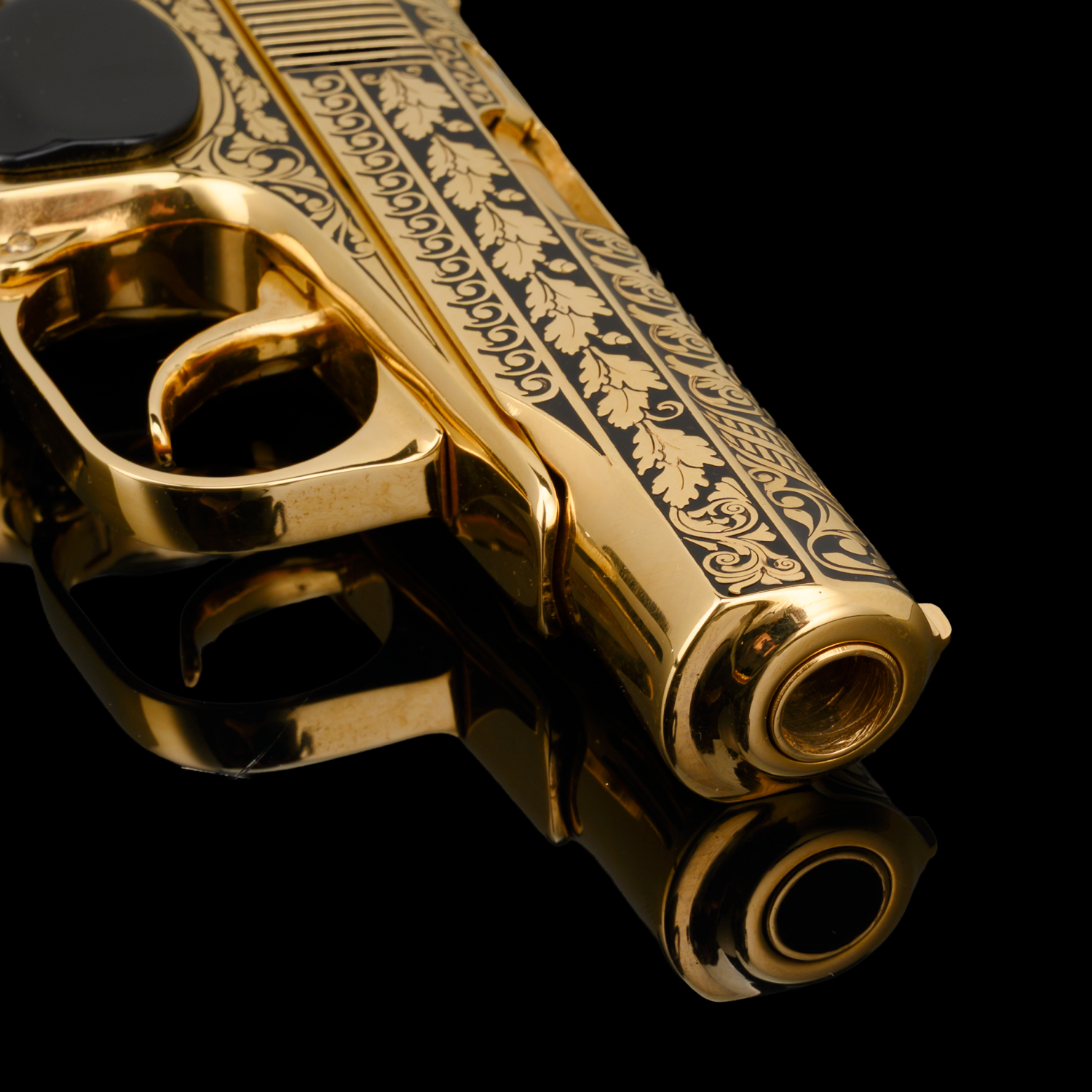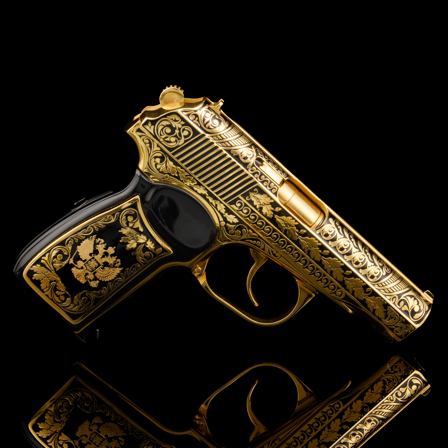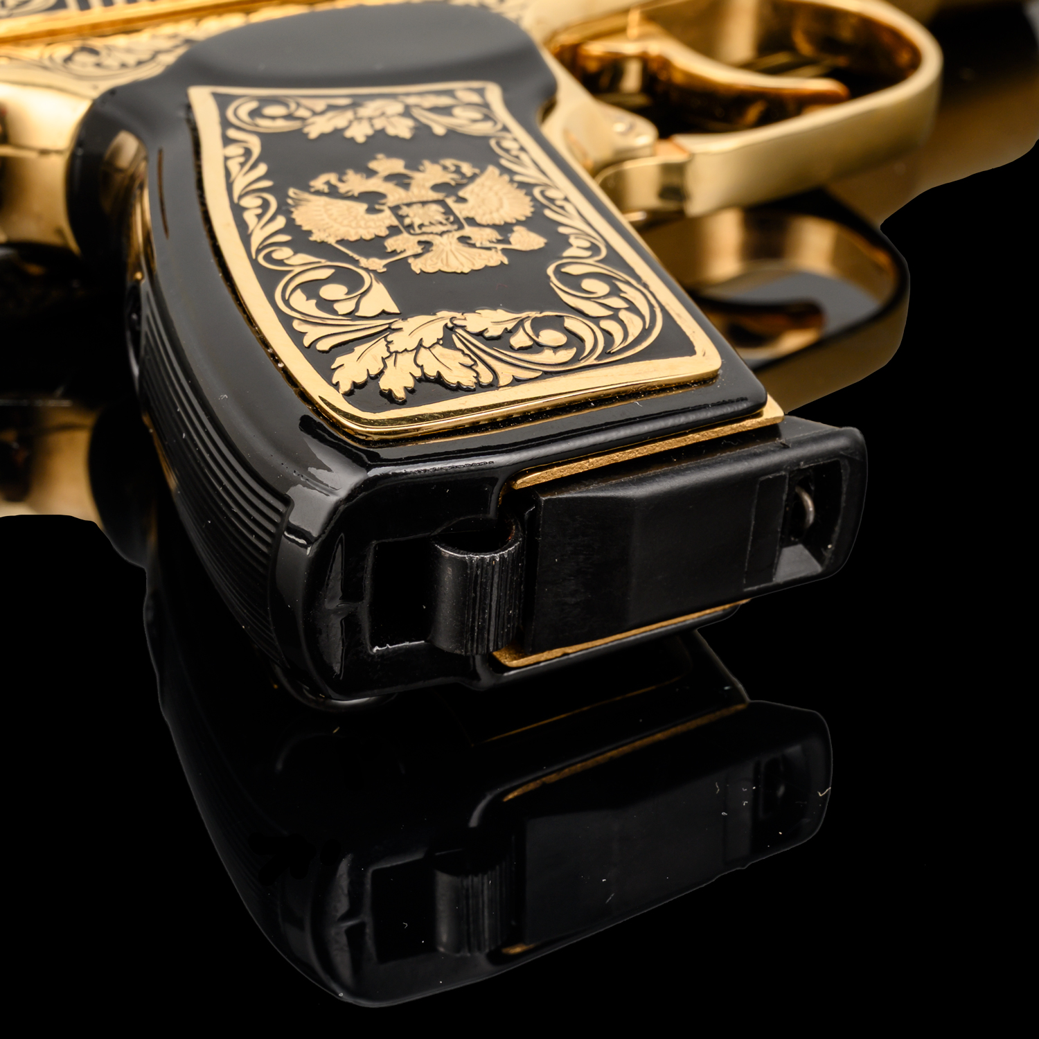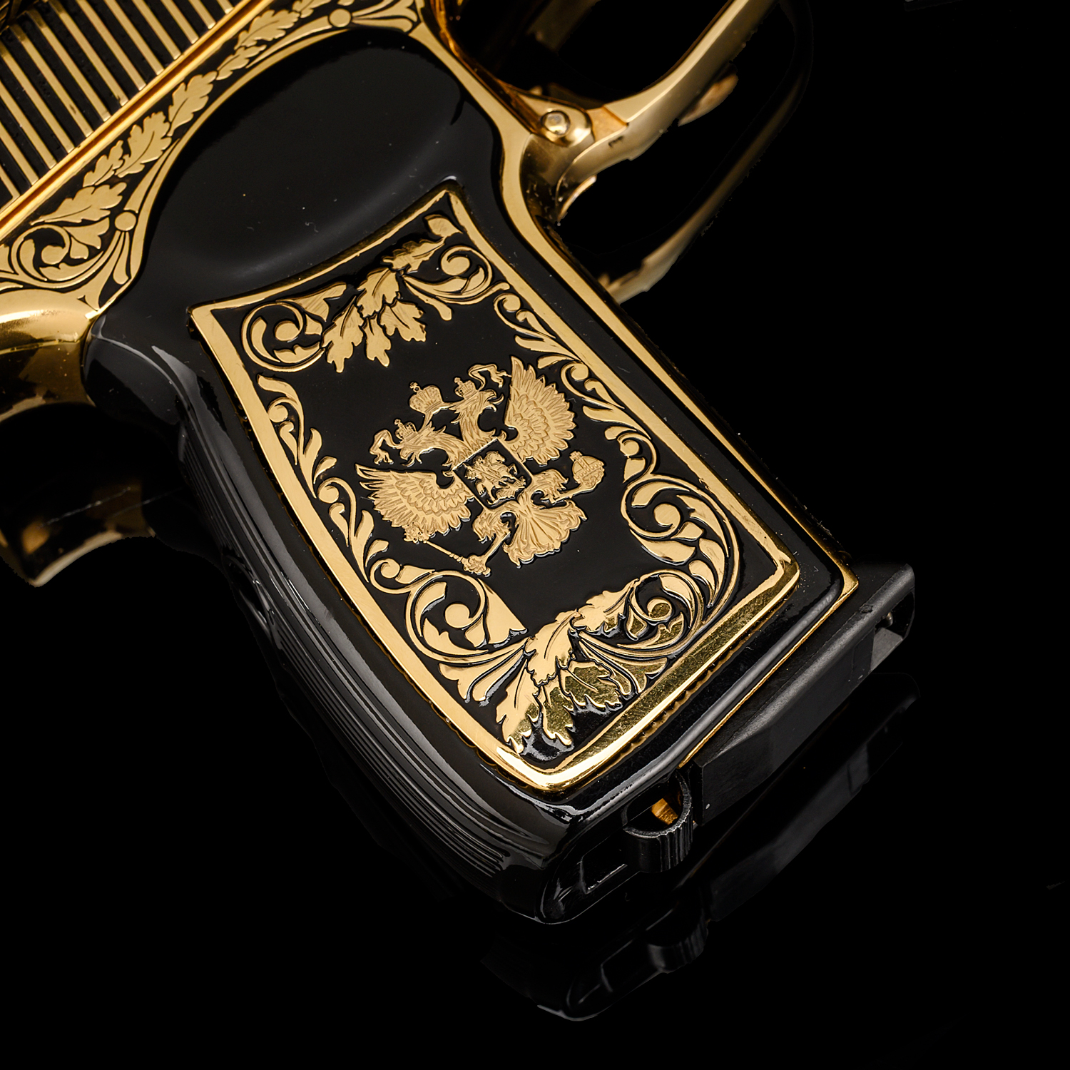Пистолет сувенирный с позолотой и эмалью "Герб РФ". Златоуст.Материалы: сталь, золото 999,9*, эмаль.