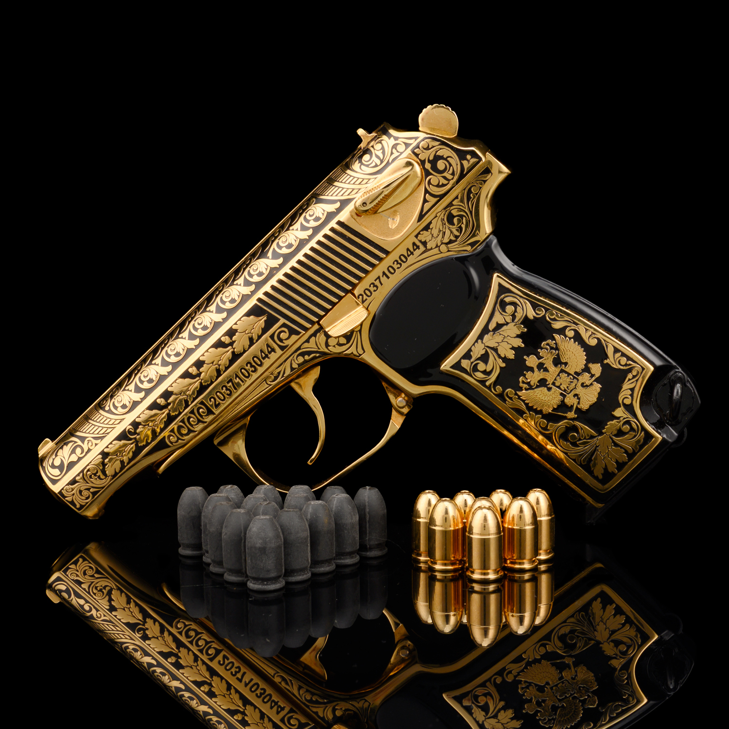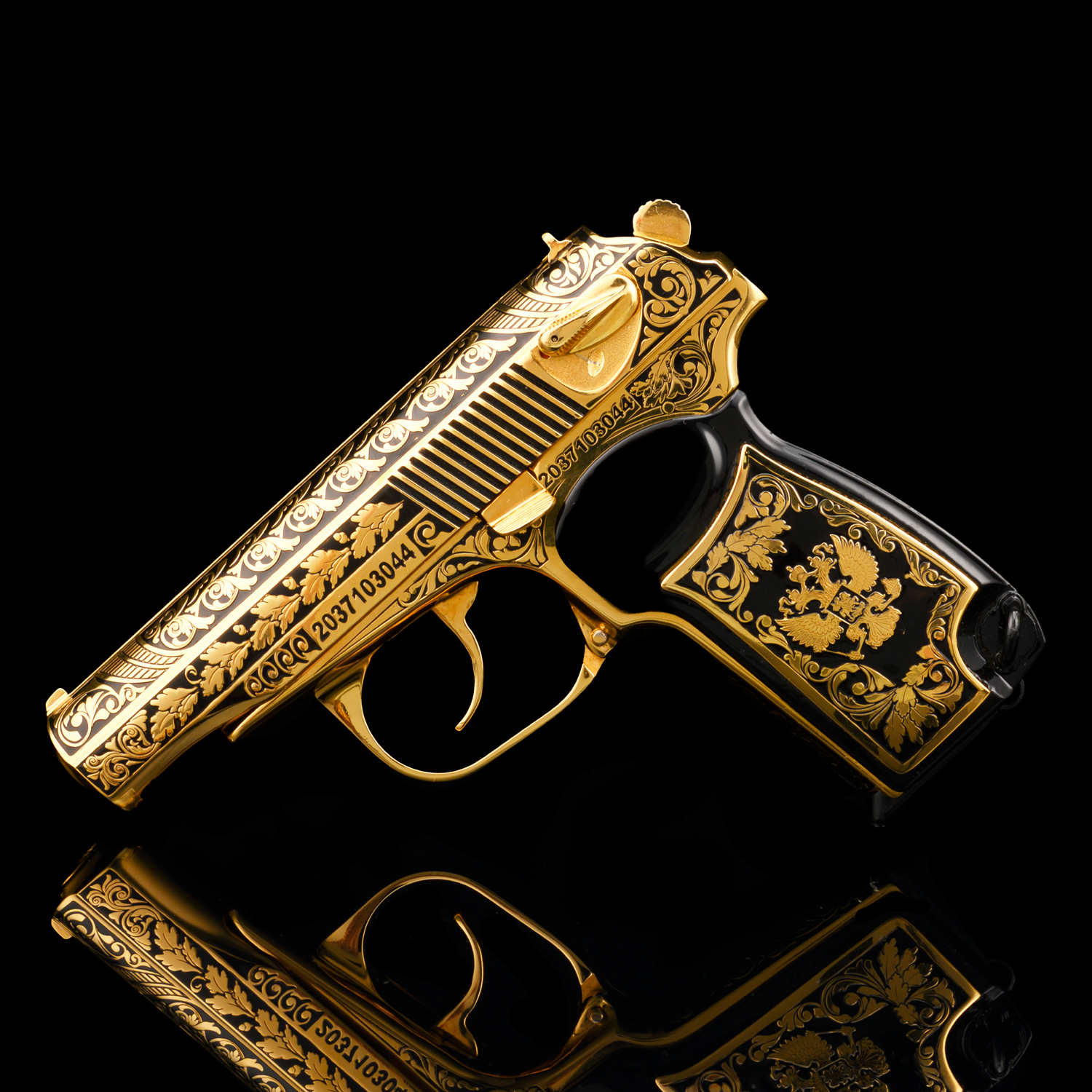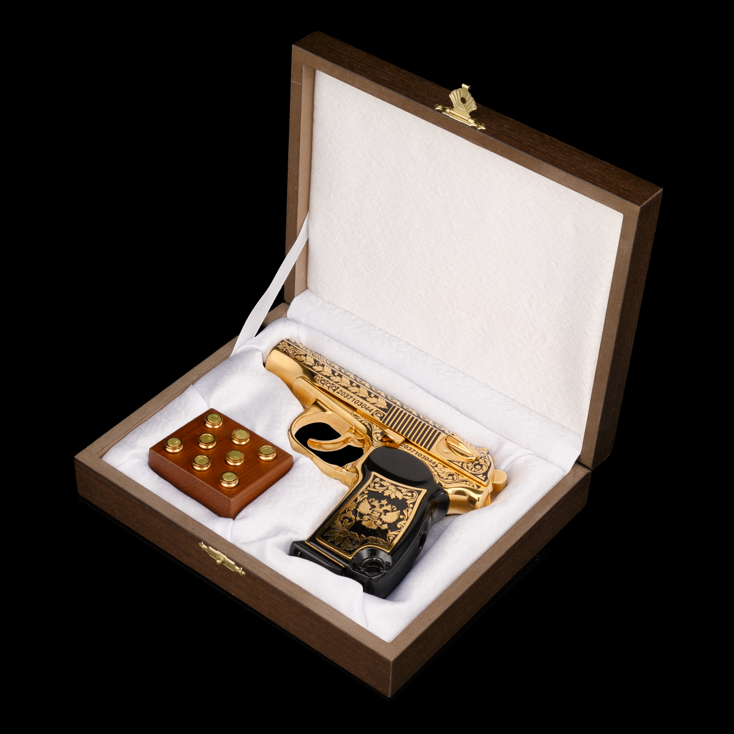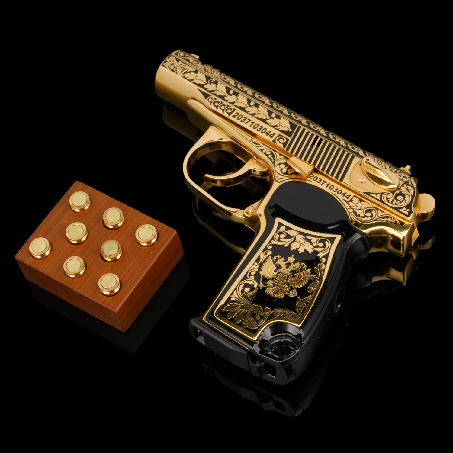 Пистолет сувенирный с позолотой и эмалью "Герб РФ". Златоуст