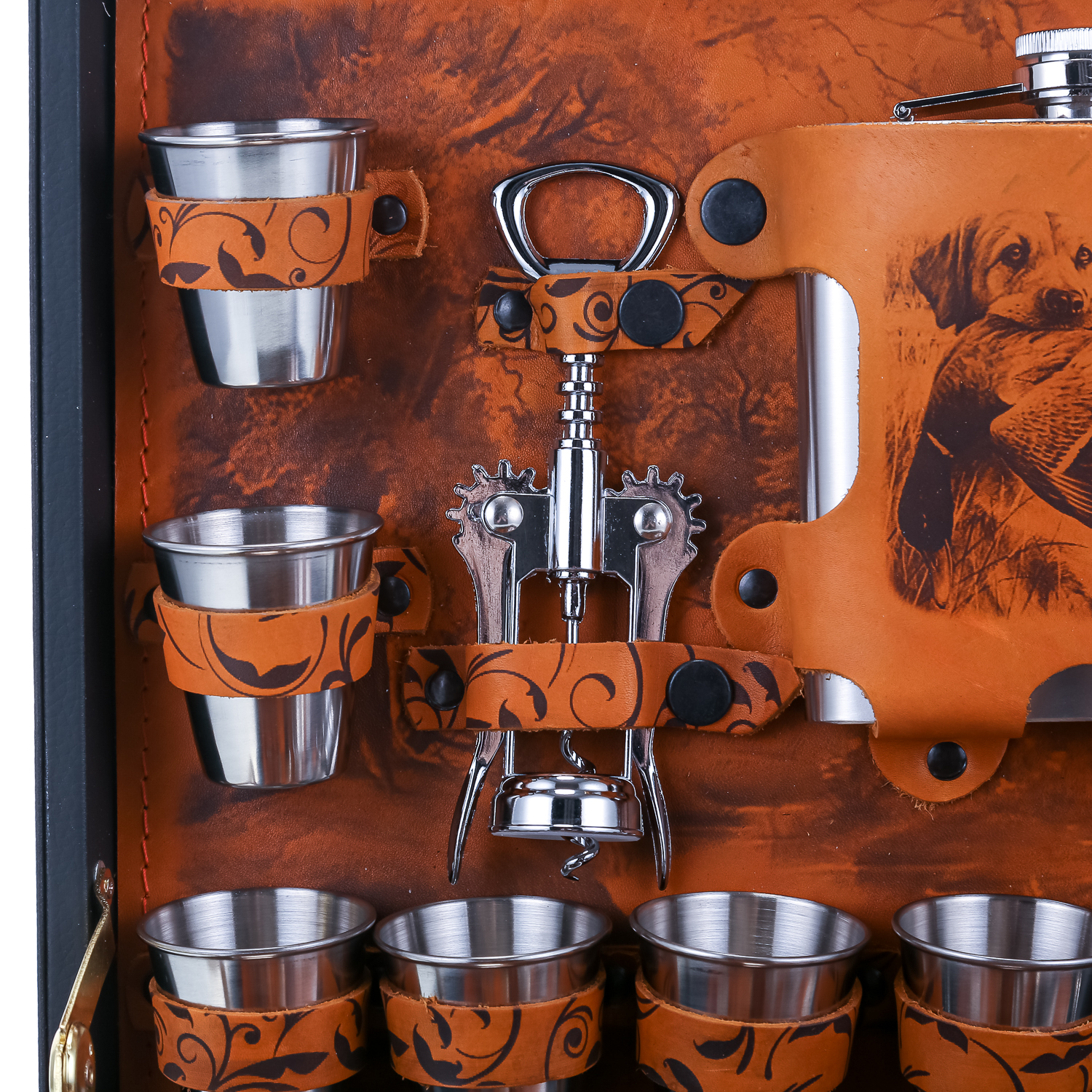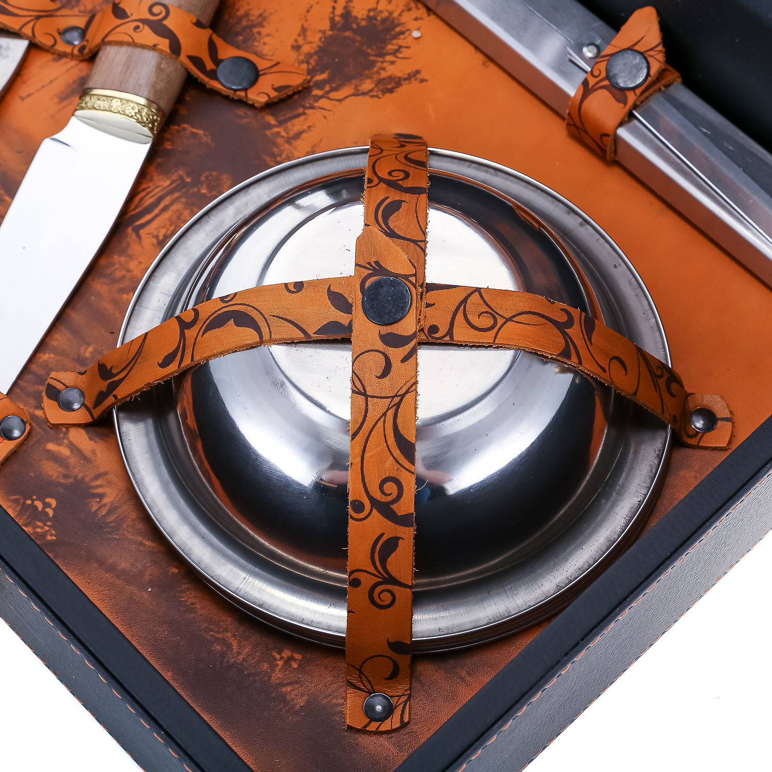 Материалы: кожа, нержавеющая сталь, дерево.