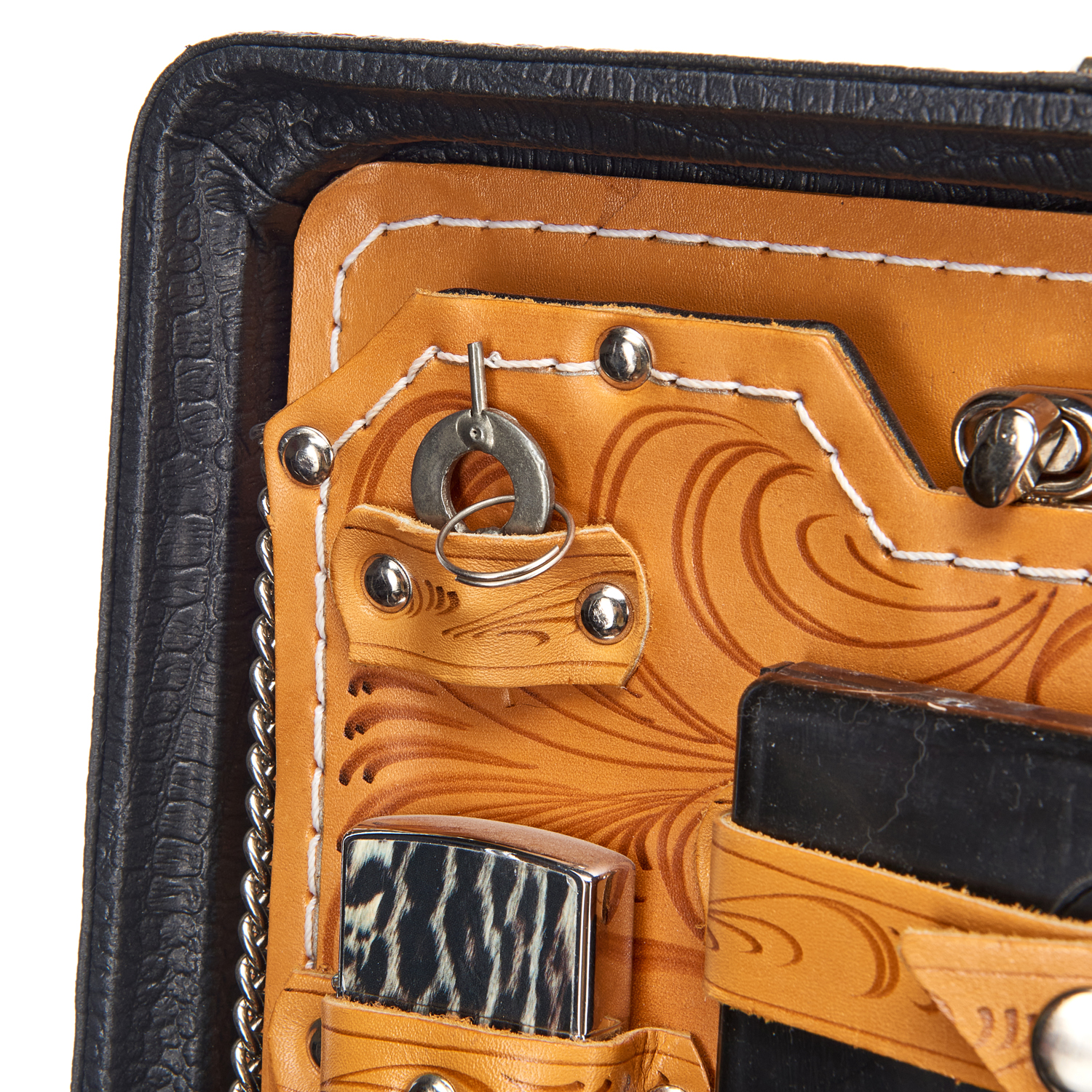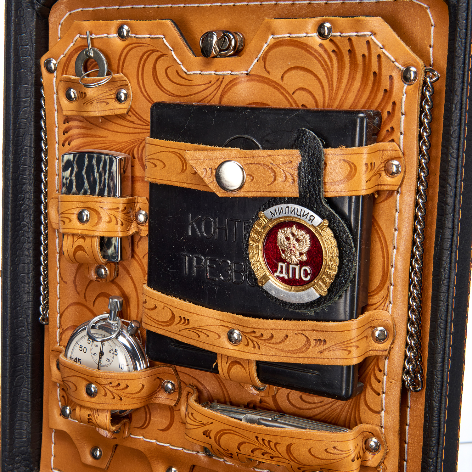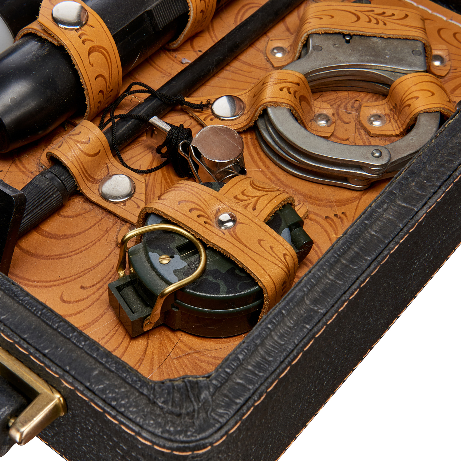Подарочный набор «Спец-набор» – превосходный презент для настоящего мужчины к Дню защитника Отечества или профессиональным праздникам для сотрудников органов правопорядка. Он станет отличным спутником для сотрудников МВД, ДПС и тех, кто предпочитает эстетику власти. Набор упакован в стильный кейс из натуральной тиснёной кожи с позолоченной фурнитурой и кодовым замком. Внутри есть всё необходимое: подобие откидывающегося столика, наручники, часы и так далее.