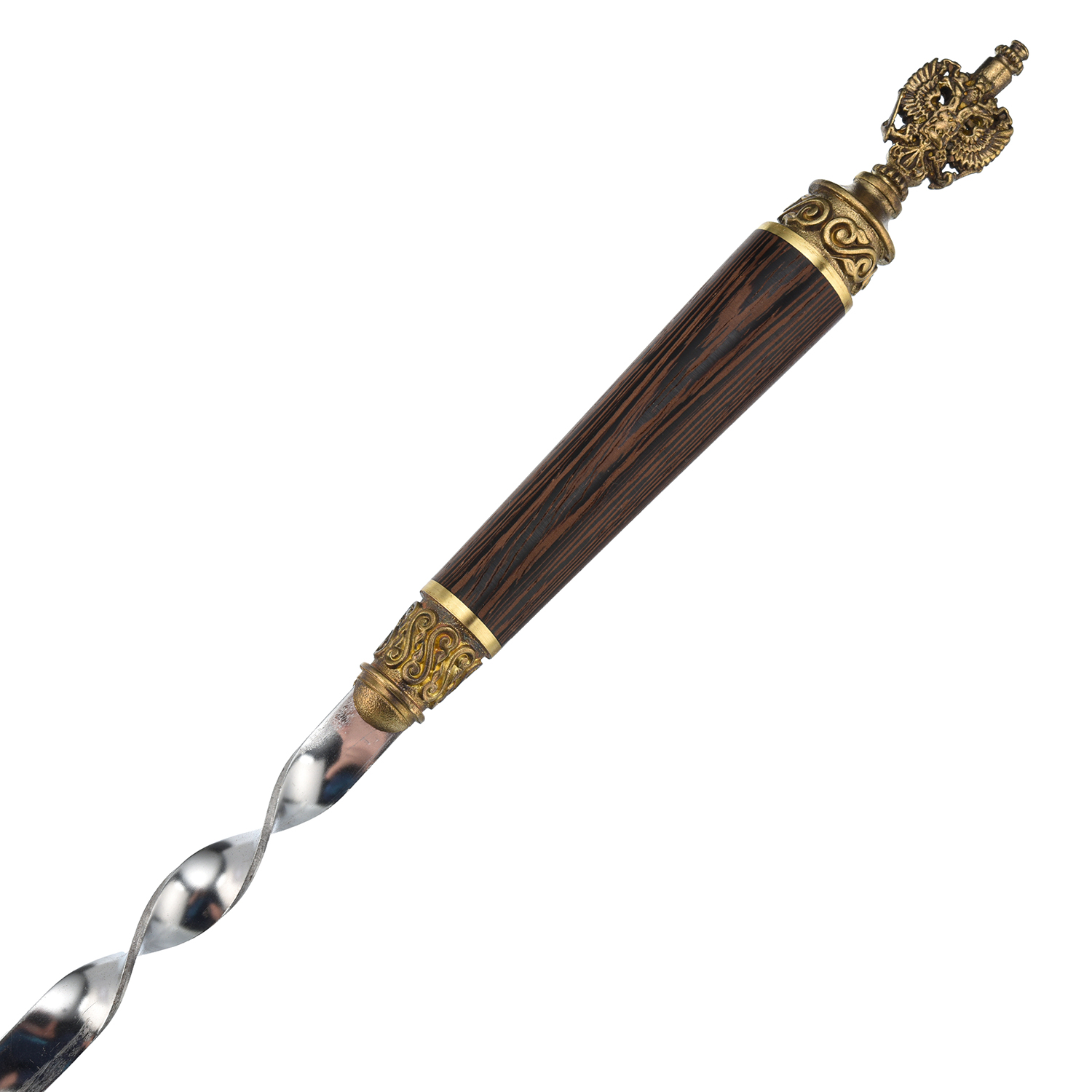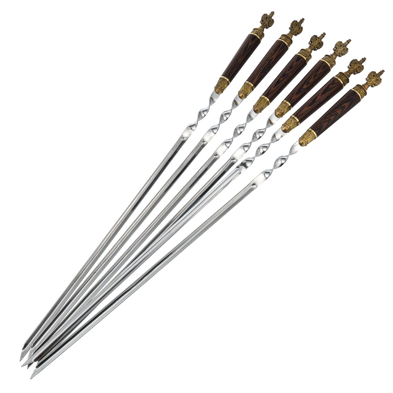 Шашлычный набор из 6 шампуров "Герб" в кожаном чехле.Материалы: нержавеющая сталь, дерево, бронза, кожа.