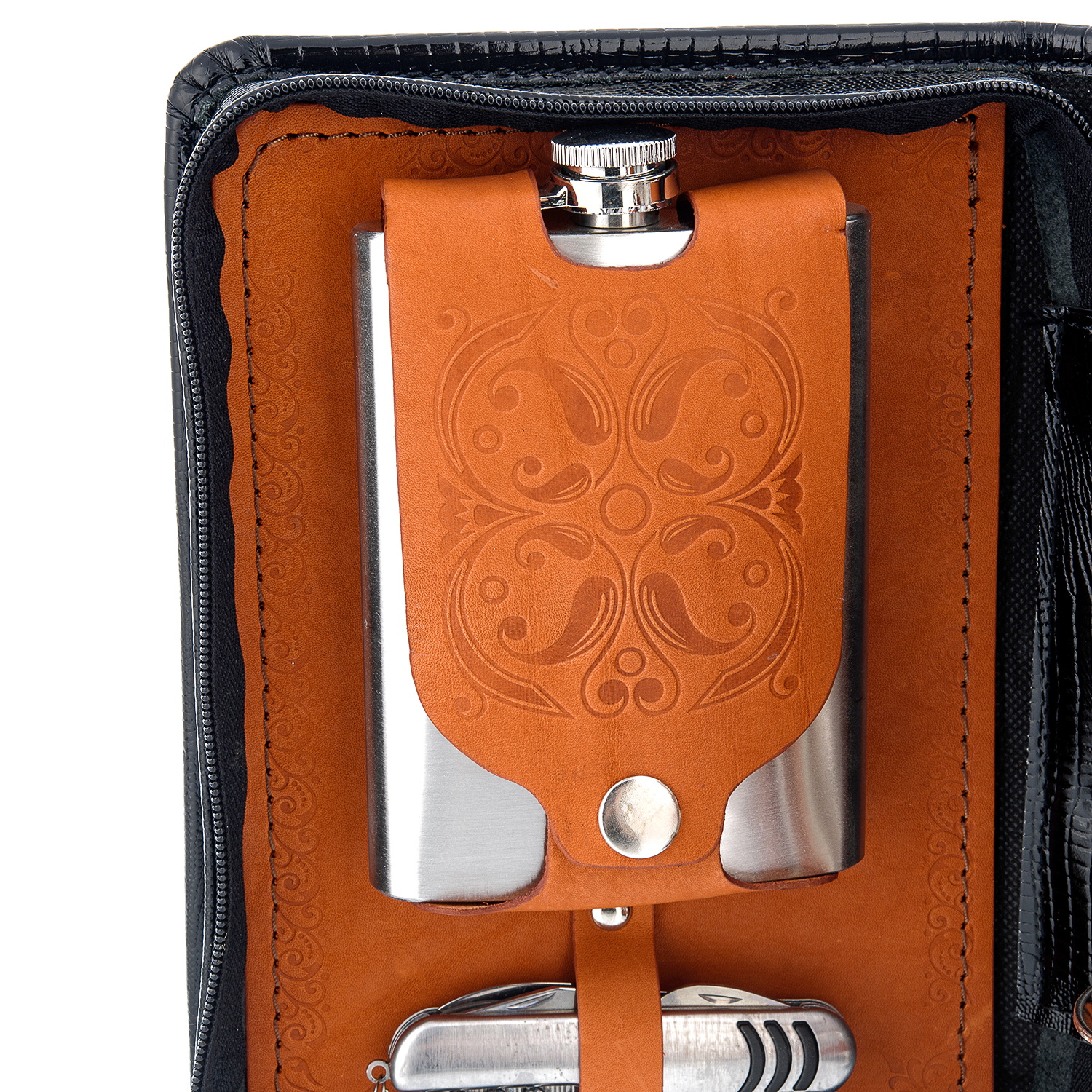 Комплектация: фляга 1 шт., нож 1 шт., стопка 6 шт., вилка 6 шт., ложка 6 шт.