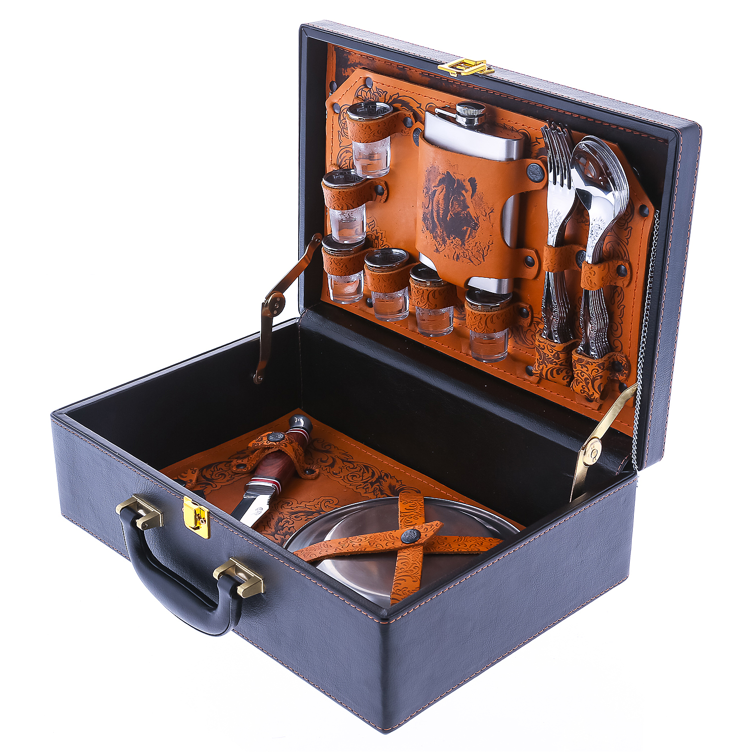 Набор для пикника на 6 персон "Подарочный".Материалы: кожа, нержавеющая сталь, дерево.