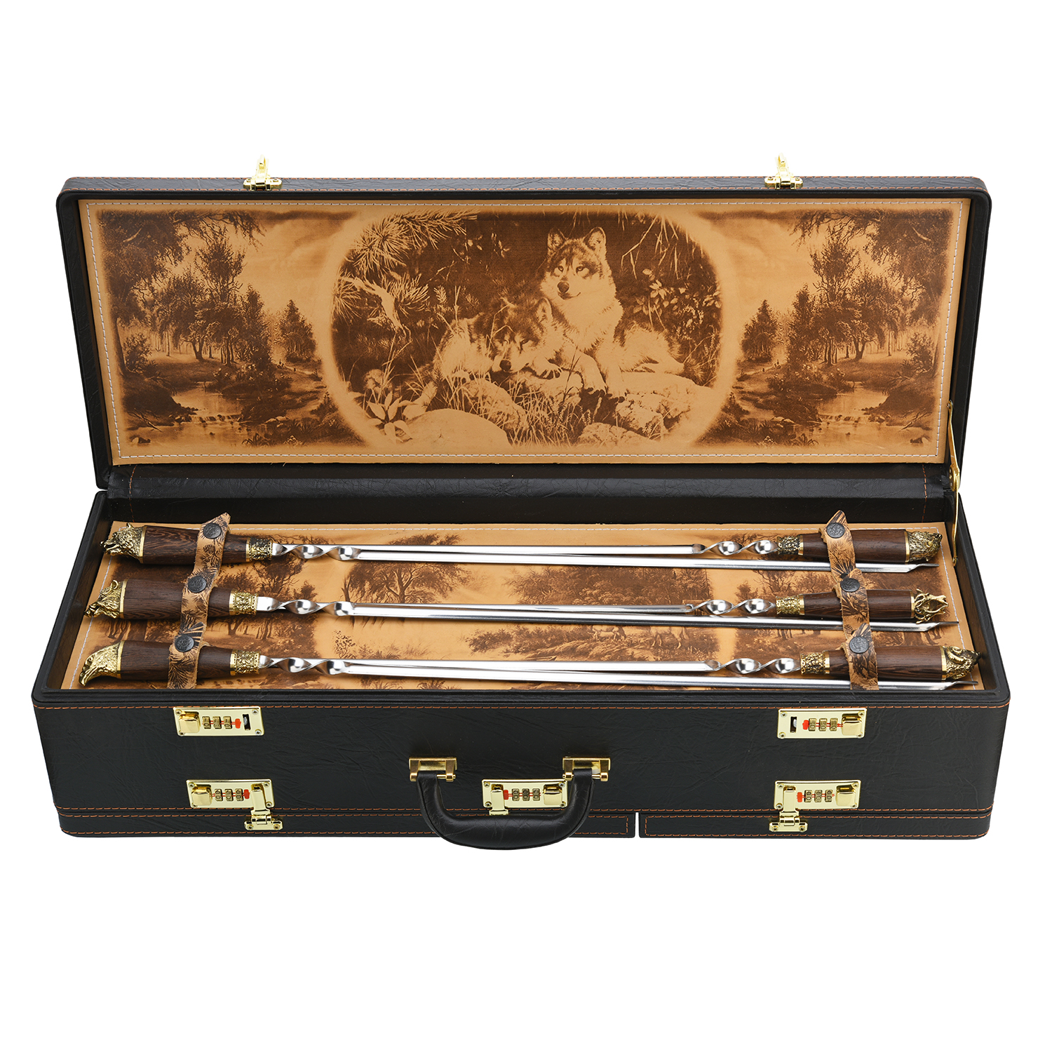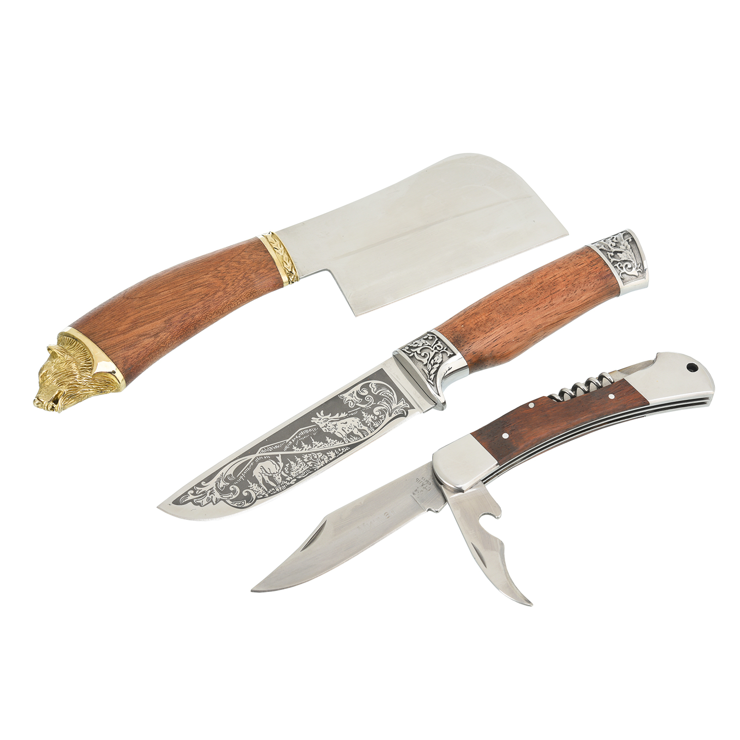Материалы: нержавеющая сталь, дерево, бронза, кожа.