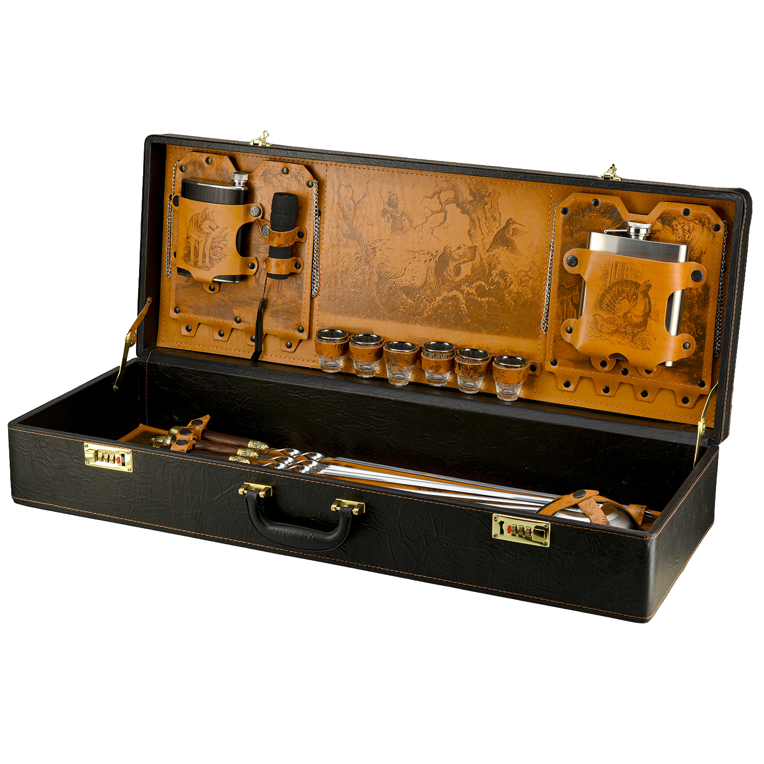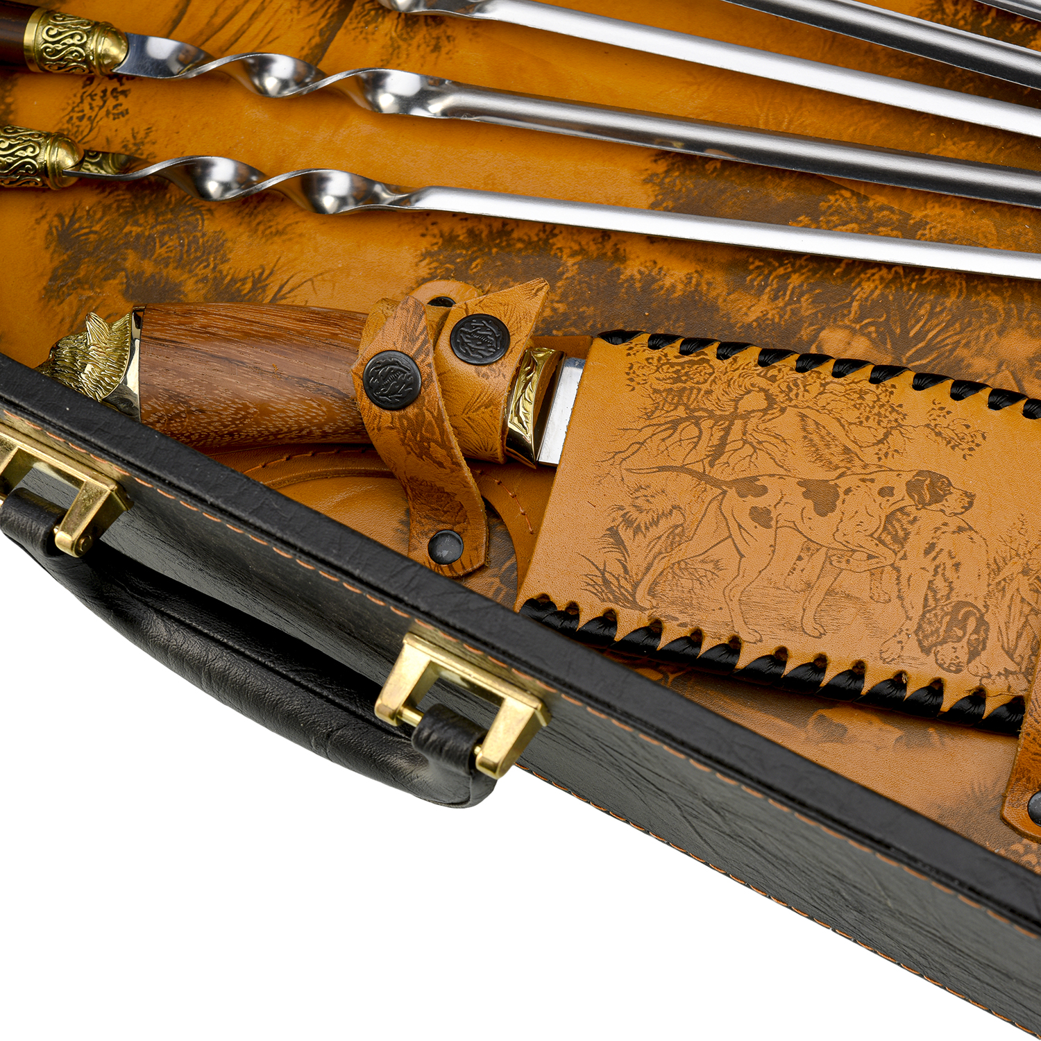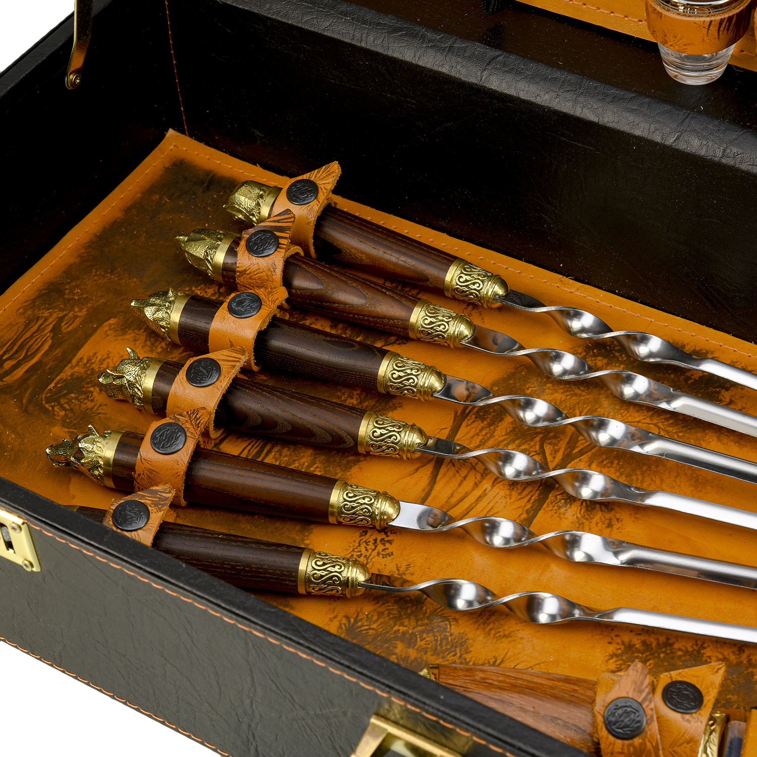 Набор для пикника "Подарочный".Материалы: нержавеющая сталь, дерево, бронза, кожа.