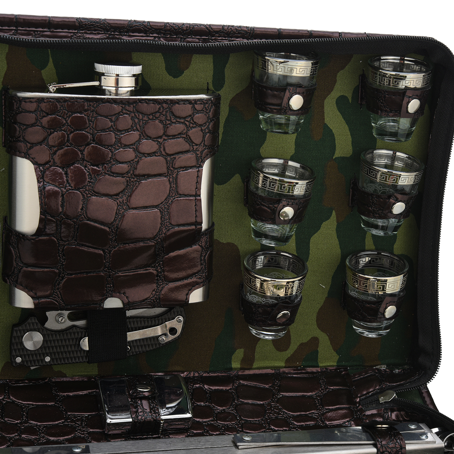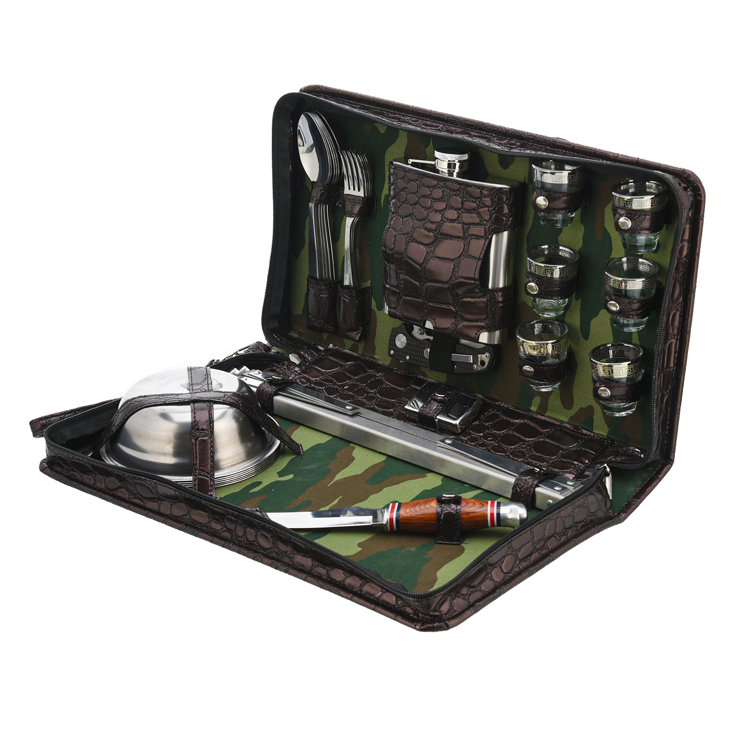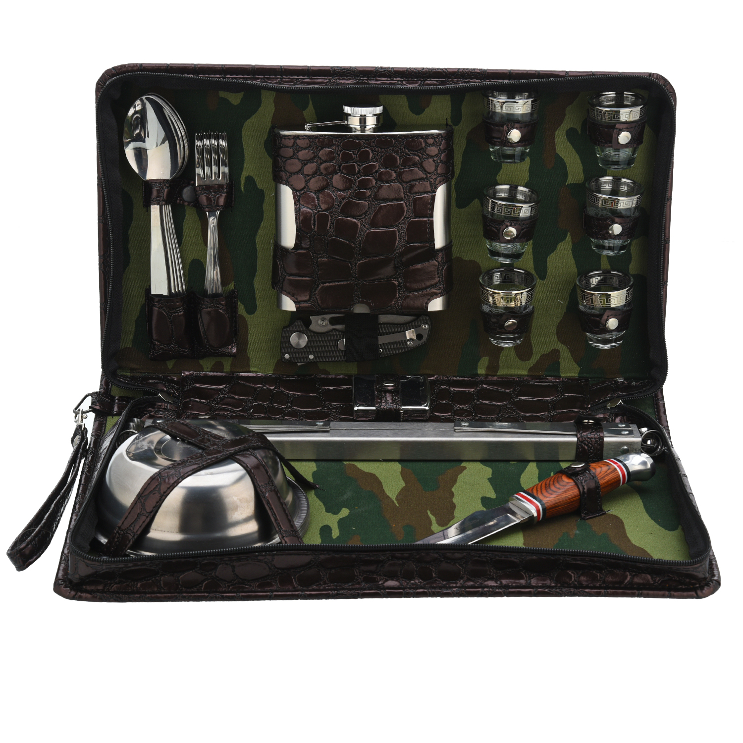 Набор для пикника "Шашлычный".Материалы: нержавеющая сталь, стекло, дерево, кожа.