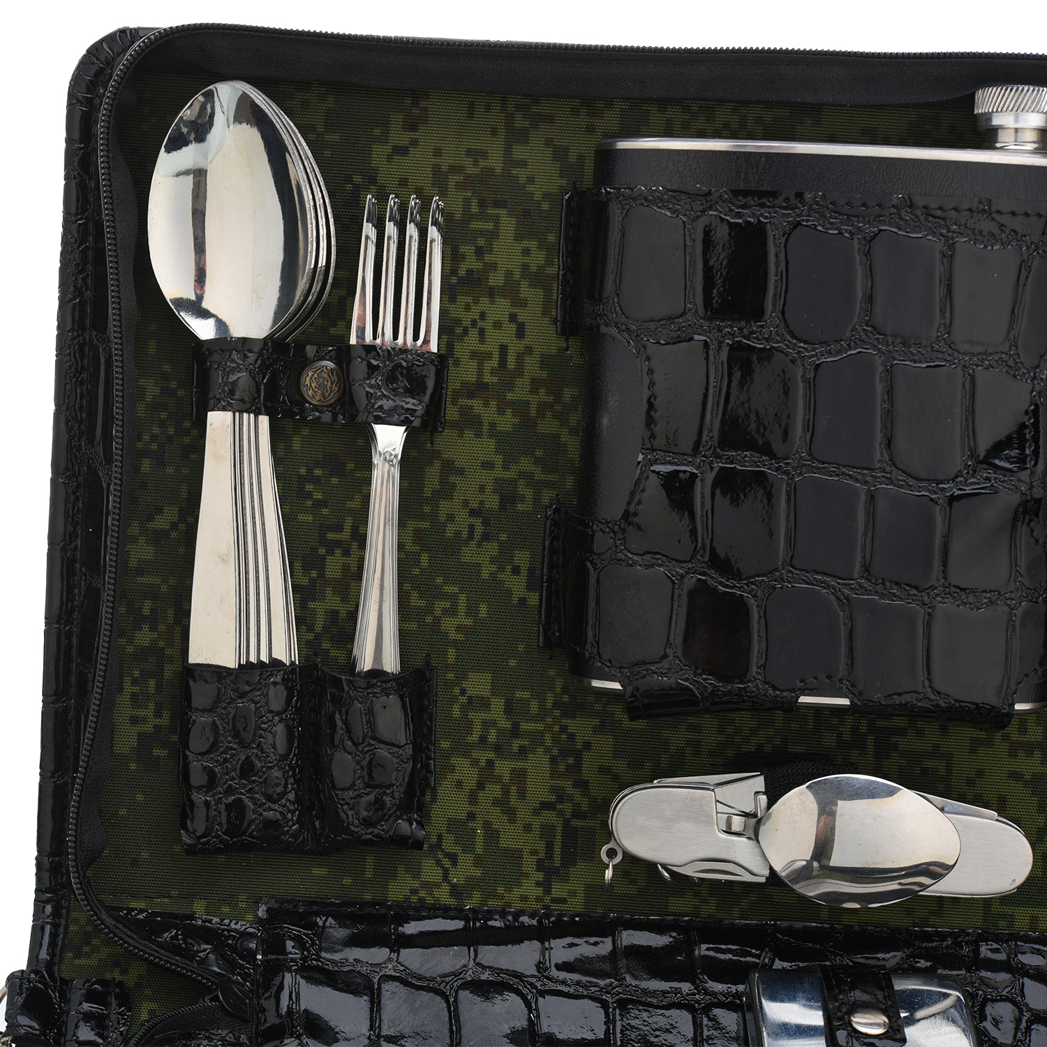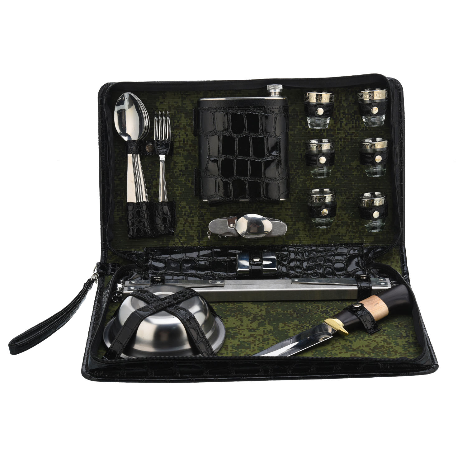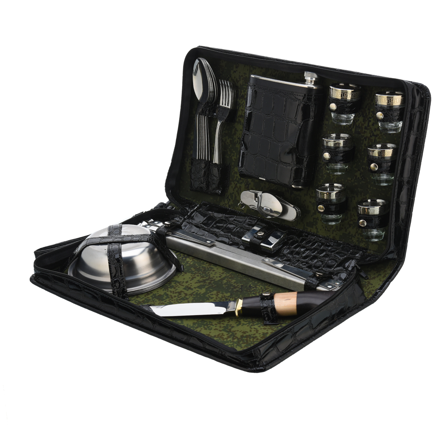 Набор для пикника "Шашлычный".Материалы: нержавеющая сталь, стекло, дерево, кожа.