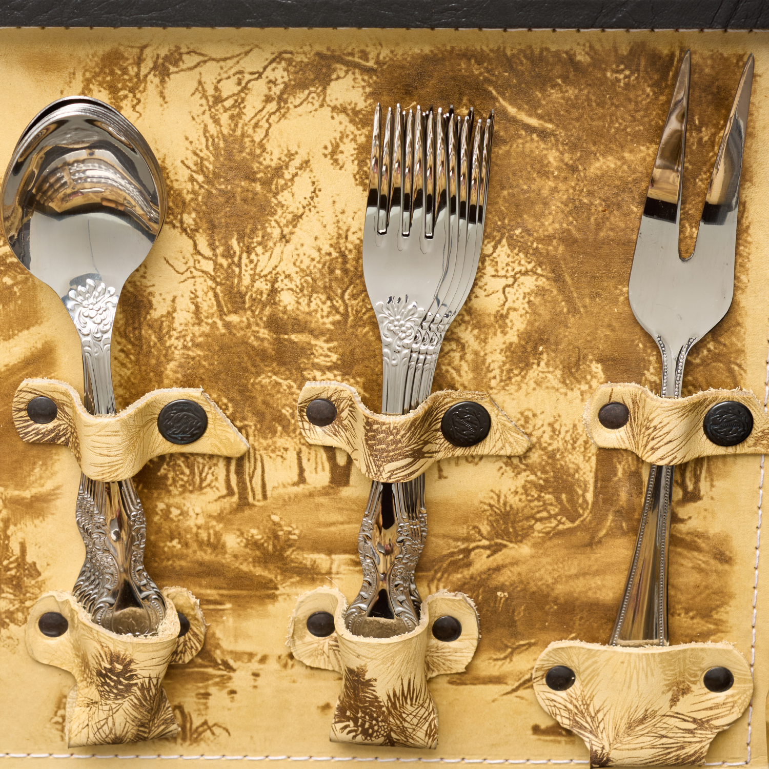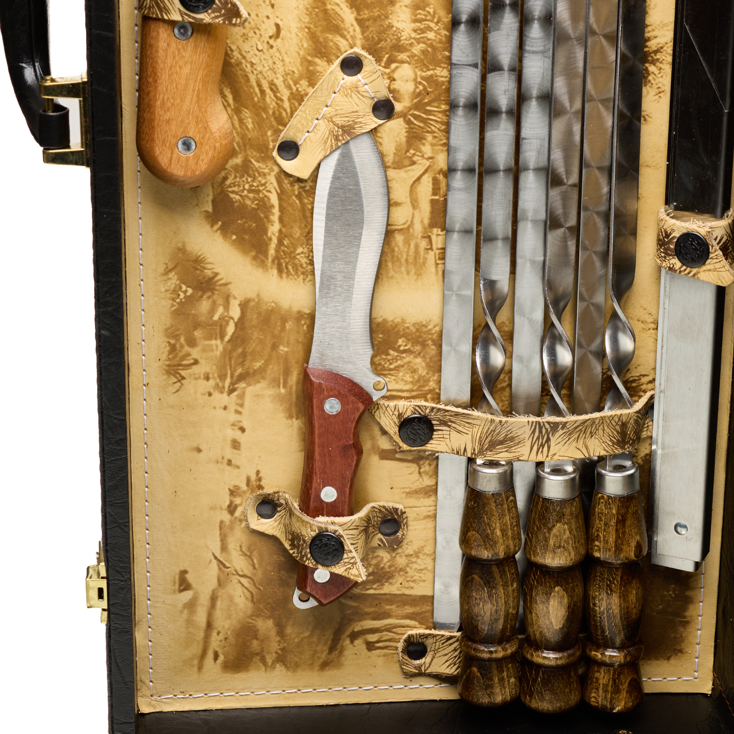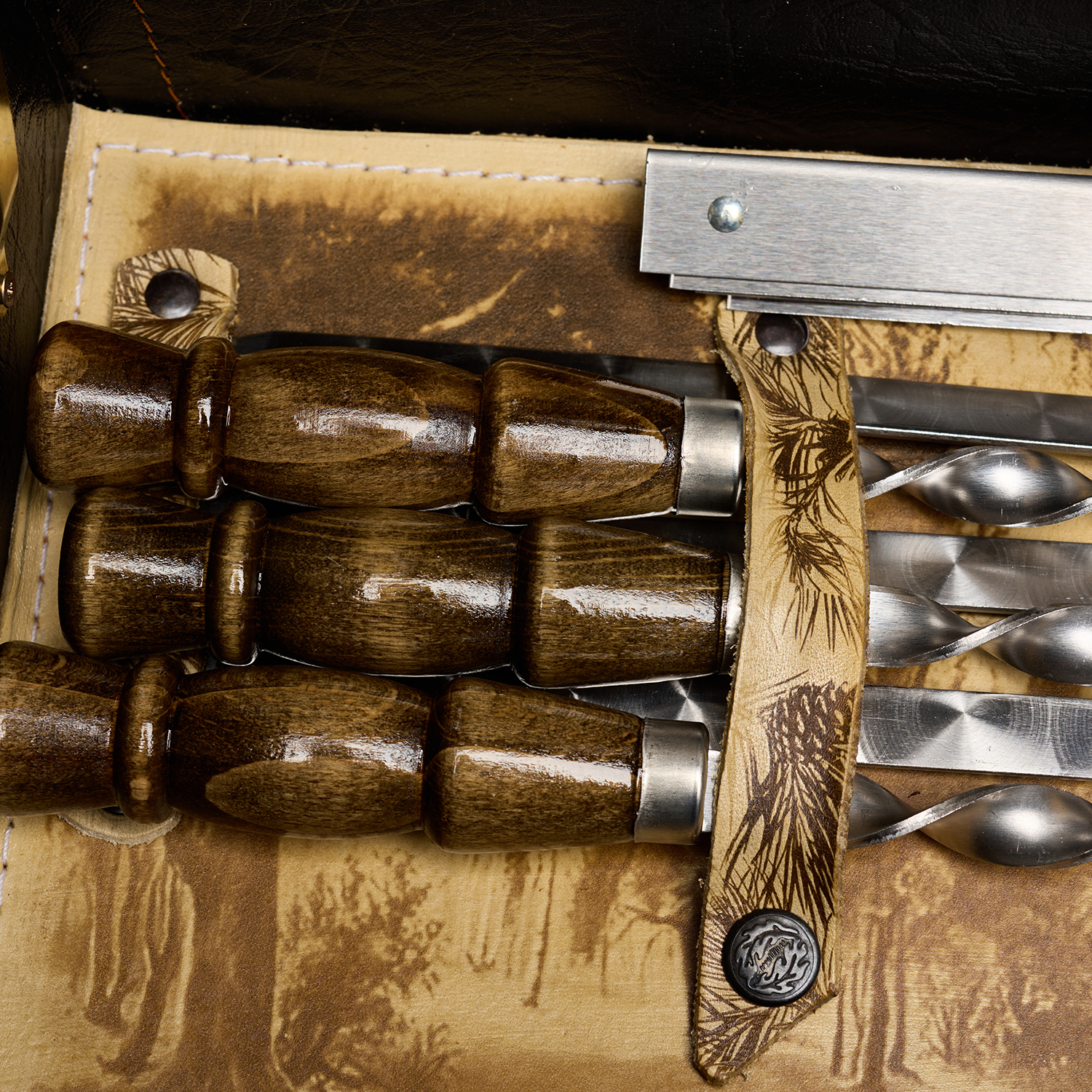 Набор для пикника "Подарочный" на 6 персон.Материалы: кожа, нержавеющая сталь, стекло.