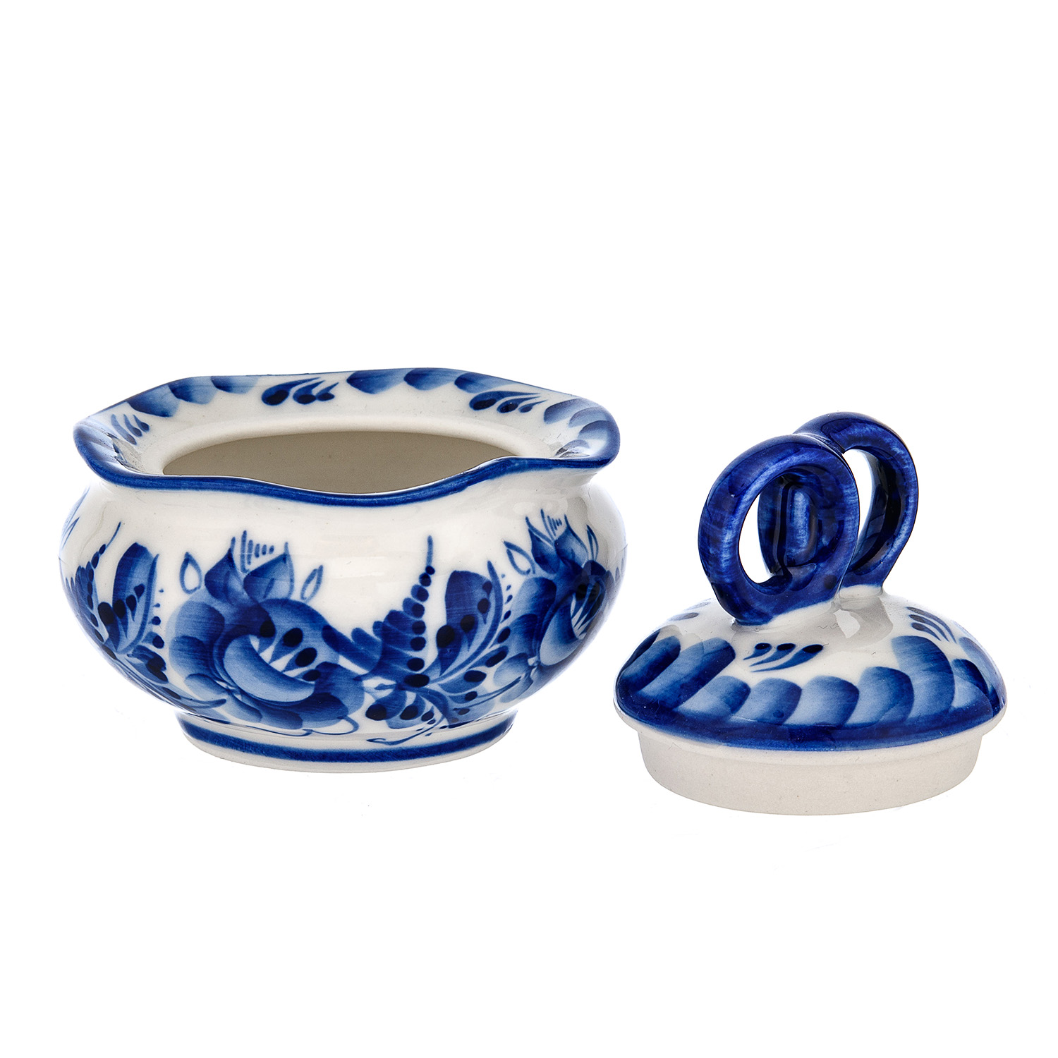 Совет да любовь! Оригинальный фарфоровый аксессуар, солонка свадебная, станет хорошим дополнением торжества. Работа изготовлена из высококачественного фарфора и декорирована ручным способом, расписана в технике подглазурного кобальта настоящей Гжельской росписью. Этот метод требует от исполнителя внимательности и высокого мастерства. В оформлении плакетки мастер использовал характерные для гжельской росписи мотивы. Аксессуар представлен в двух вариантах оформления: Гжель в золоте и стандарт. Купить солонку Гжель можно как на сайте онлайн, так и в нашем выставочном зале, где вы найдете множество других интересных изделий из фарфора с Гжельской росписью.