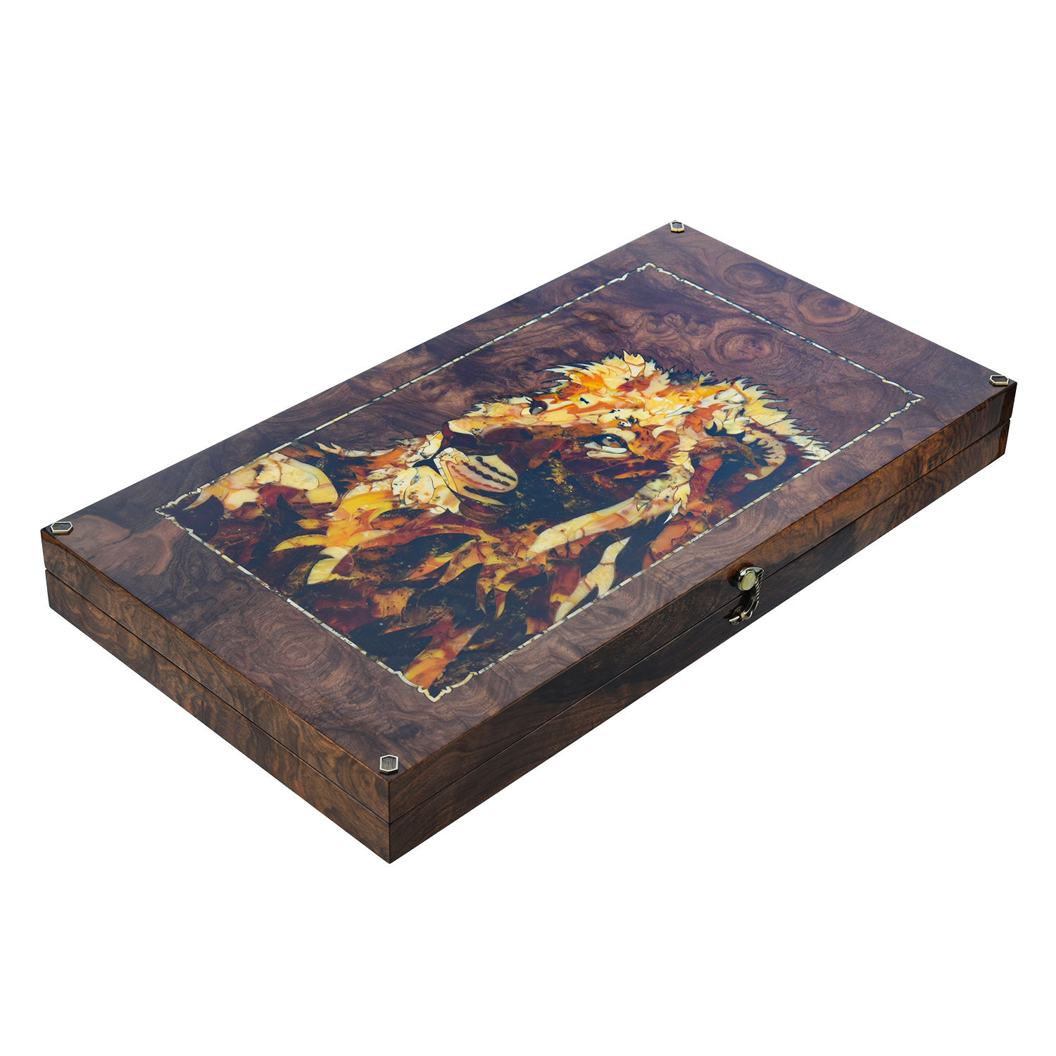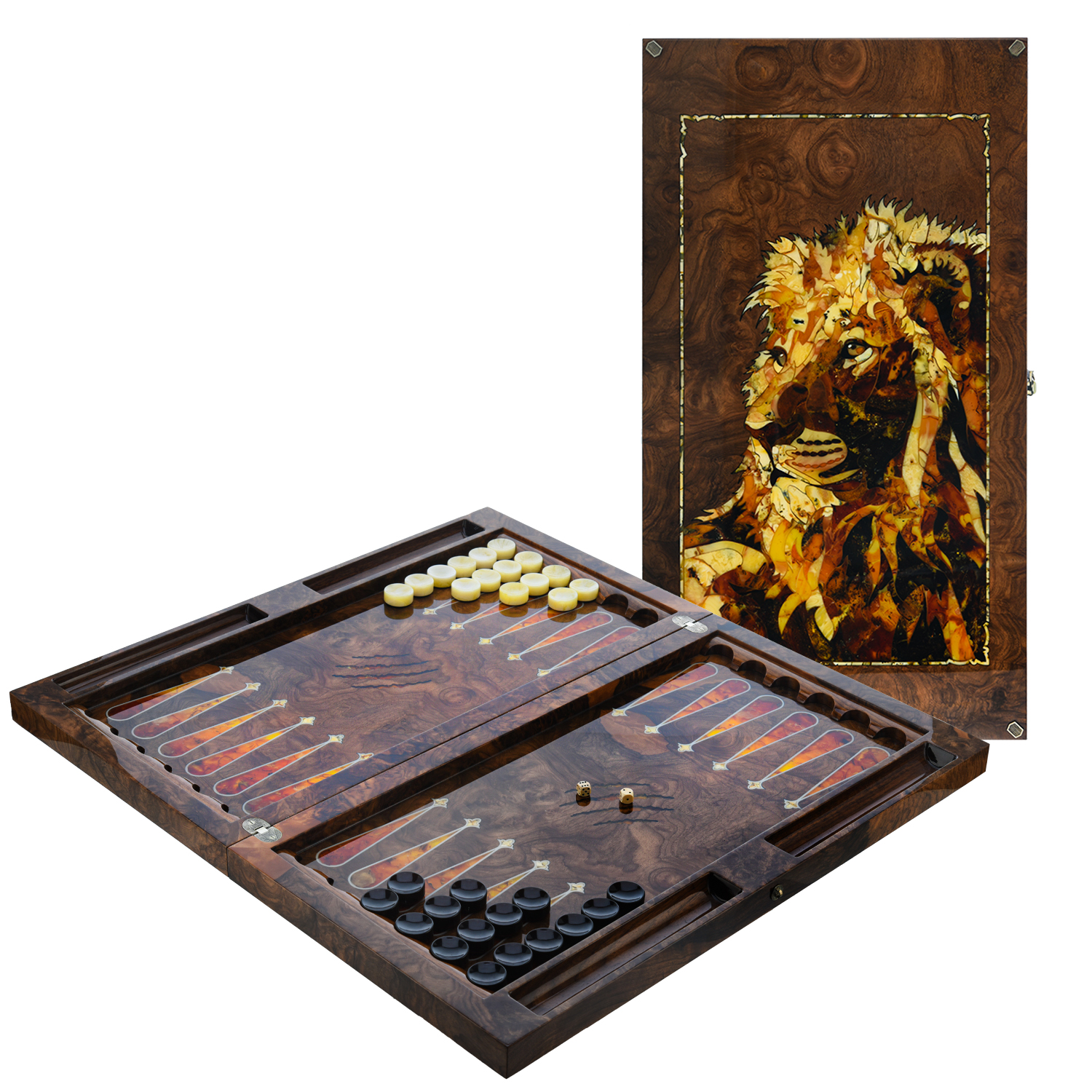 Нарды с янтарной инкрустацией "Лев".
