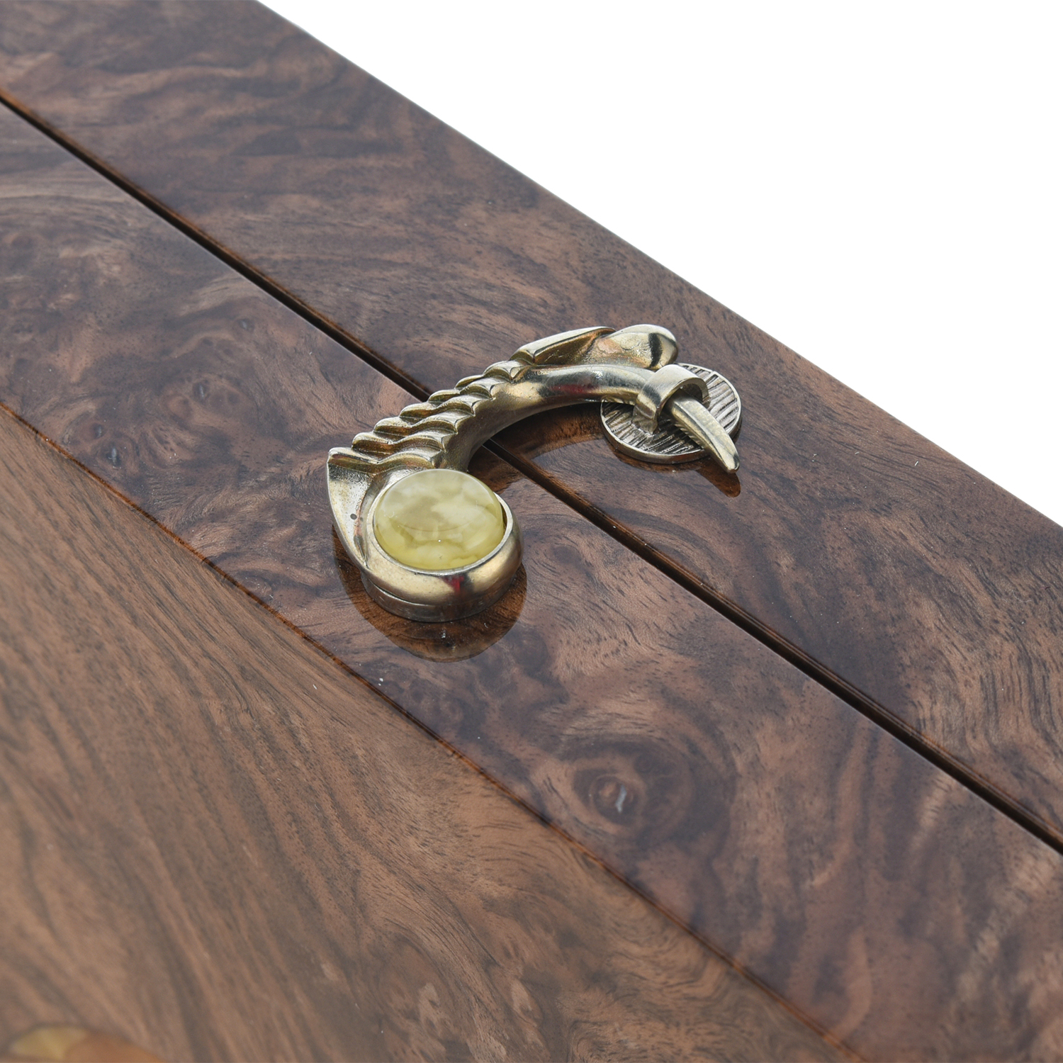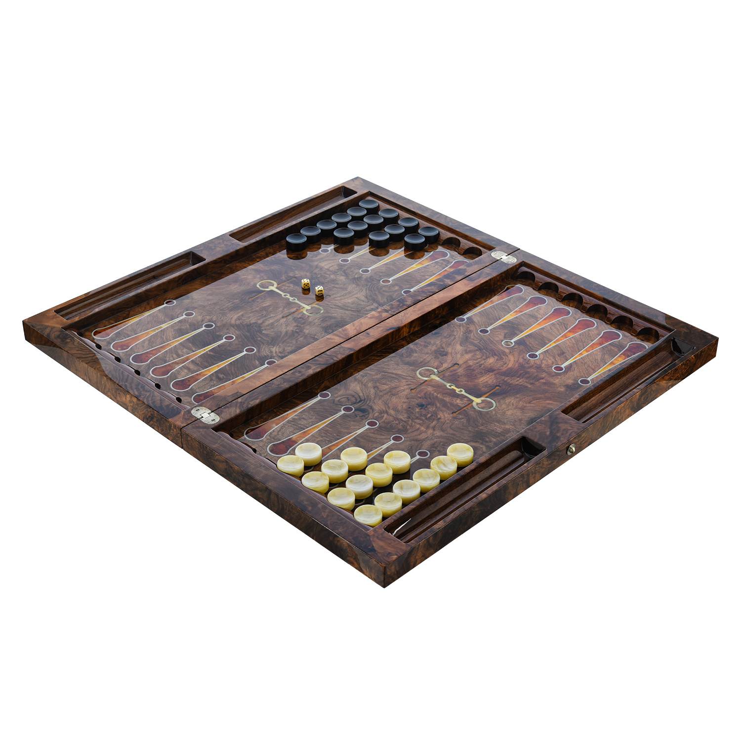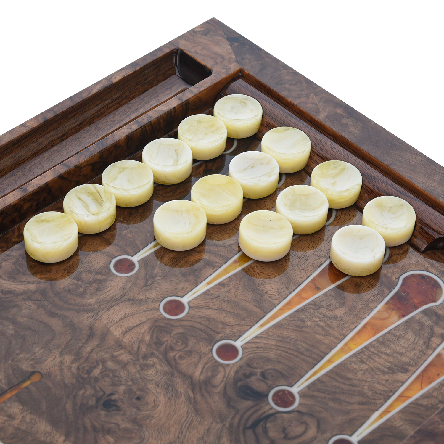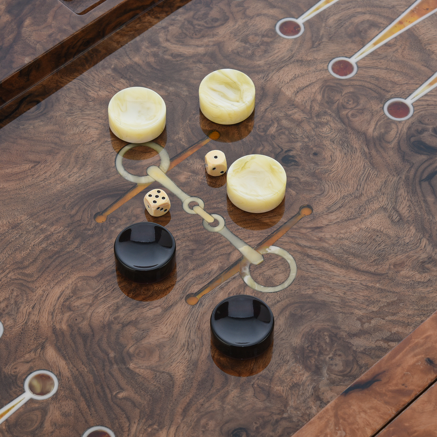 Нарды из мореного дуба с инкрустацией и фишками из янтаря "Конь"