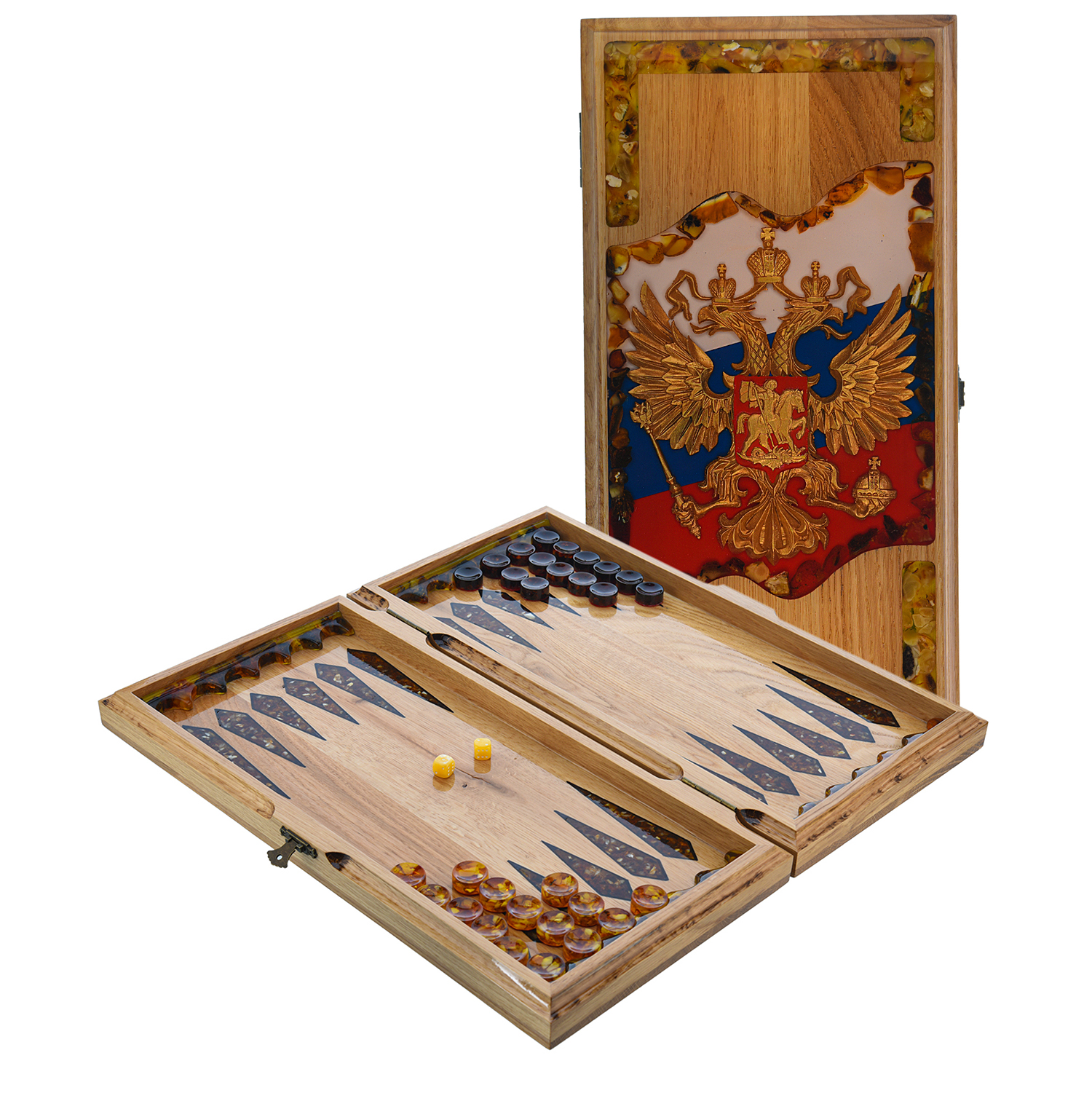 Нарды янтарные "Герб РФ" 46х23 см