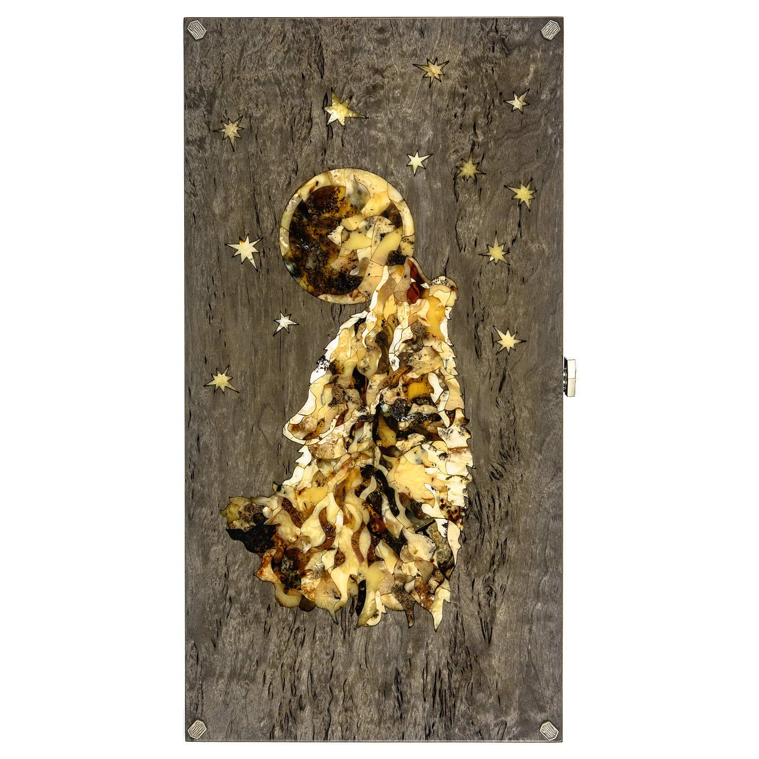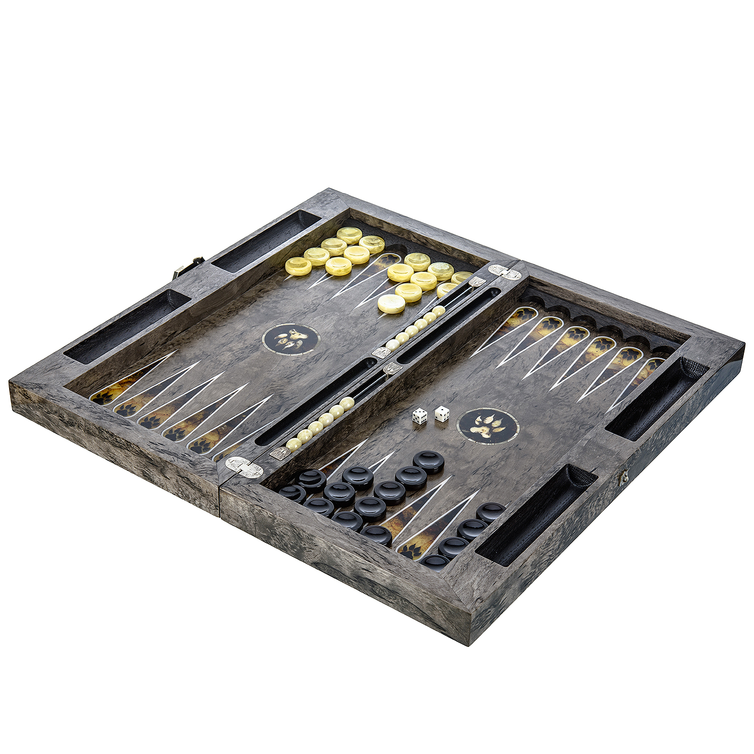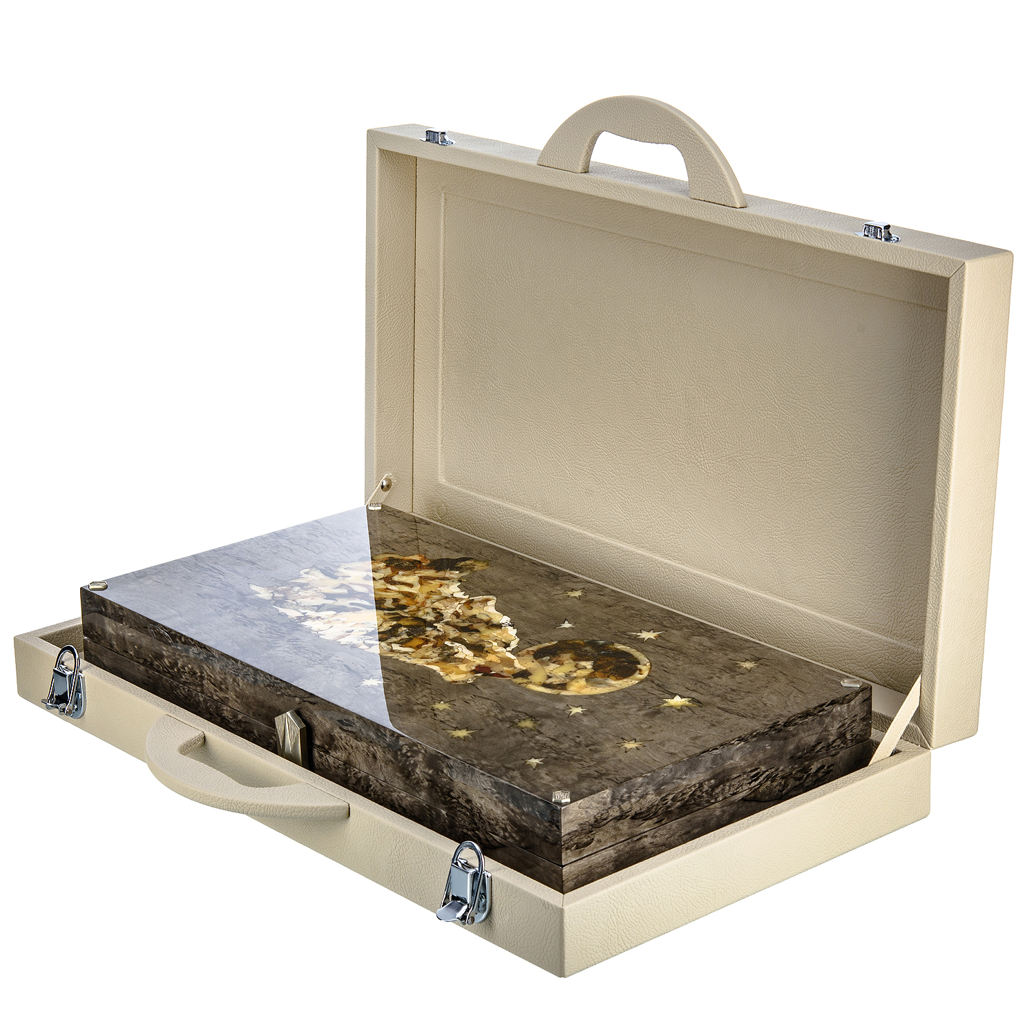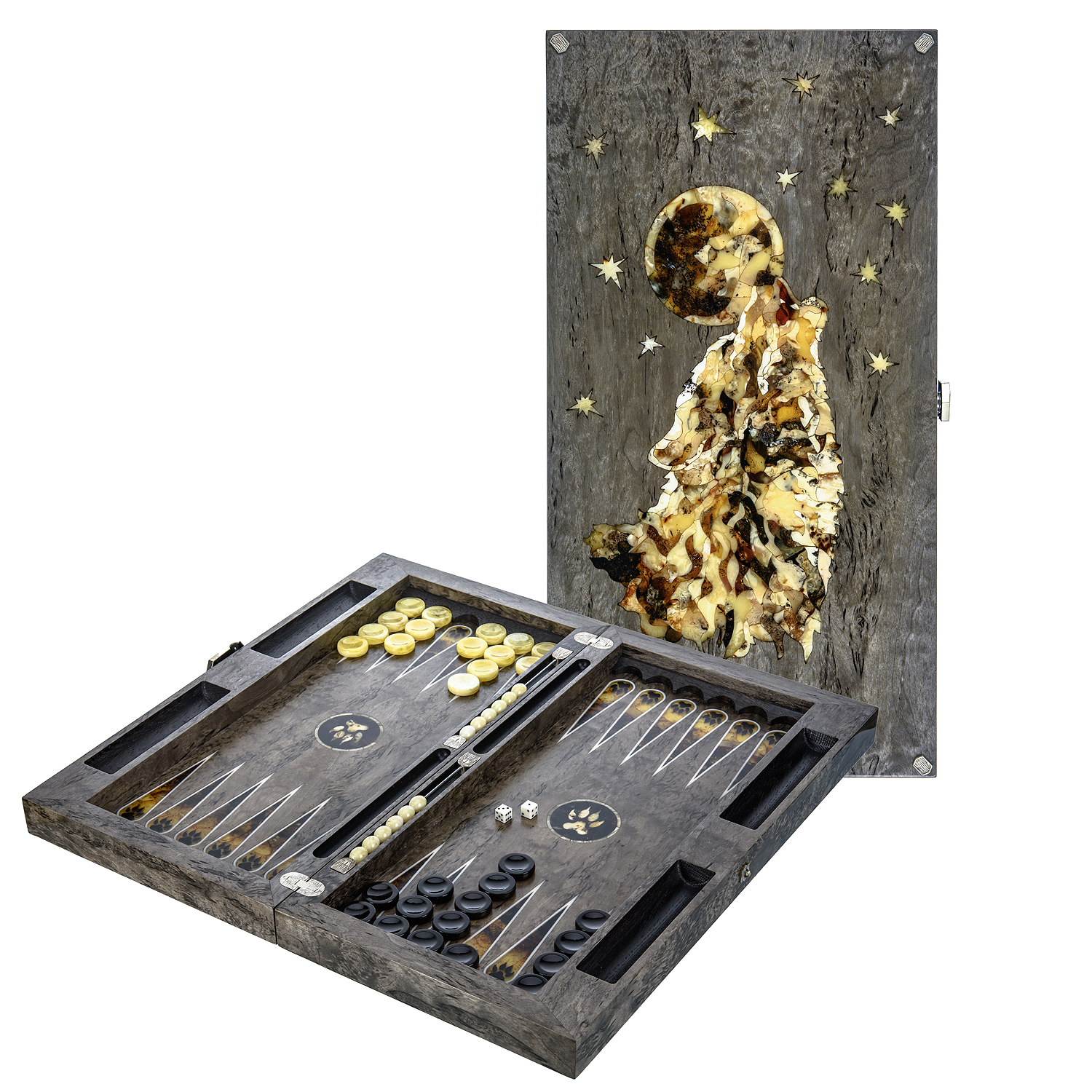 Нарды янтарные "Волк".Материалы: тонированная карельская береза, янтарь.