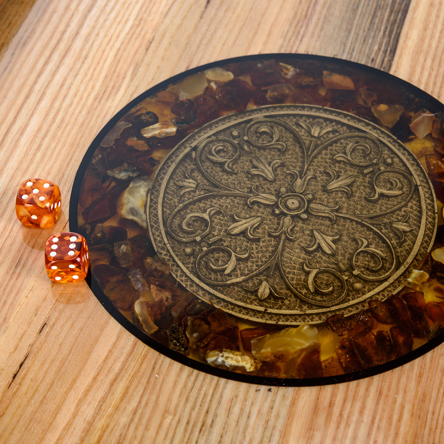 Материалы: дуб, янтарь.