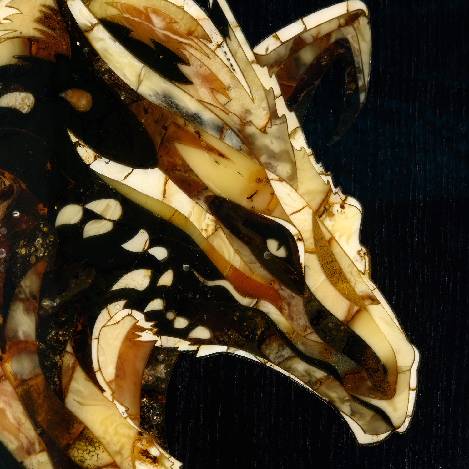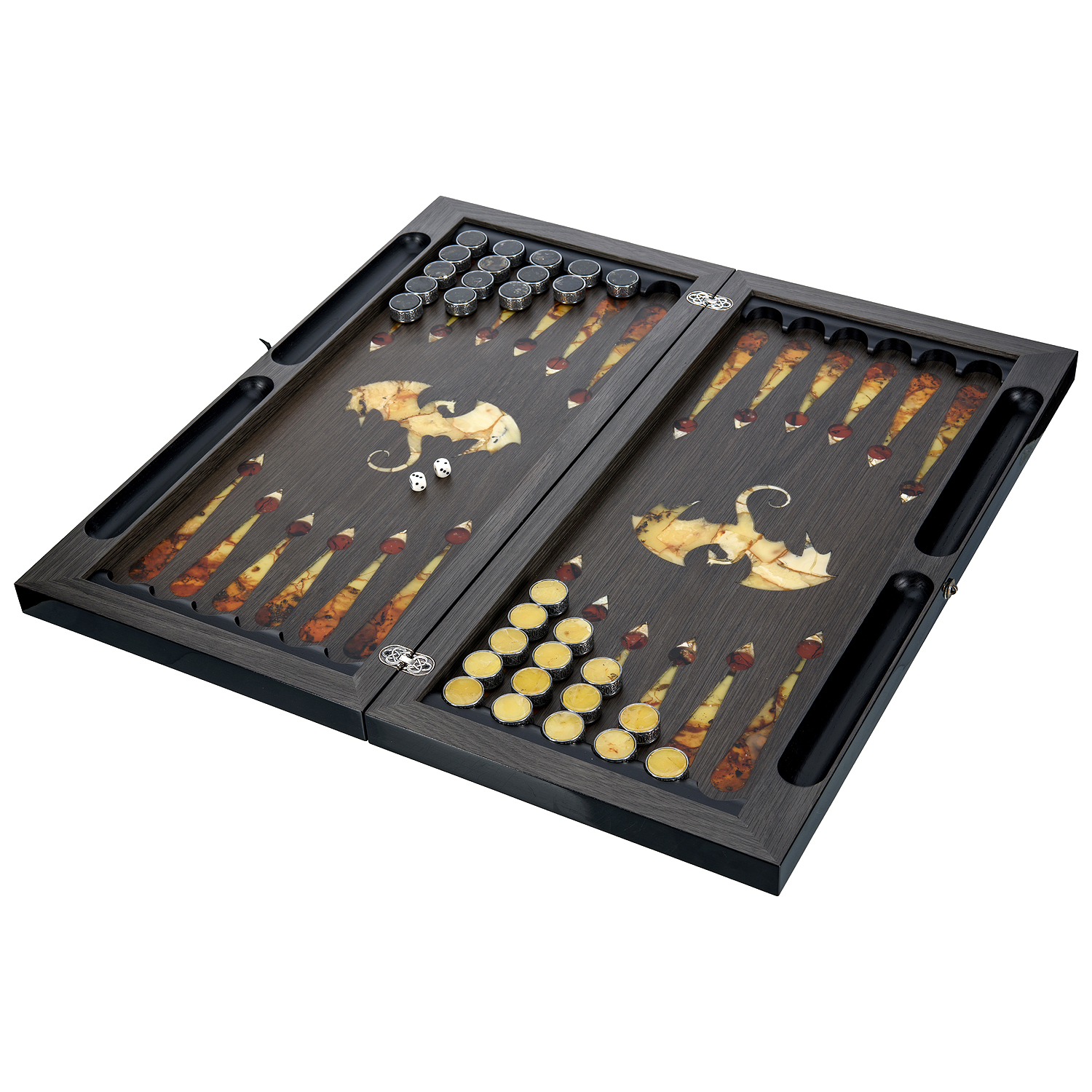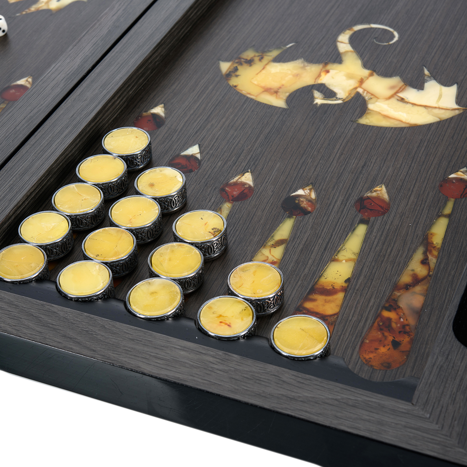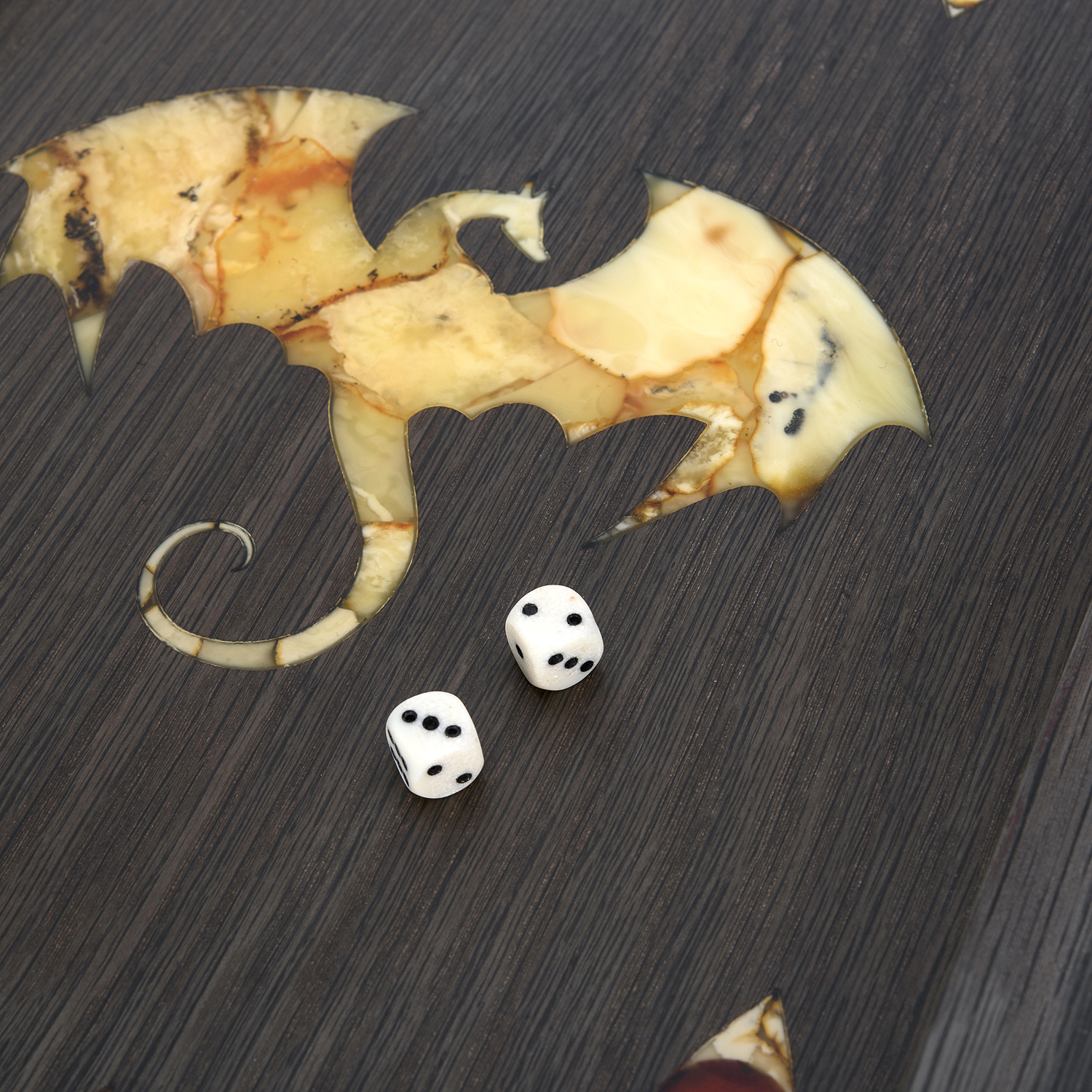 Деревянные нарды с янтарной инкрустацией "Дракон" 60х30 см