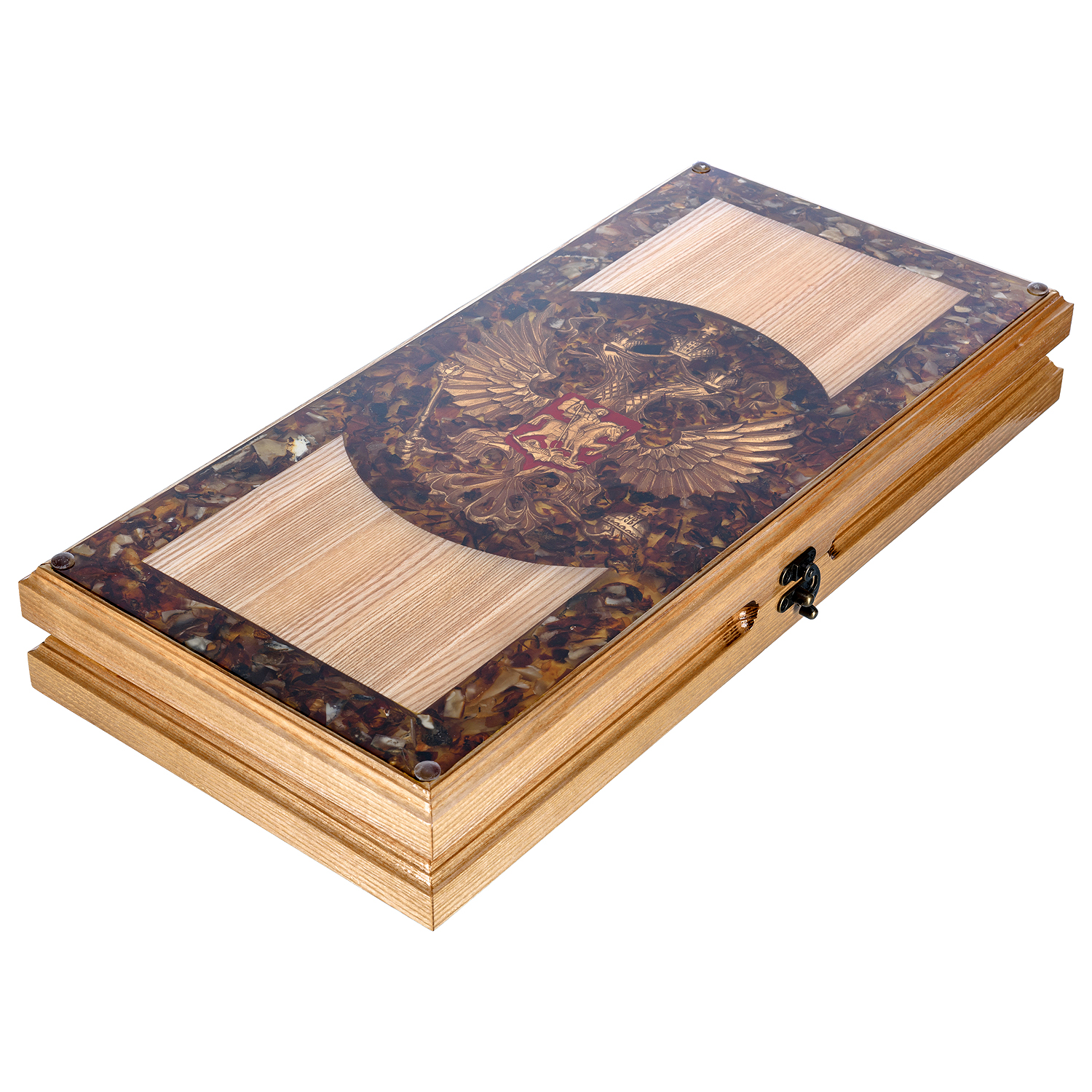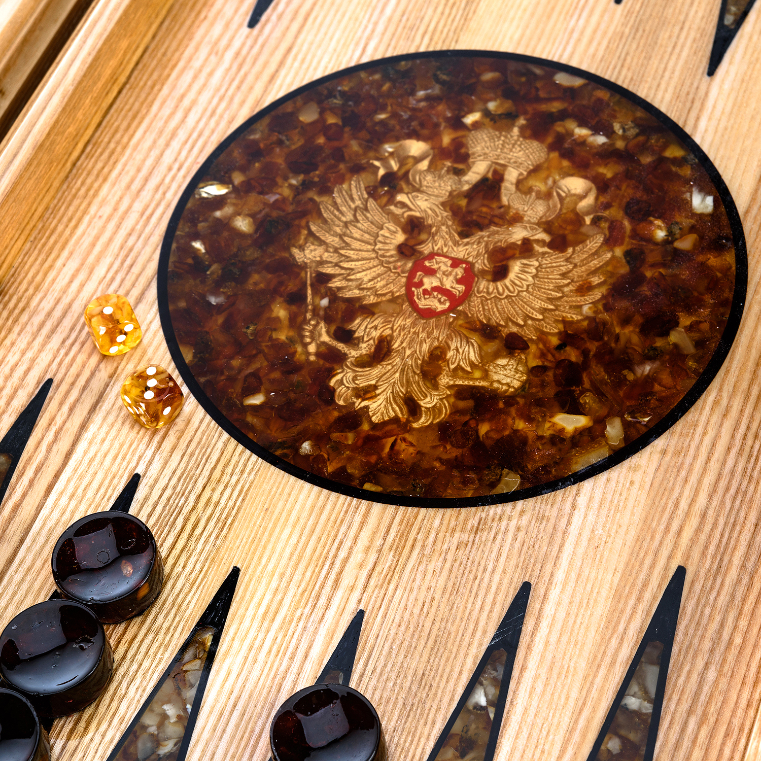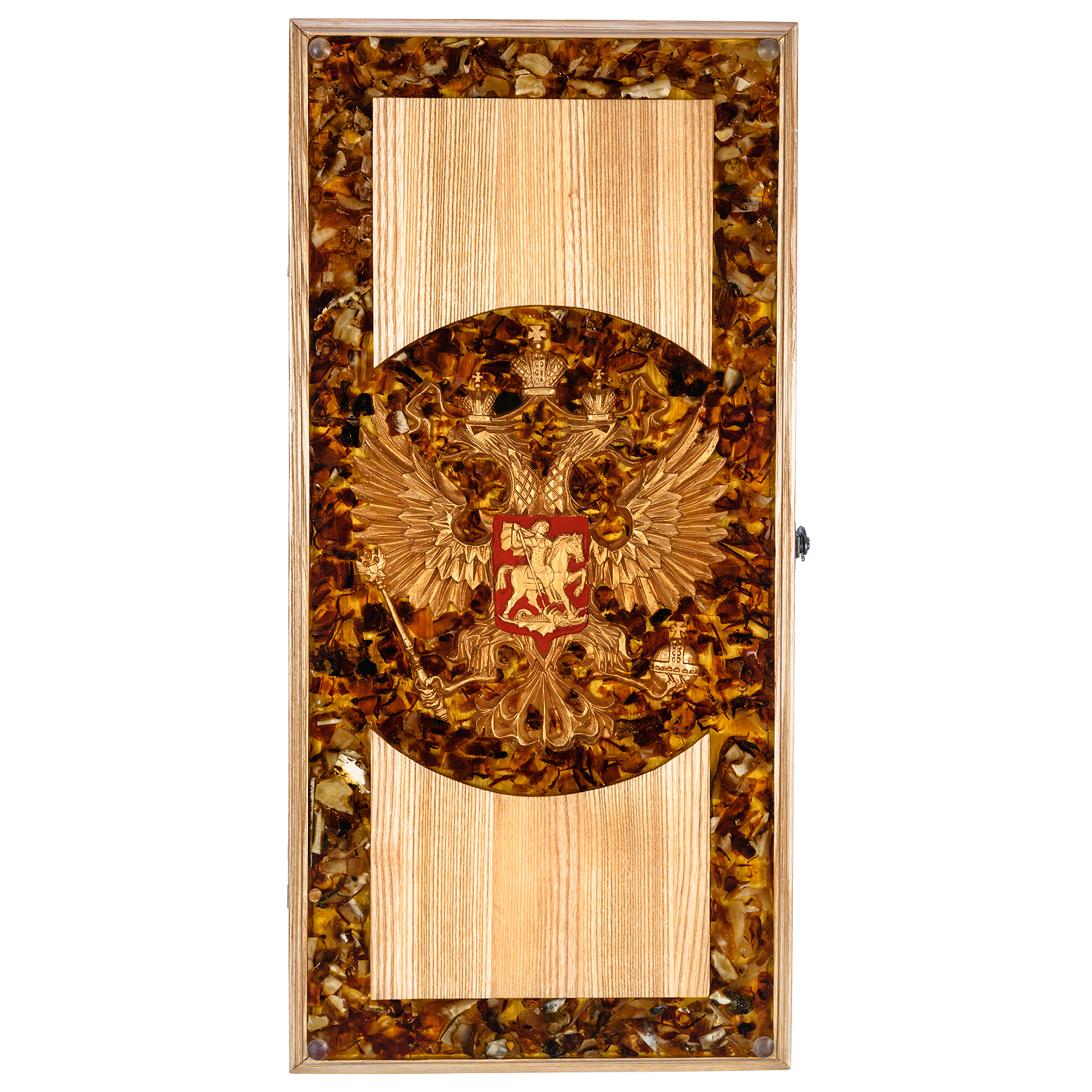 Нарды янтарные "Герб РФ".Материалы: янтарь, ясень.