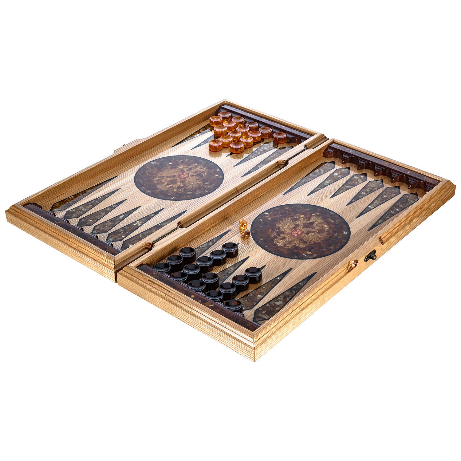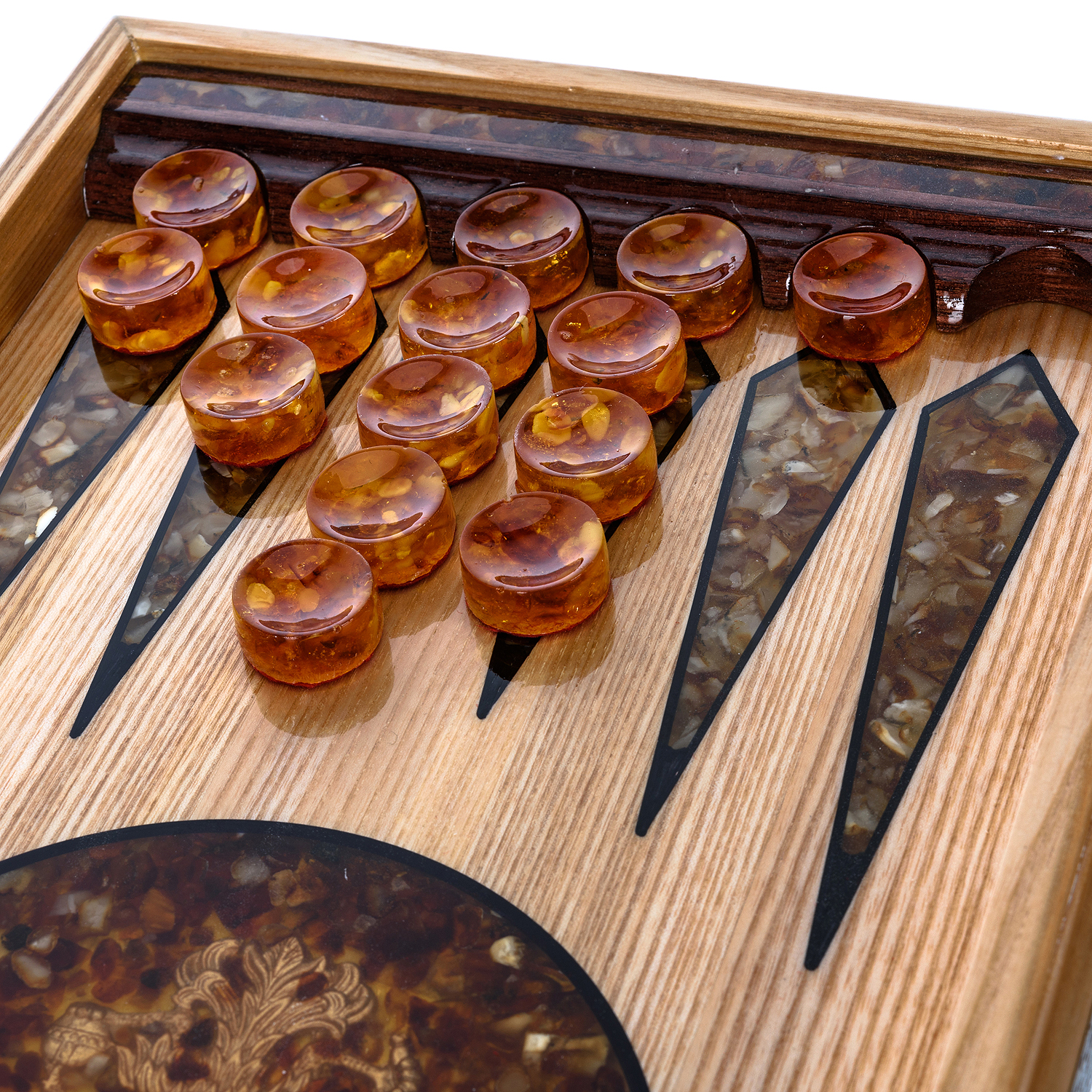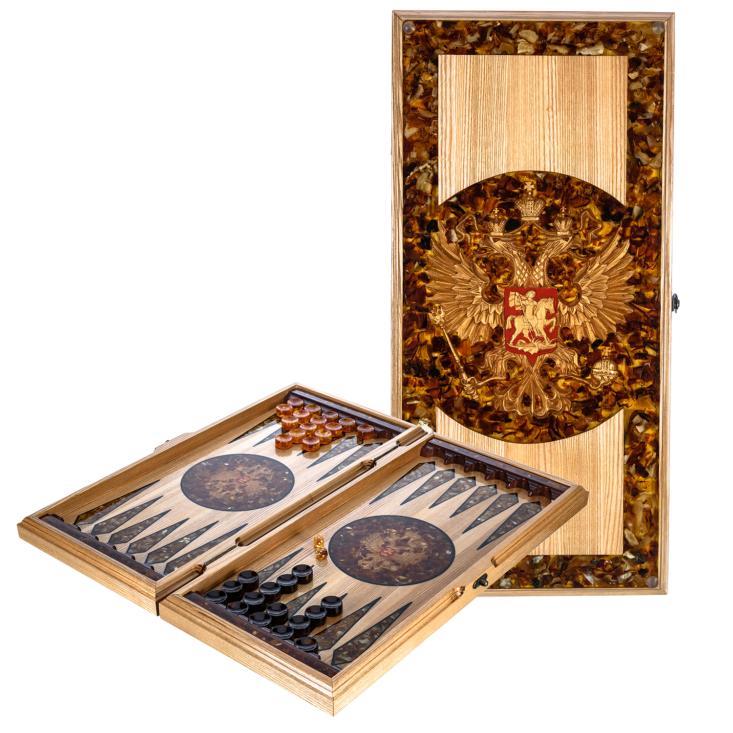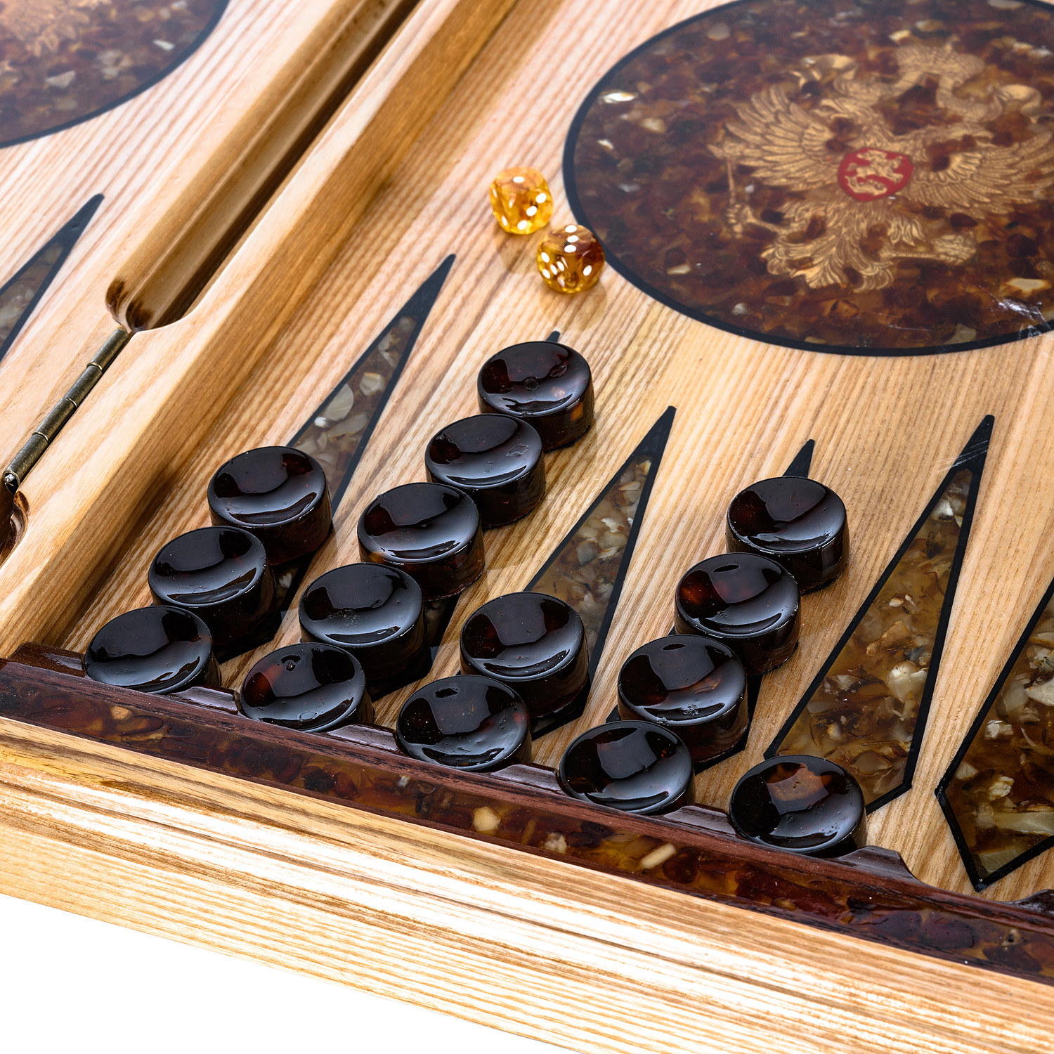 Нарды янтарные "Герб РФ".Материалы: янтарь, ясень.
