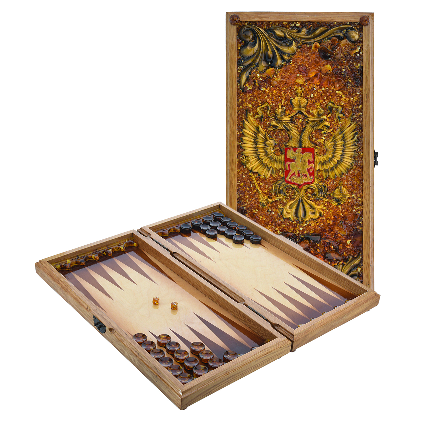 Нарды янтарные "Герб РФ. Росгвардия" 46х23 см
