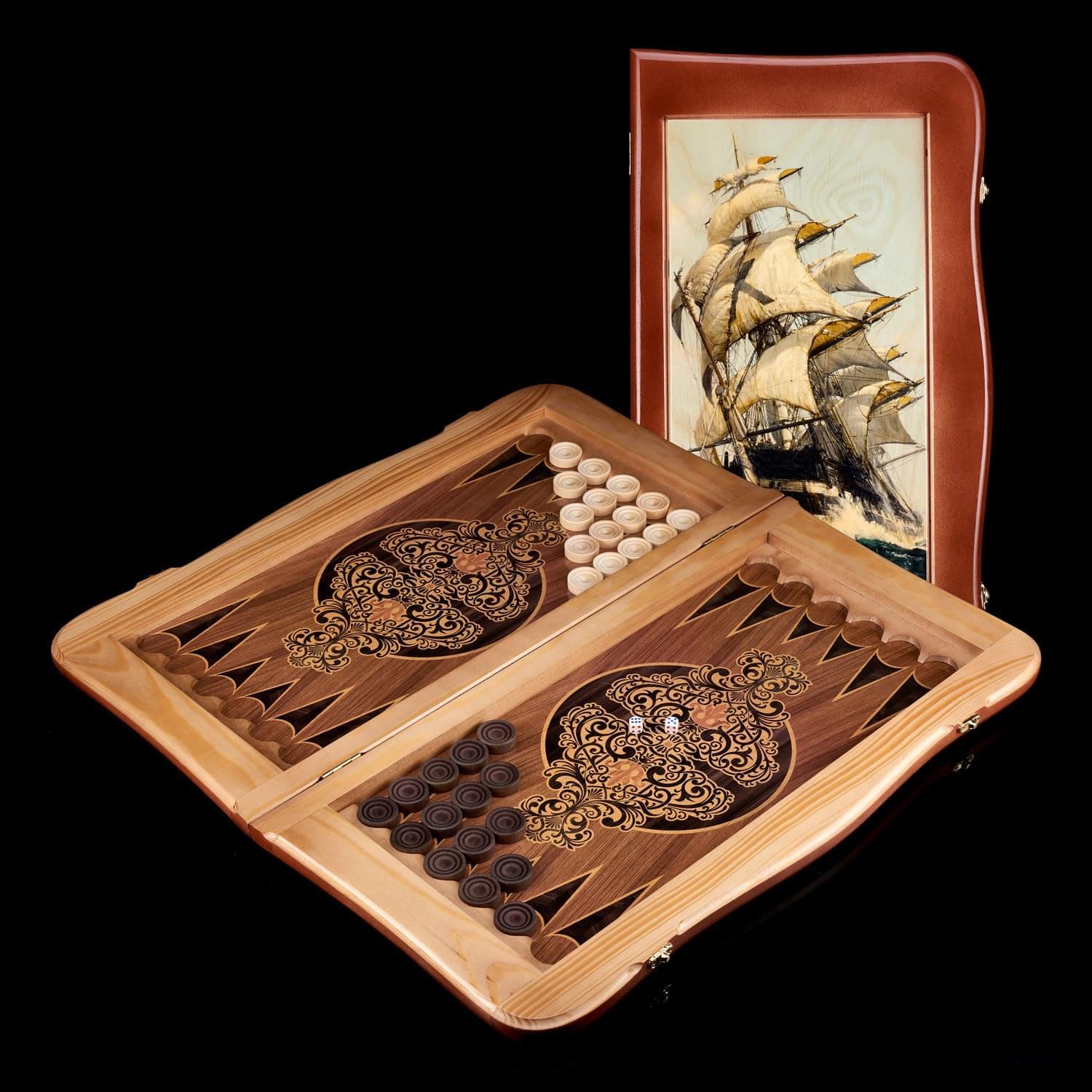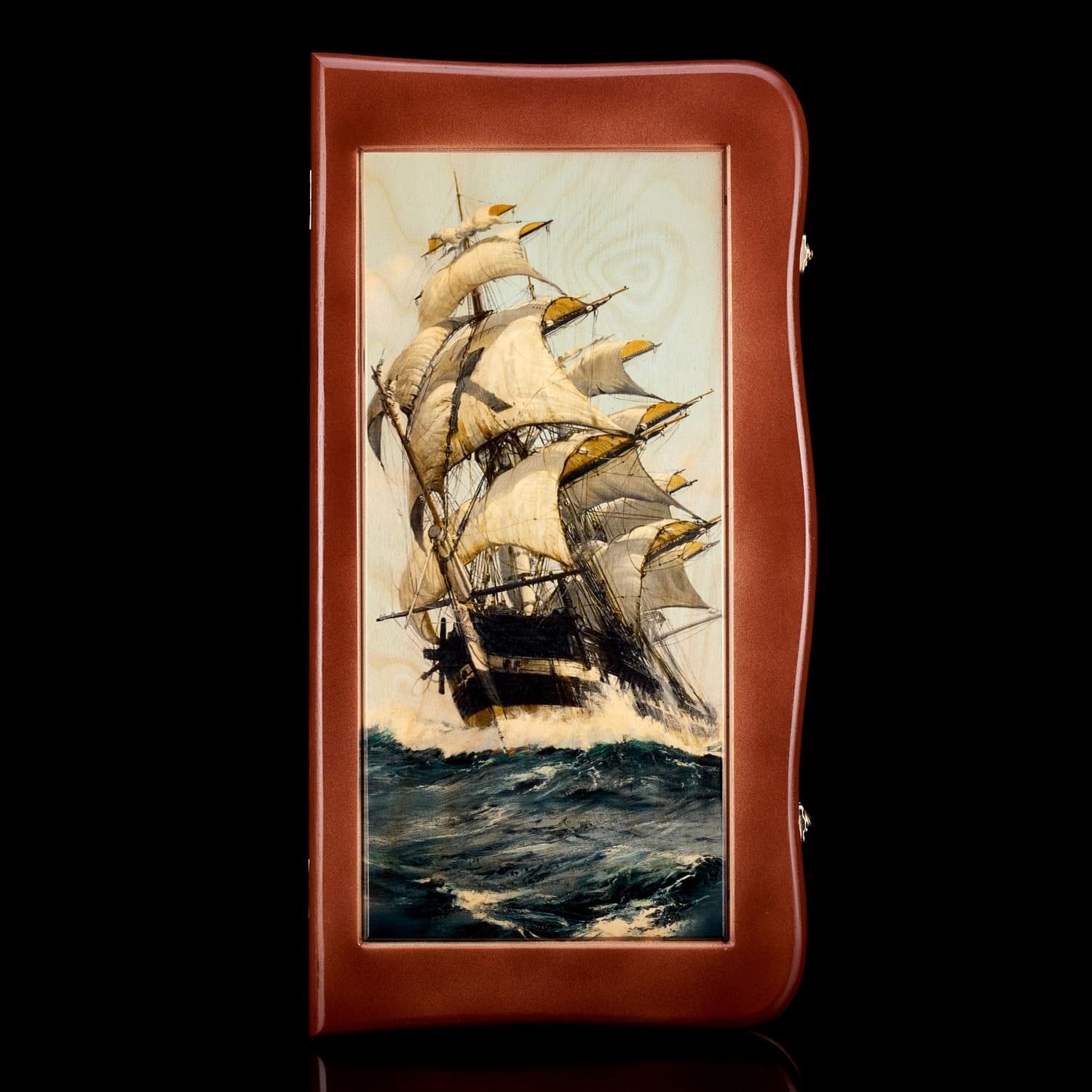 0053750 -55*27*7см  НАРДЫ резные с рисунком МОРСКИЕ  rez-075 .
