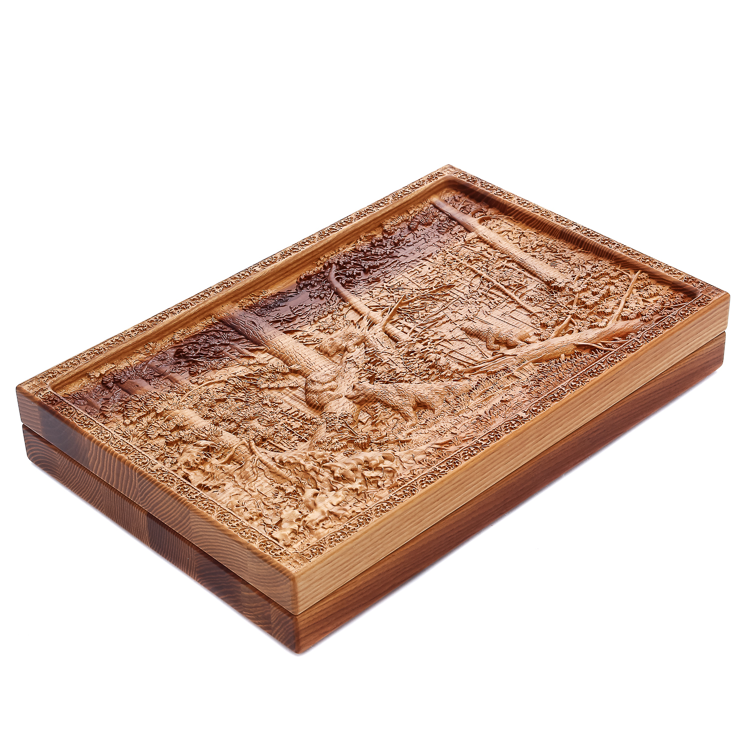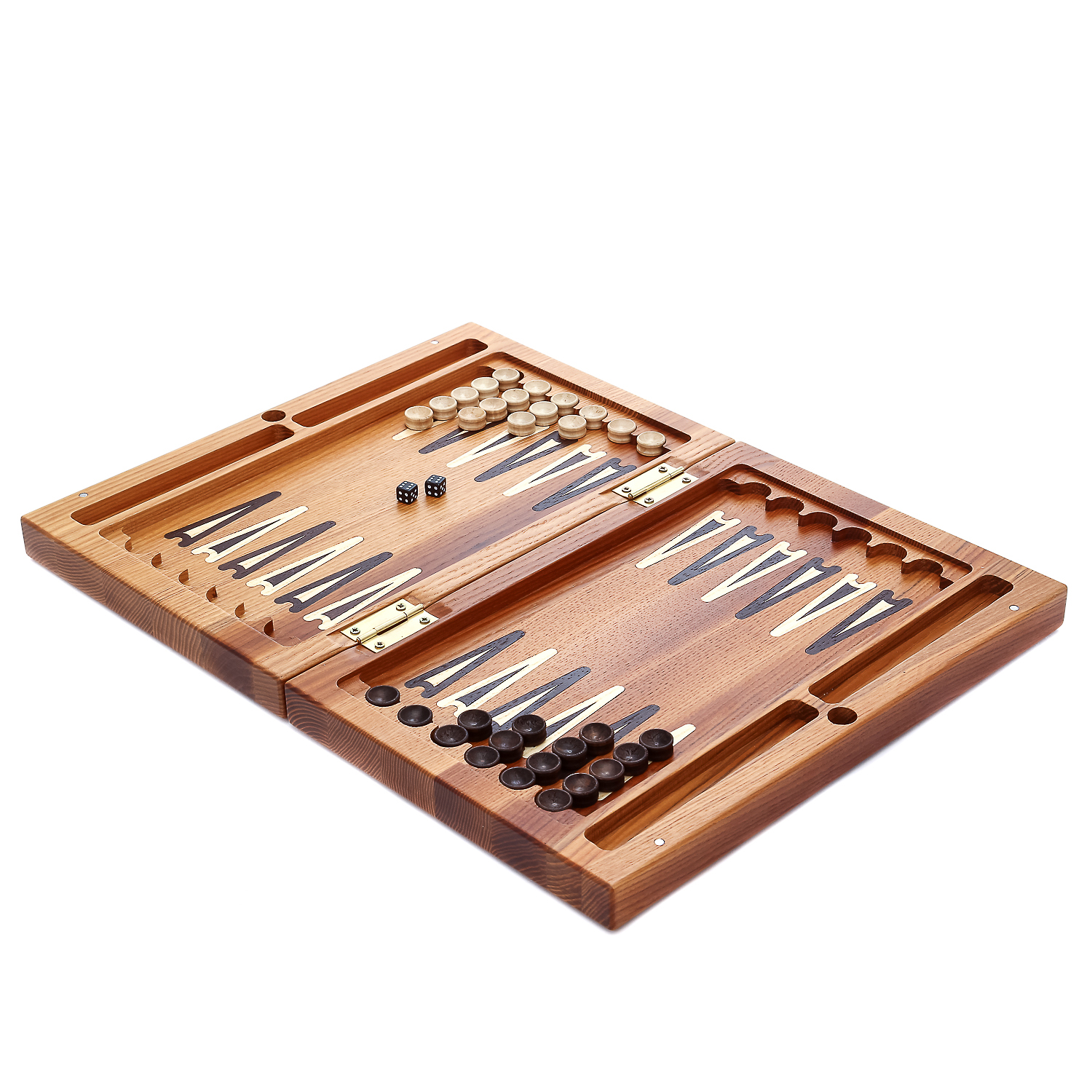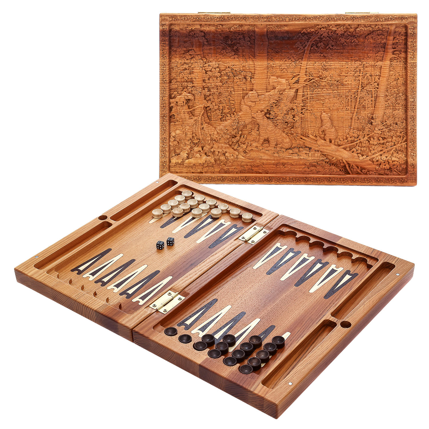 Нарды-шашки деревянные "Утро в сосновом лесу".Материал: массив мореного ясеня.