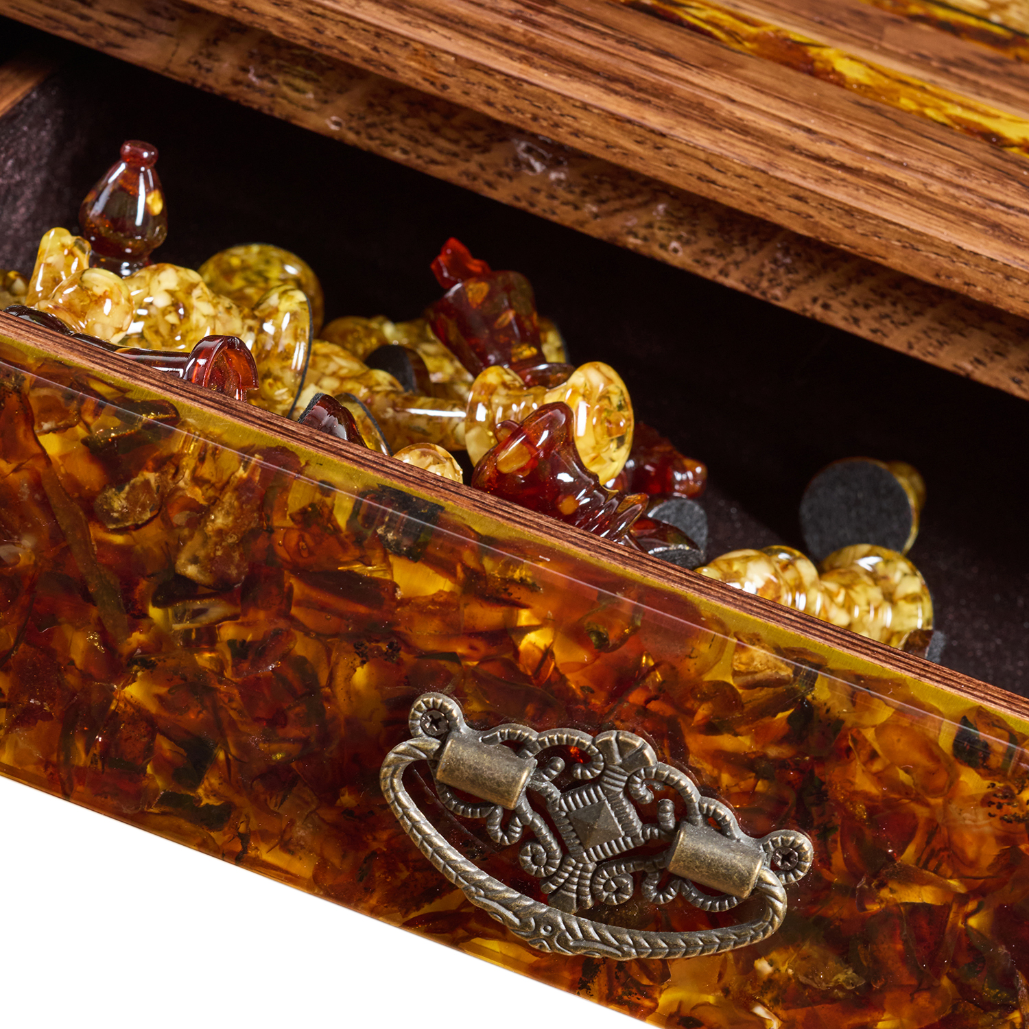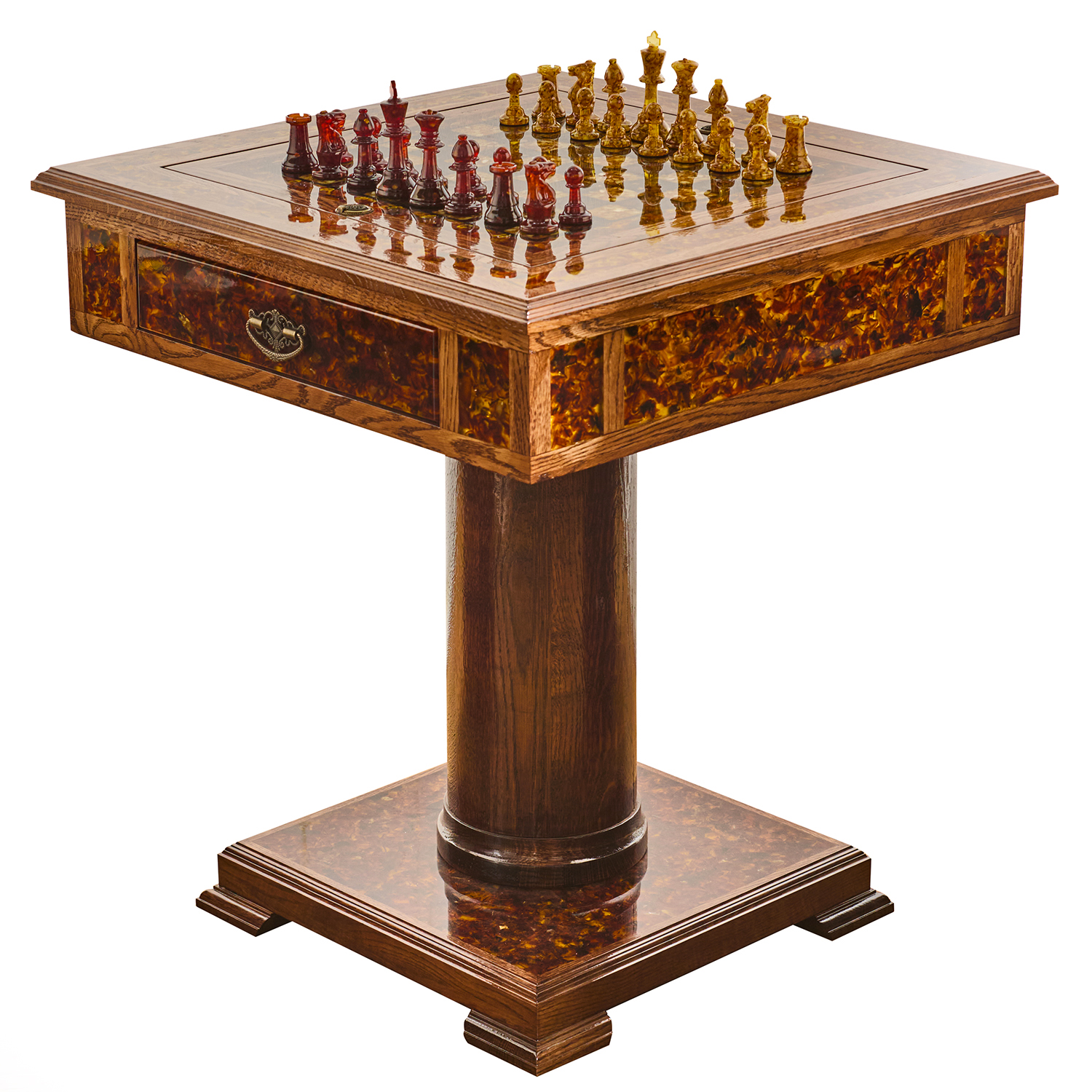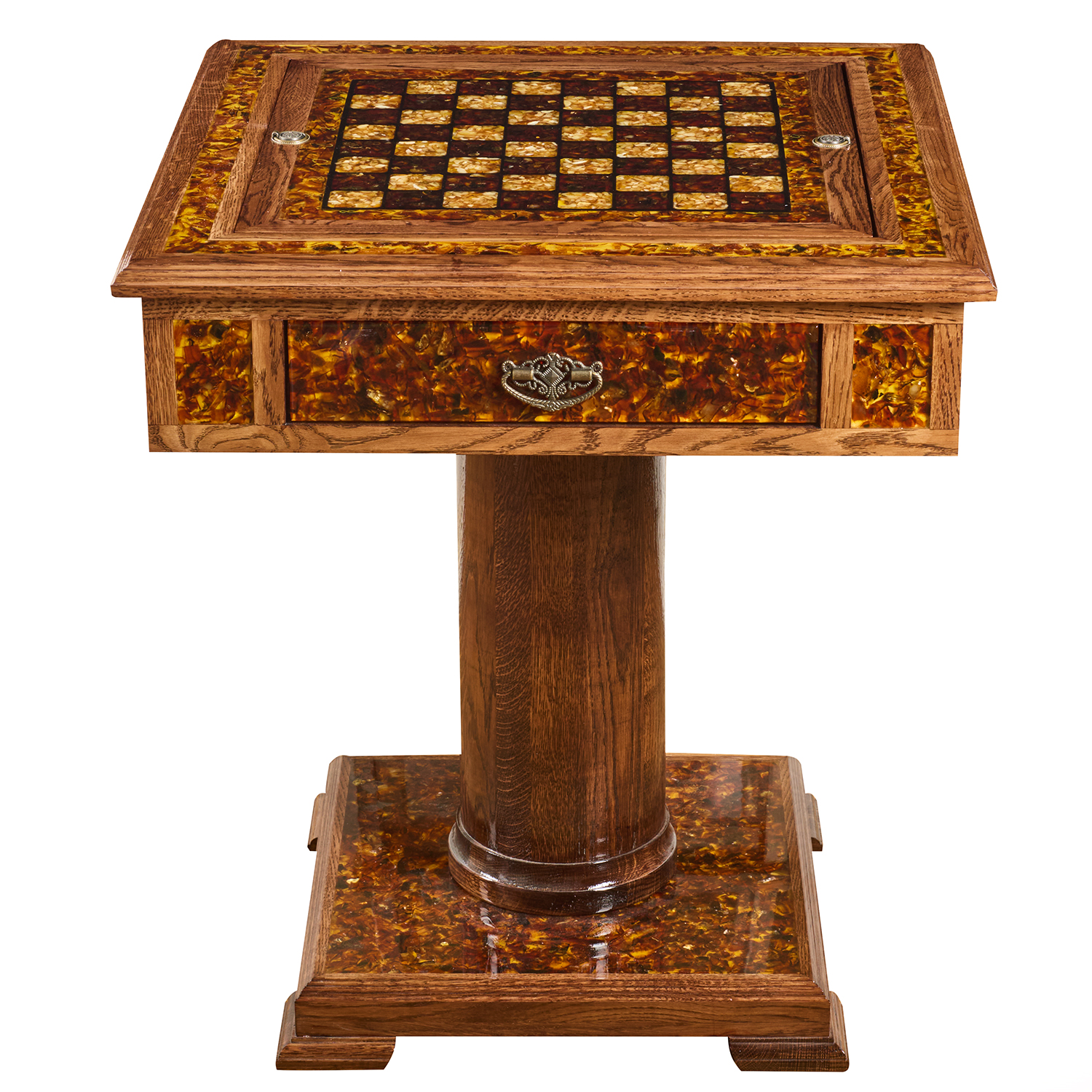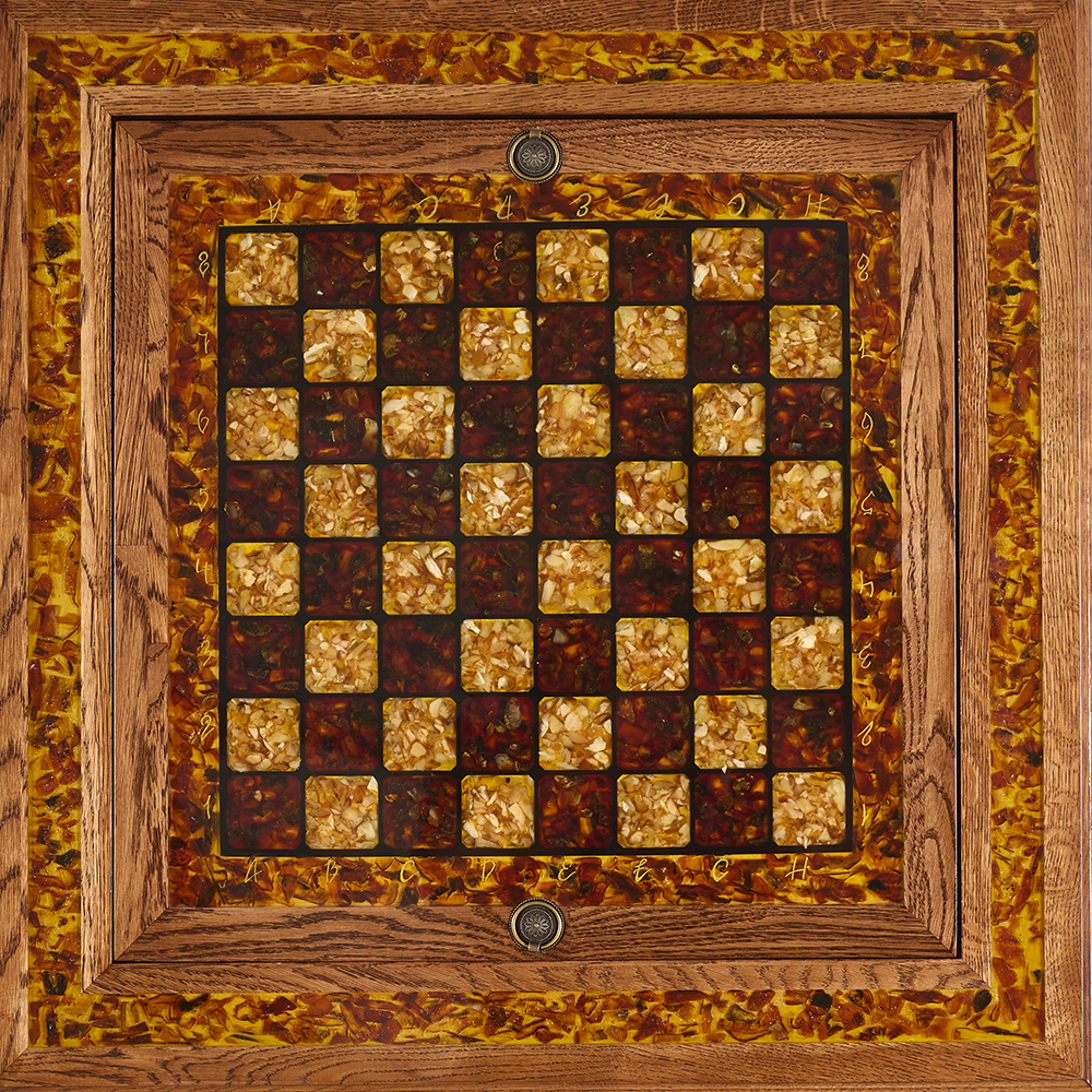 Янтарный стол с шахматами и нардами.Материалы: дерево, янтарь, полиэфирная смола.