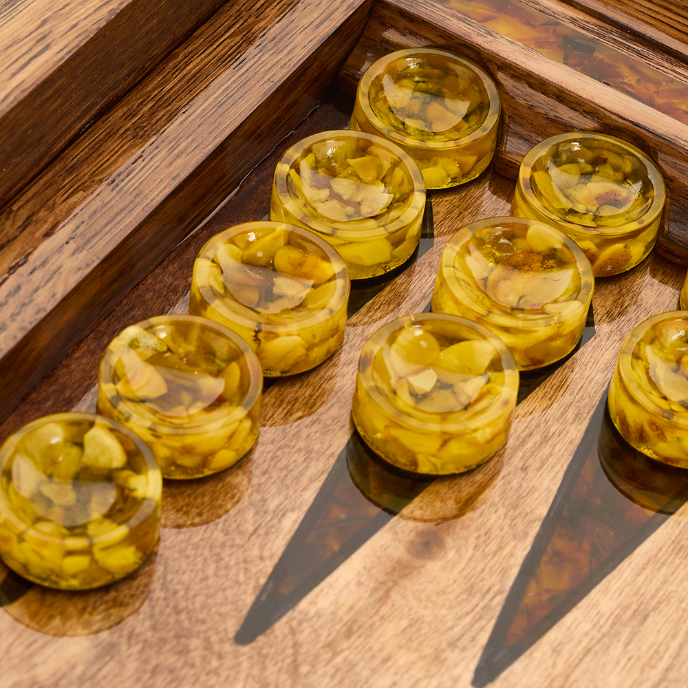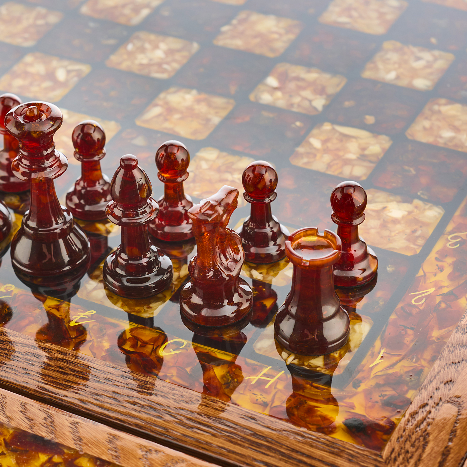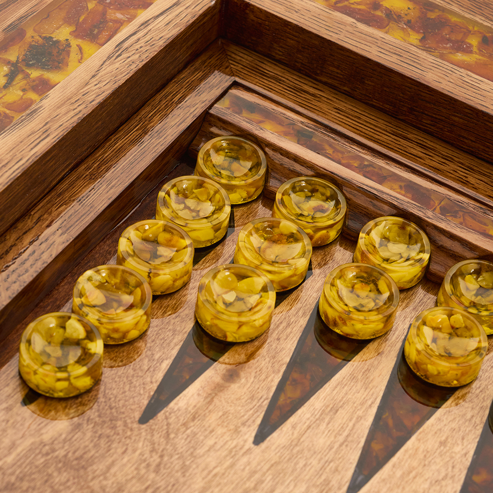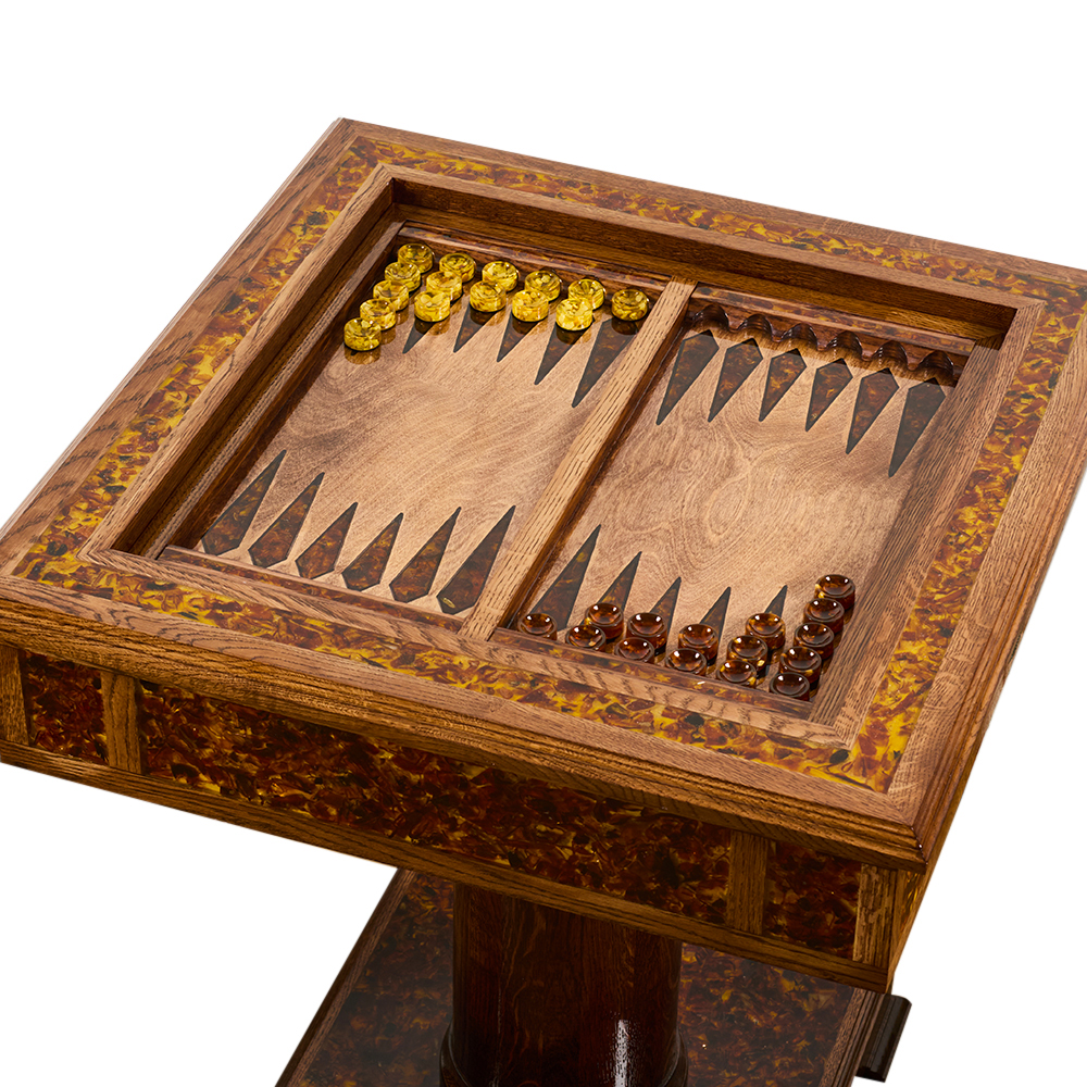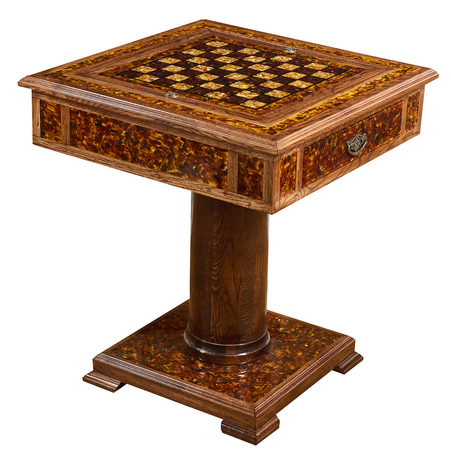 Янтарный стол с шахматами и нардами.Материалы: дерево, янтарь, полиэфирная смола.