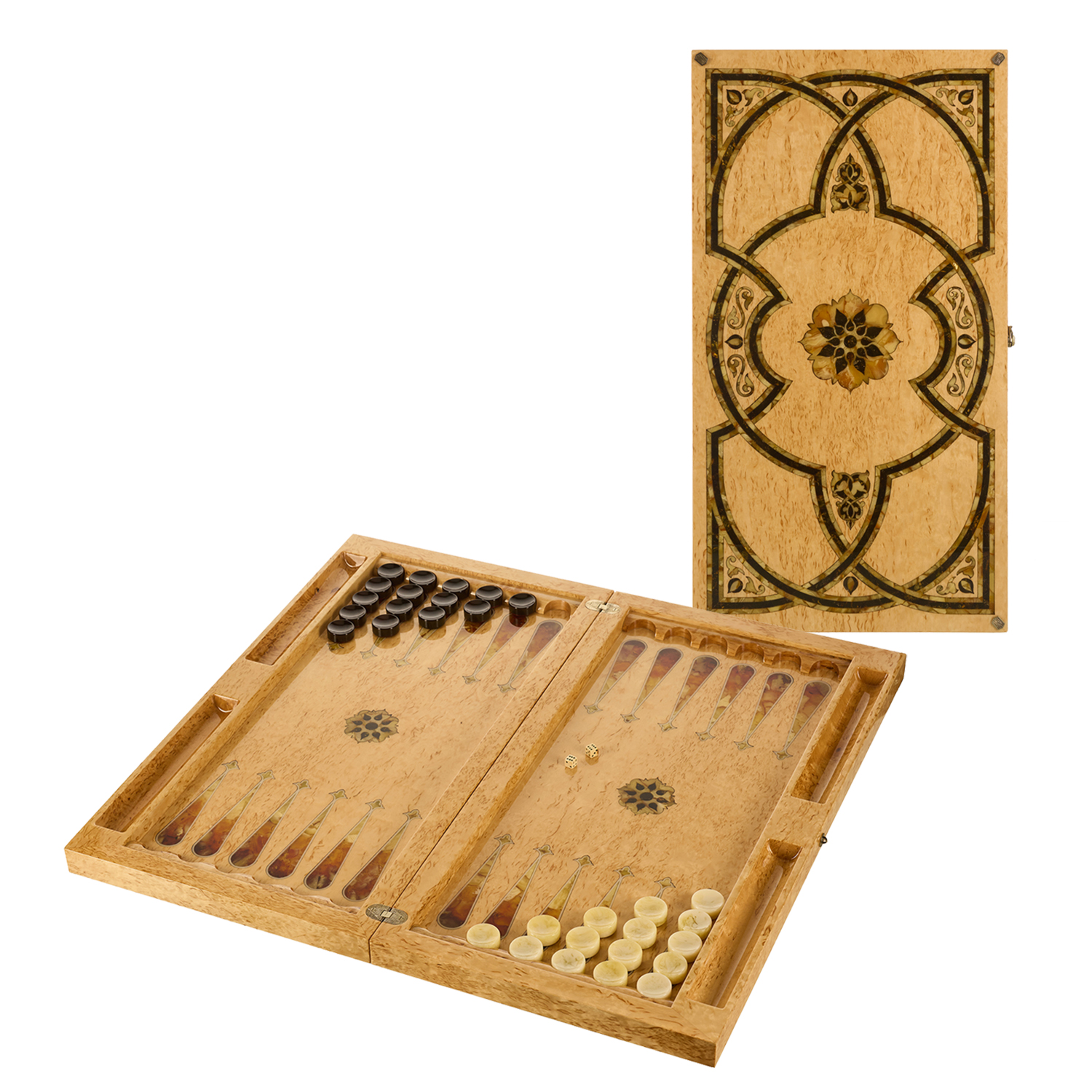 Нарды янтарные "Арабские ночи".Материалы: карельская береза, янтарь.