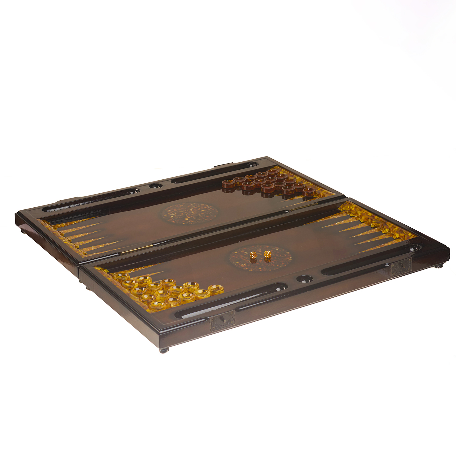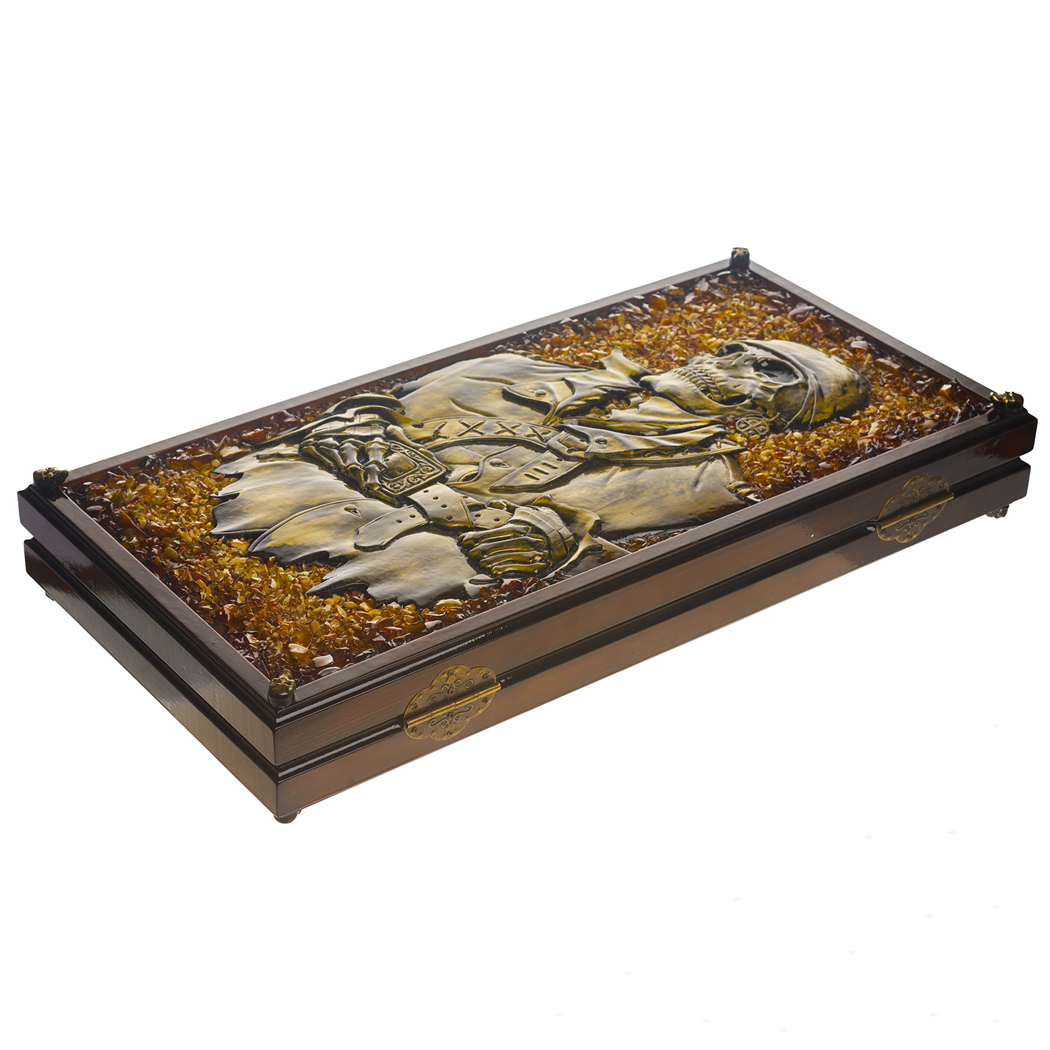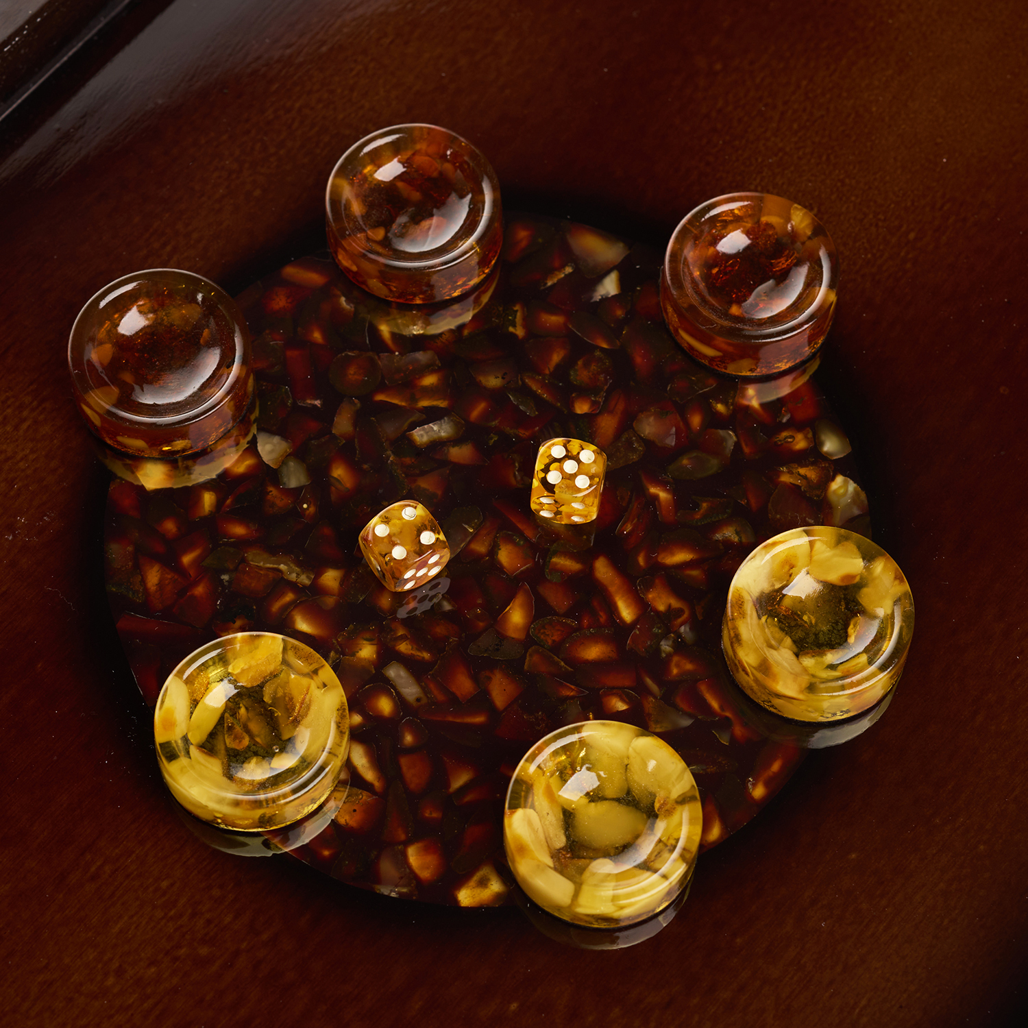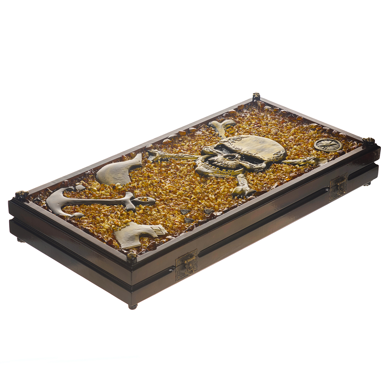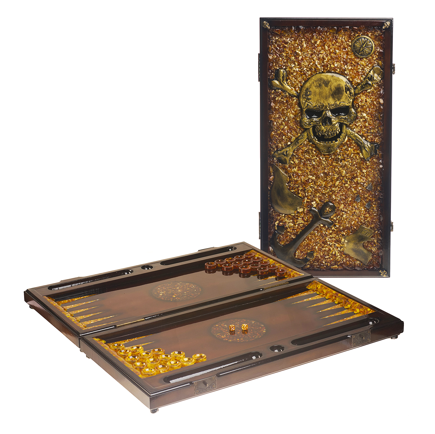 Нарды янтарные "Пираты".Материалы: дуб, янтарь.