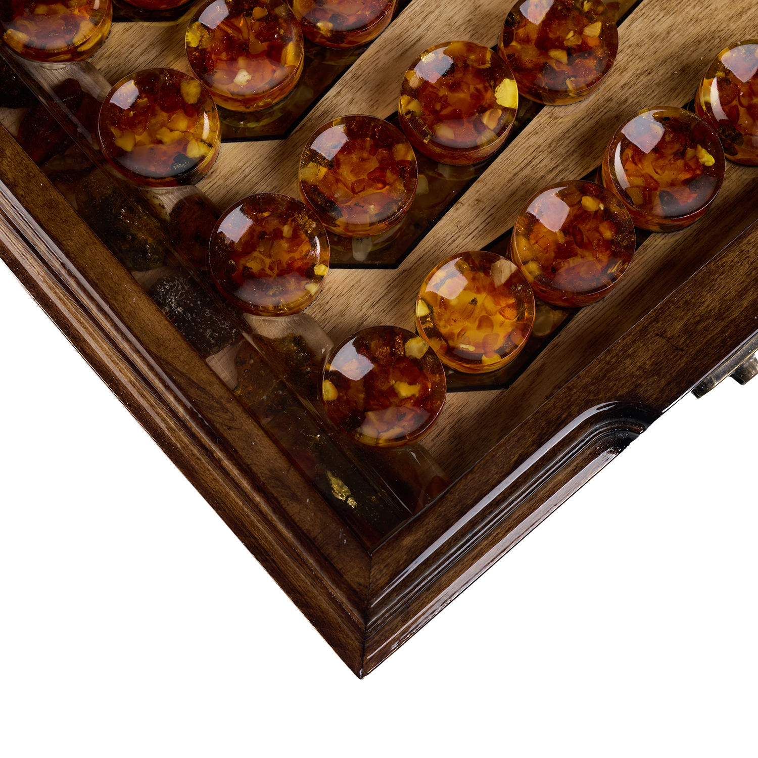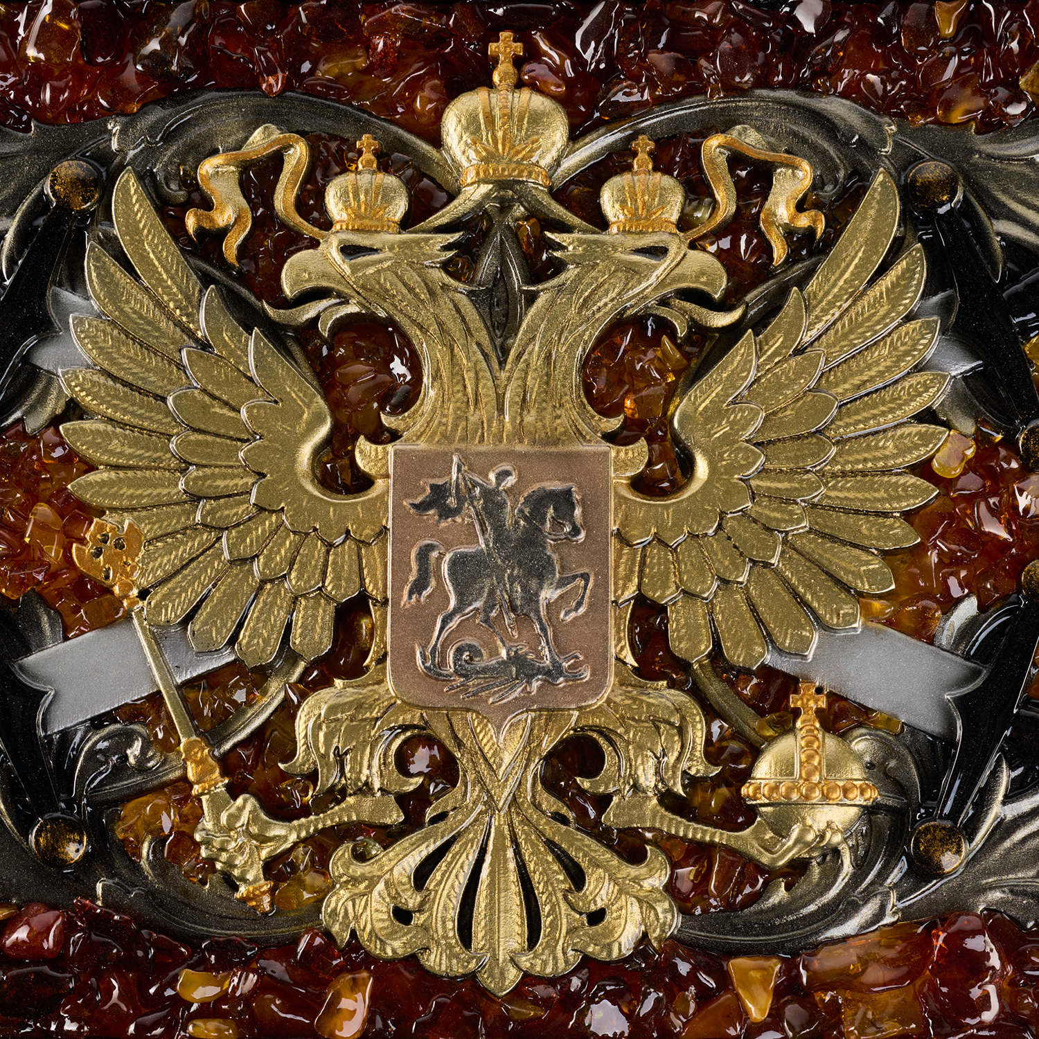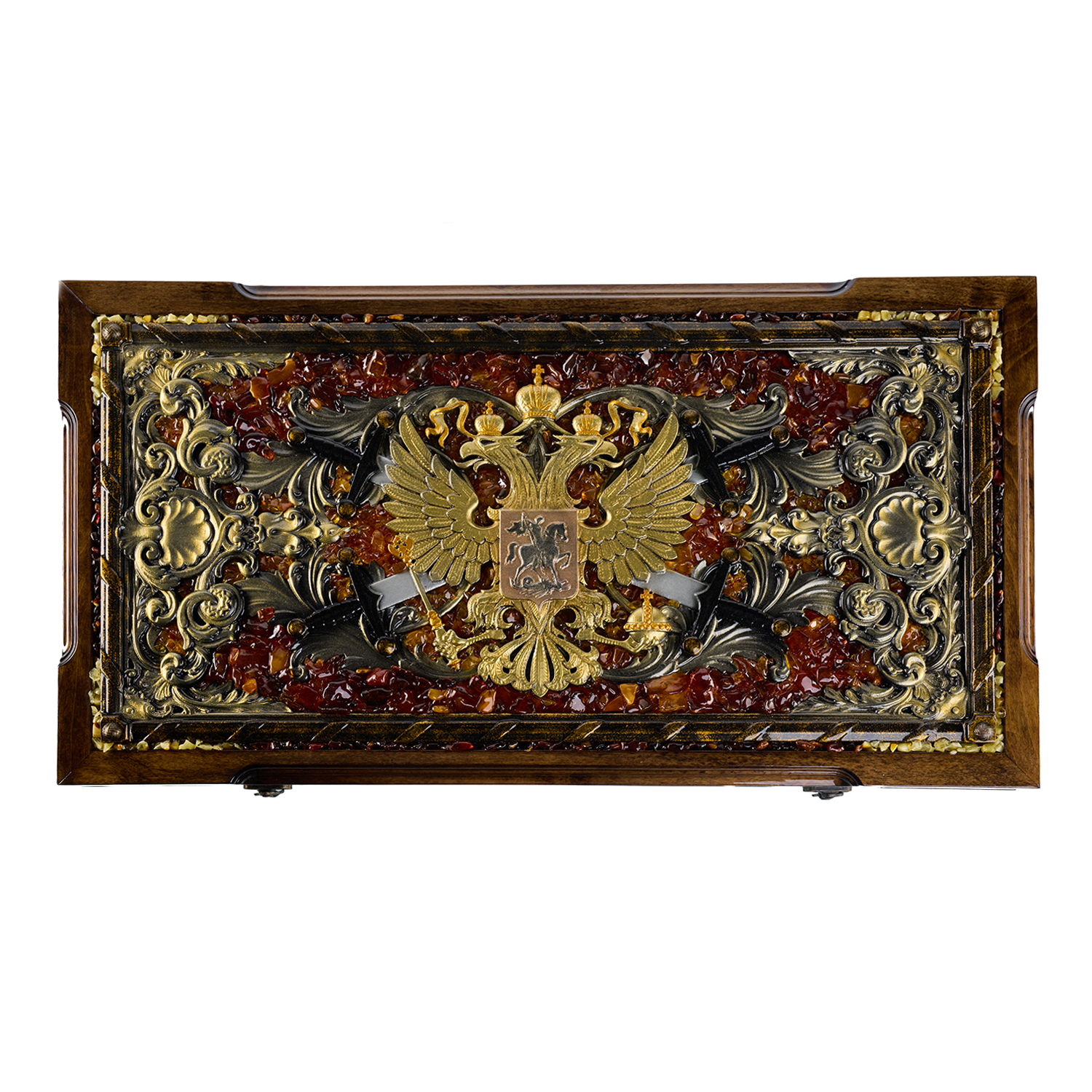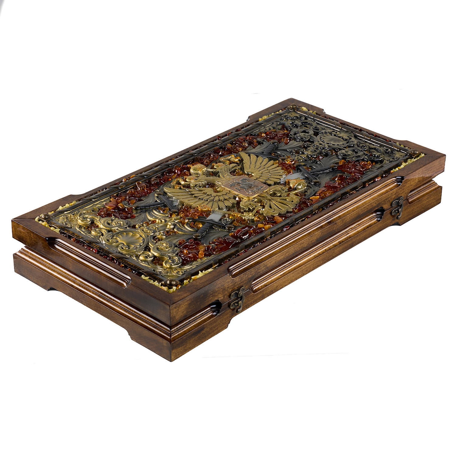 Нарды янтарные "Герб РФ".Материалы: дерево, янтарь.