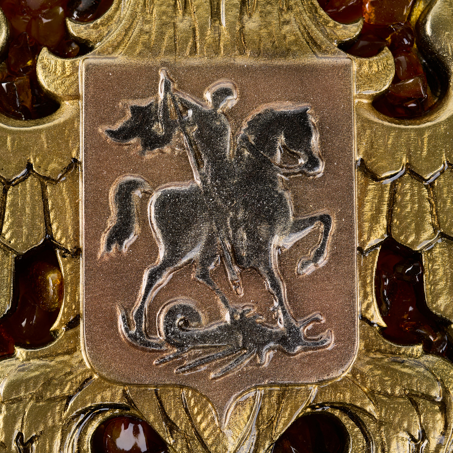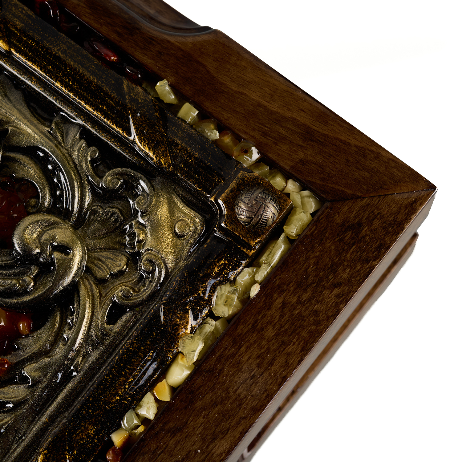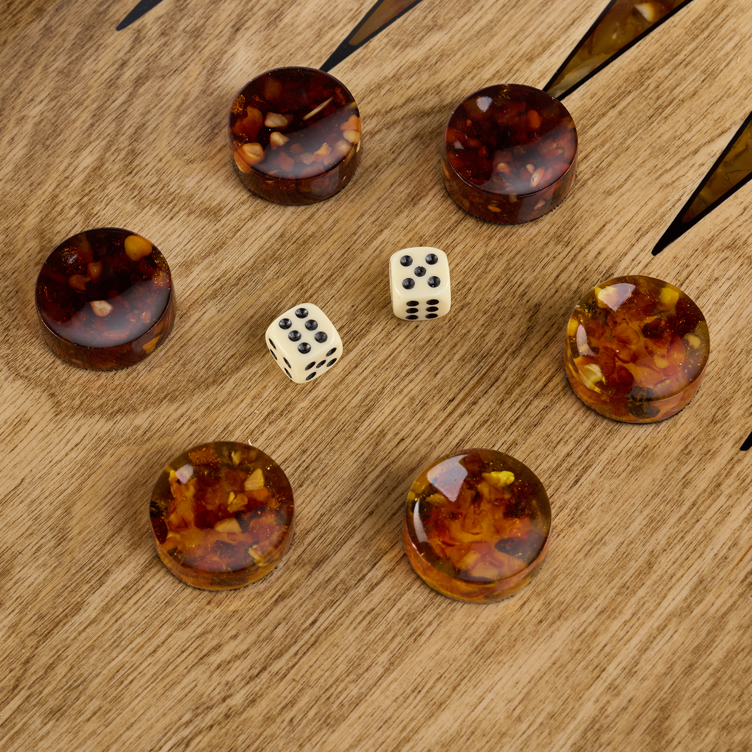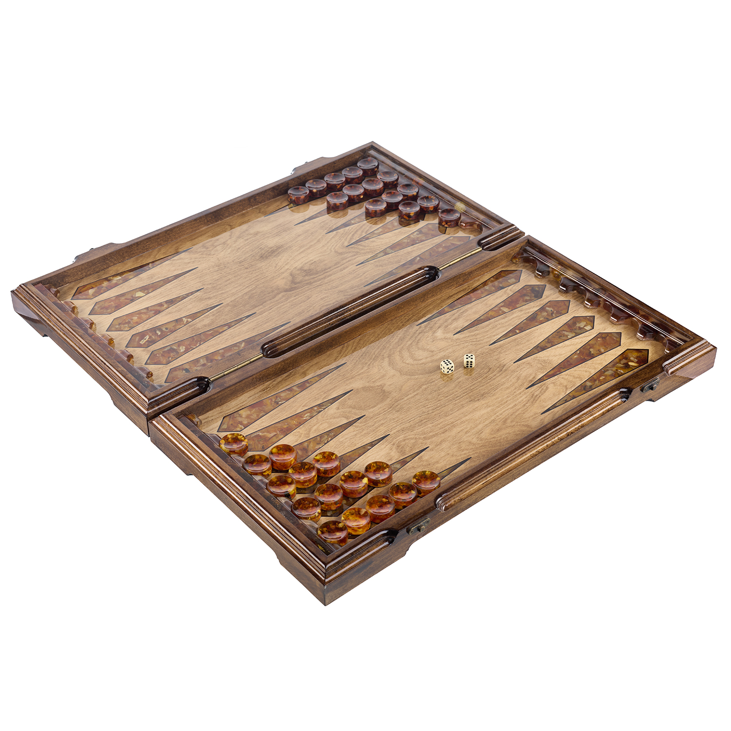 Нарды янтарные "Герб РФ".Материалы: дерево, янтарь.